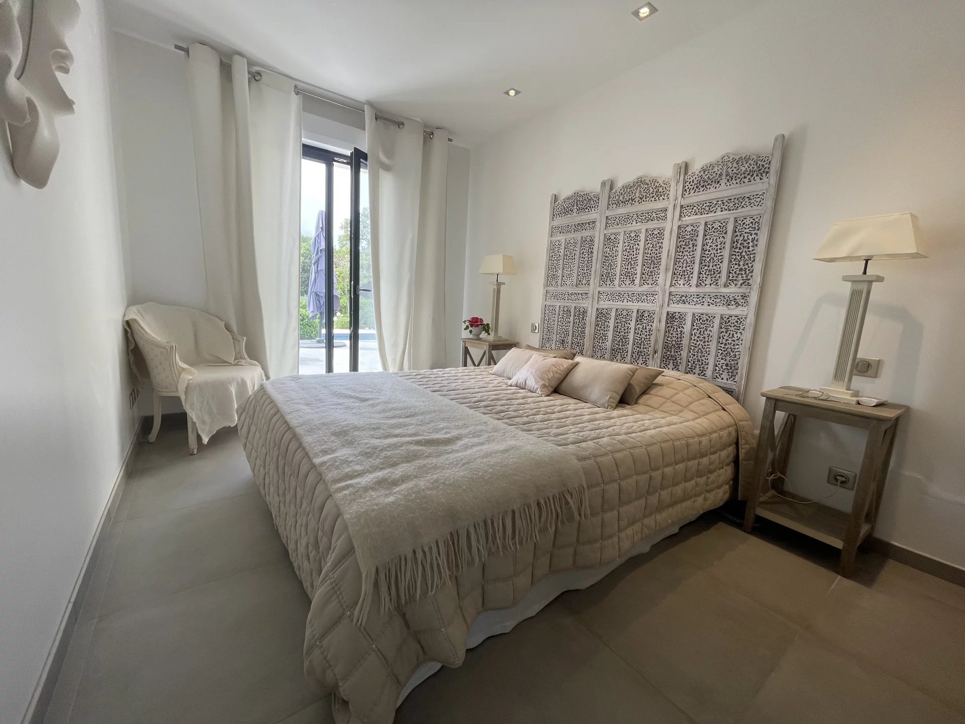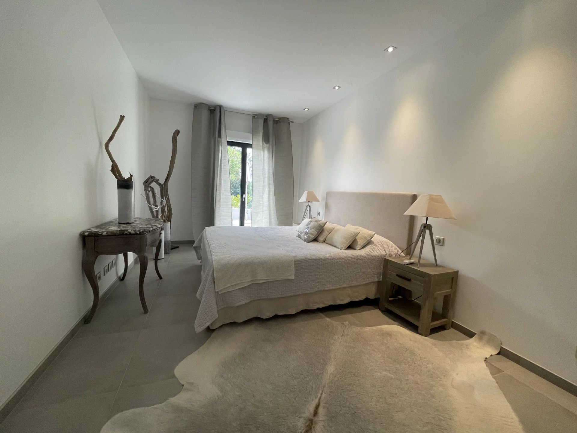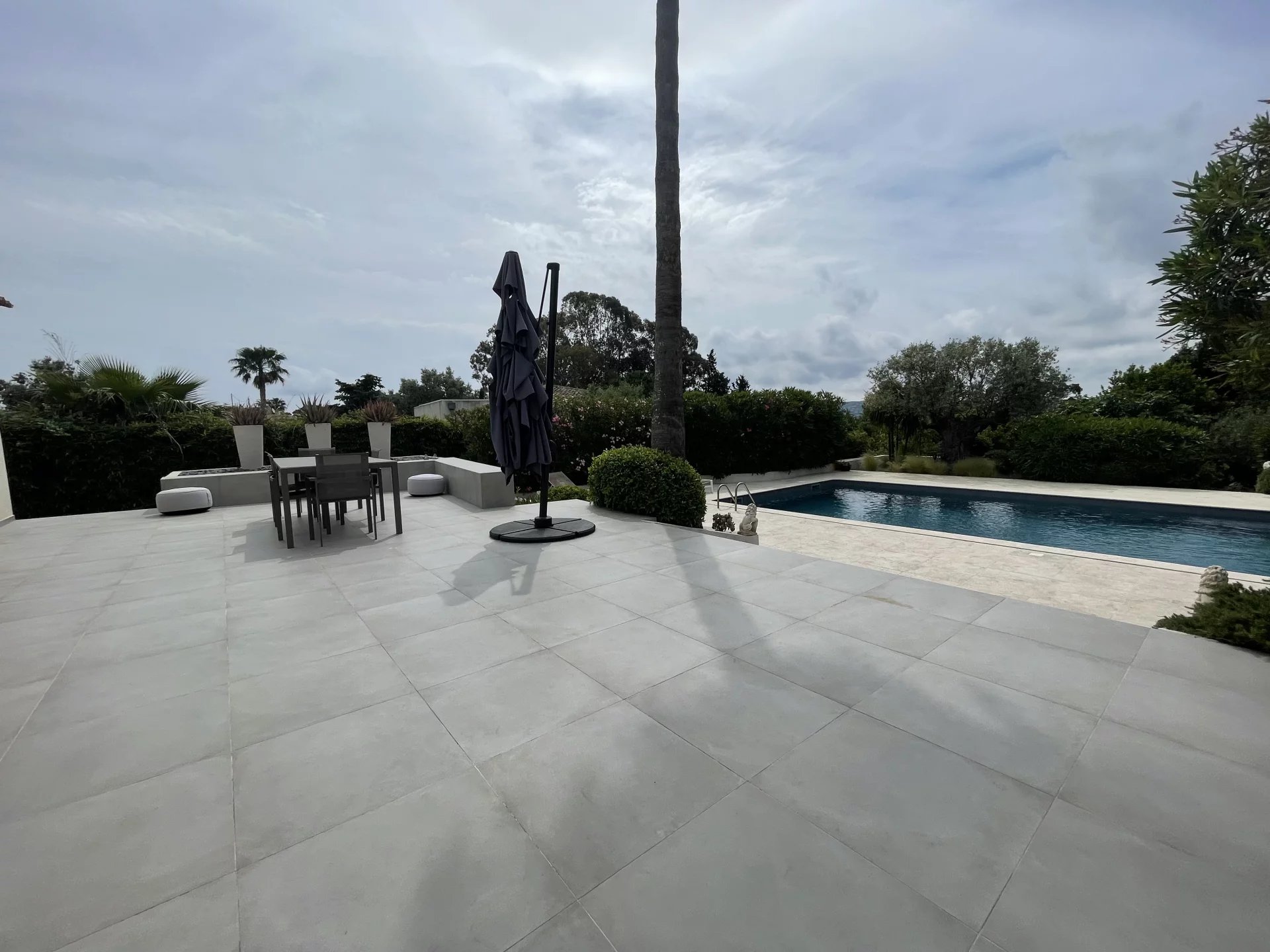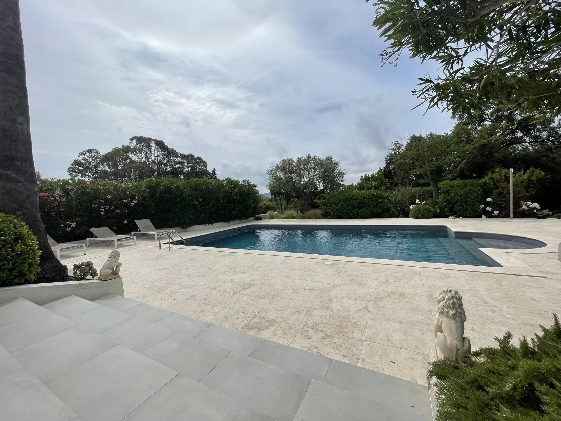 Superbe villa moderne avec grande piscine extérieure Idéal vacances : Villa de 5 pièces avec piscine (11X5) d'une surface de 130m2 sur un terrain de 1 500m2 située dans un domaine privé calme proche des commerces et plage. Elle se compose, d'une entrée, un séjour ouvrant sur une terrasse de 90m2 avec vue sur la piscine et 4 chambres dont une grande suite parentale avec douche italienne donnant sur la piscine, une salle d'eau, 2 WC séparés. La piscine vient d'être rénovée, et désormais elle est revêtue d'un superbe liner gris. Possibilité de stationner 4 véhicules. Linge non compris Wifi Séjour du samedi au samedi