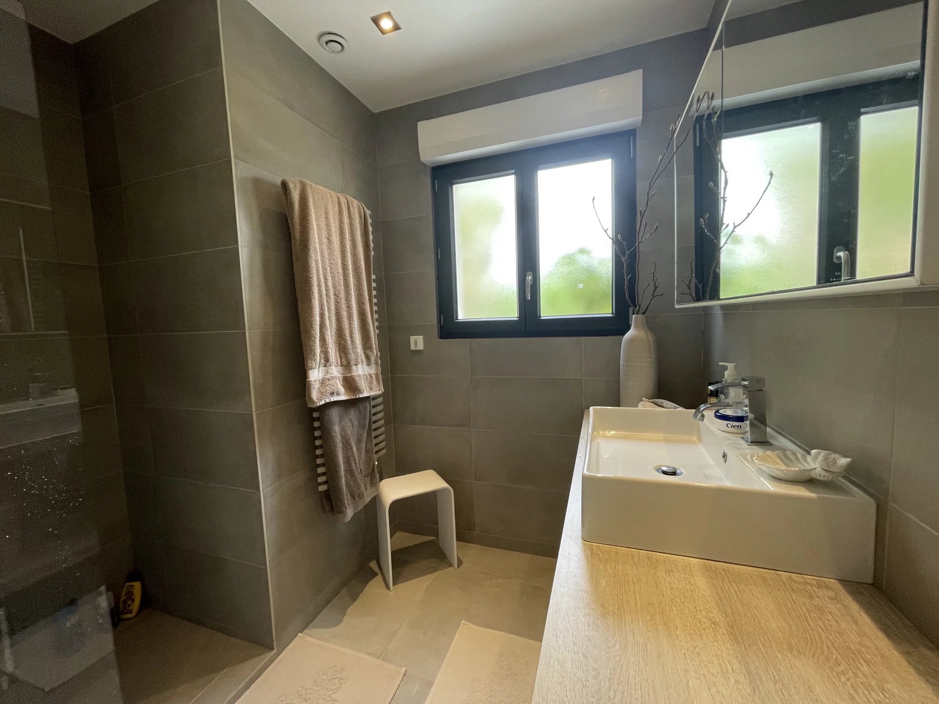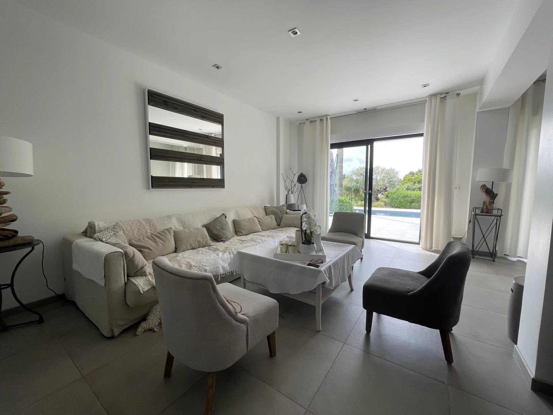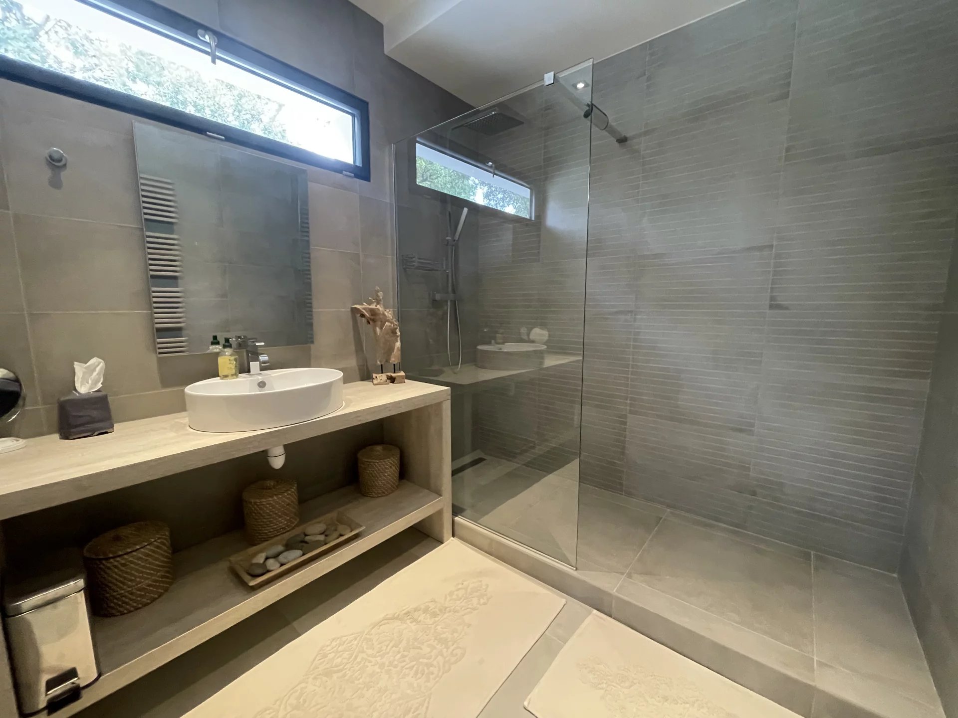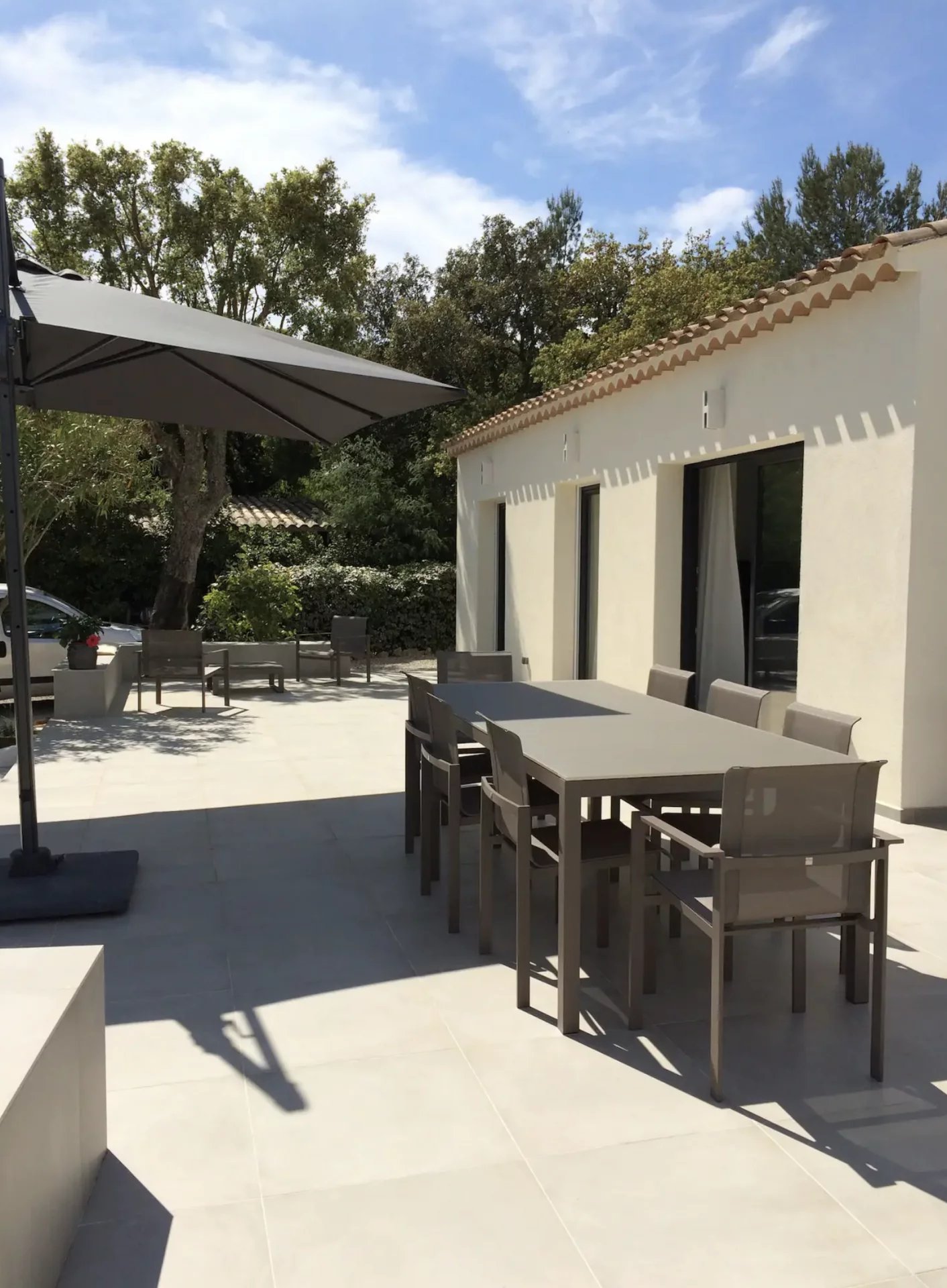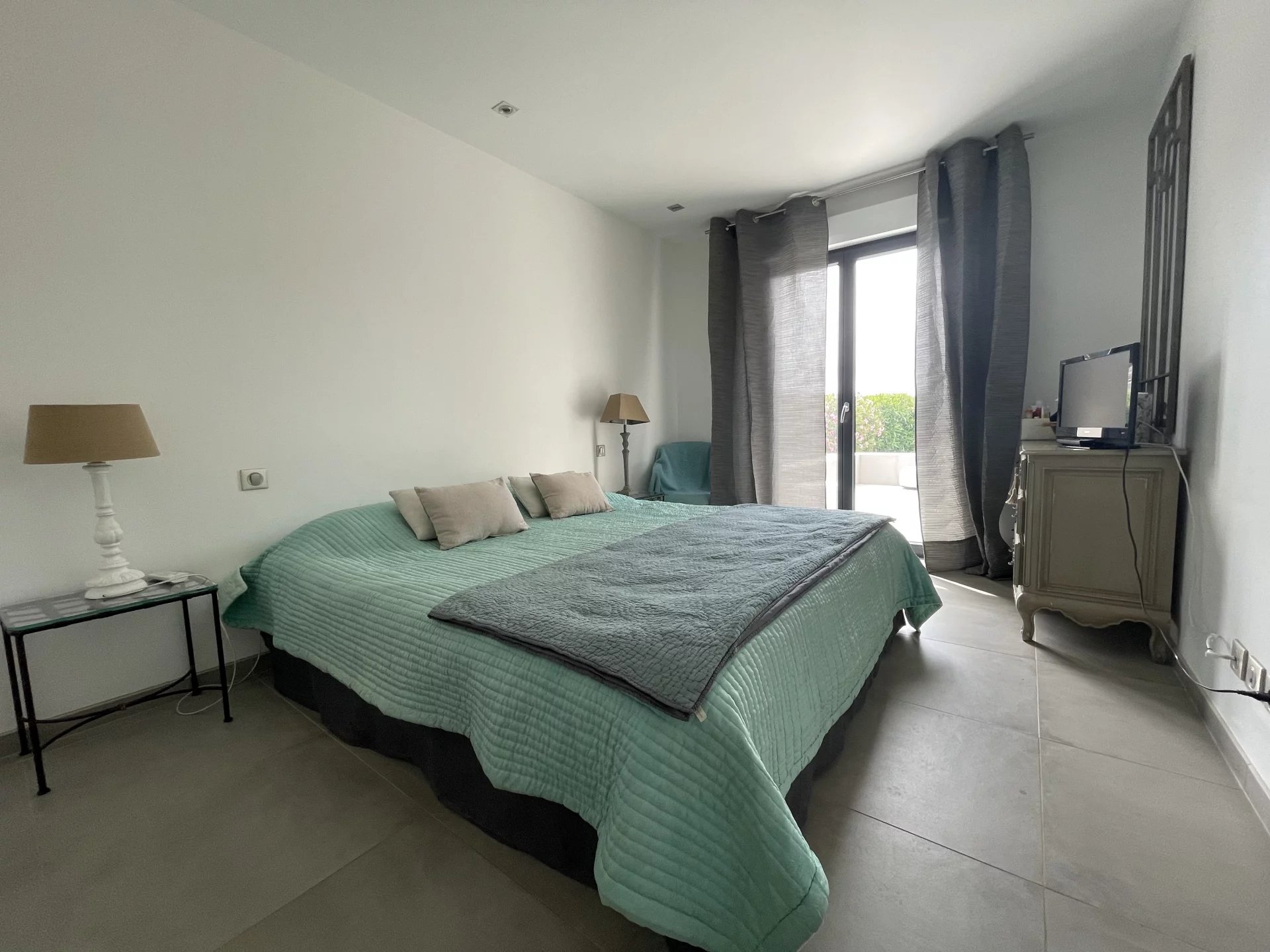 Superbe villa moderne avec grande piscine extérieure Idéal vacances : Villa de 5 pièces avec piscine (11X5) d'une surface de 130m2 sur un terrain de 1 500m2 située dans un domaine privé calme proche des commerces et plage. Elle se compose, d'une entrée, un séjour ouvrant sur une terrasse de 90m2 avec vue sur la piscine et 4 chambres dont une grande suite parentale avec douche italienne donnant sur la piscine, une salle d'eau, 2 WC séparés. La piscine vient d'être rénovée, et désormais elle est revêtue d'un superbe liner gris. Possibilité de stationner 4 véhicules. Linge non compris Wifi Séjour du samedi au samedi