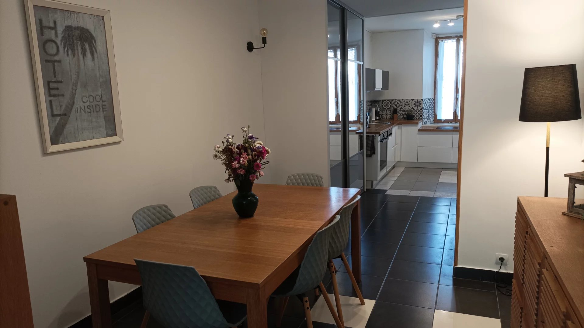 Niché au cœur de ville, proche commerces et services, cet appartement T3 de 68m2 en rez de jardin vous propose : 1 havre de paix de 84m2, 1 solarium, 1 vaste séjour, 1 cuisine équipée, aménagée, 2 chambres avec dressing, 1 salle d'eau avec toilette, Possibilité de stationnement au alentours.