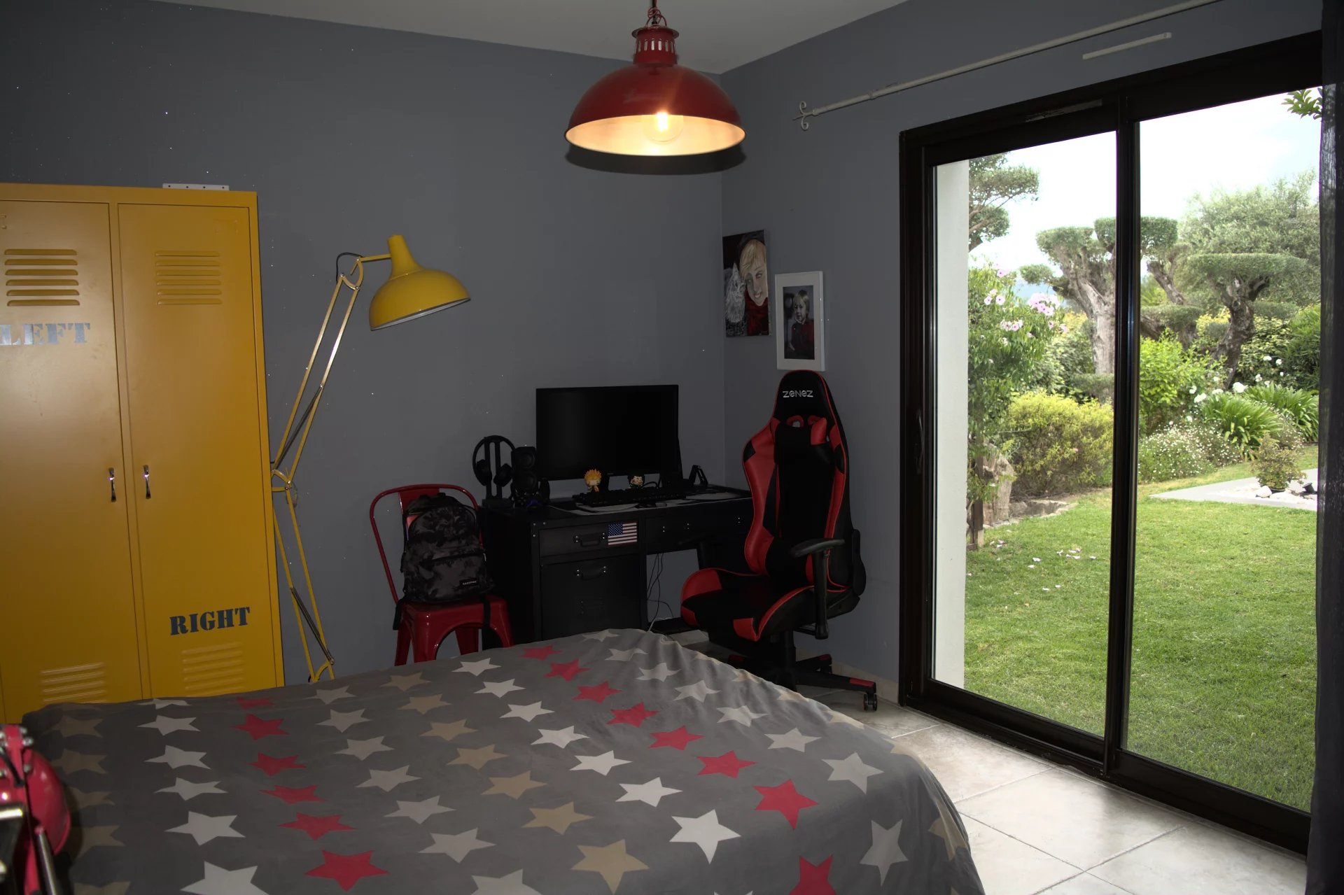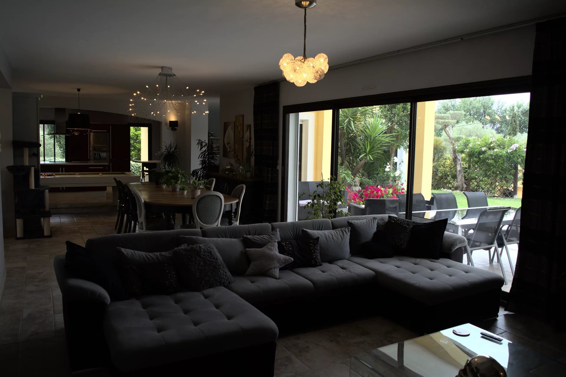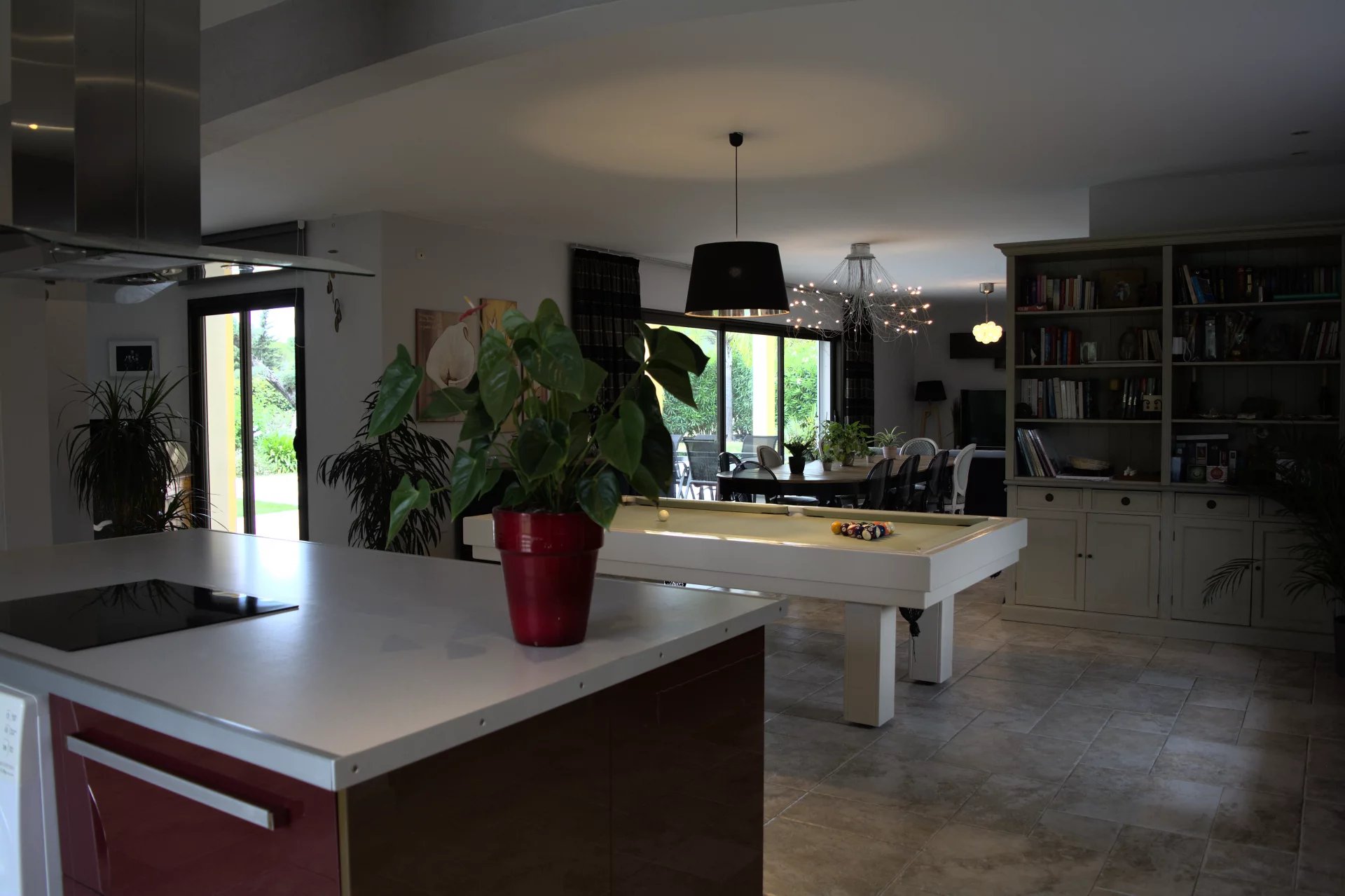 l'Agence Jacari vous propose cette très belle propriété à l'architecture néo-provençale composée de 4 chambres dont une suite parentale, une chambre d'amis, de 2 chambres enfants dont l'une bénéficie d'une jolie vue sur la piscine et l'autre sur jardin. Cette villa de plain-pied vous offre de très beaux volumes avec son espace de vie exceptionnel avec une ouverture depuis la cuisine sur le salon, élément central de la maison, autour duquel il sera bon de se retrouver l’hiver près de la cheminée. Une vaste buanderie est attenante à la cuisine.