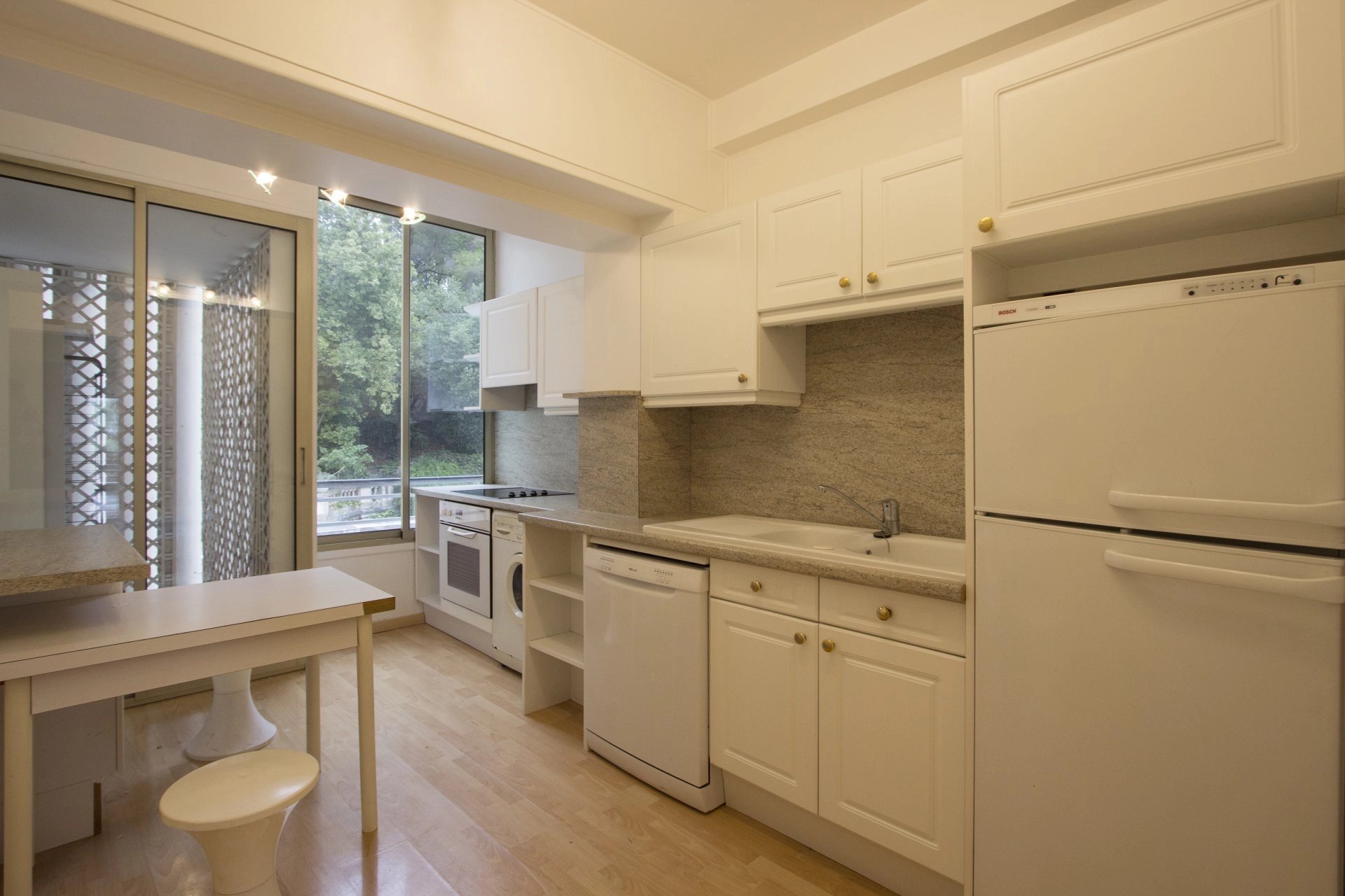 Isola Bella - Dans une résidence de standing avec parc et gardien, proche du centre et au calme total. Grand deux pièces traversant de 78 m² avec une vaste terrasse exposé sud offrant une vue dégagée mer. Composé d'une entrée, un séjour ouvrant sur la terrasse, cuisine séparée, grande chambre ainsi qu'une salle de bains et un toilette indépendant. Un box en sou-sol et une cave complètent ce bien.