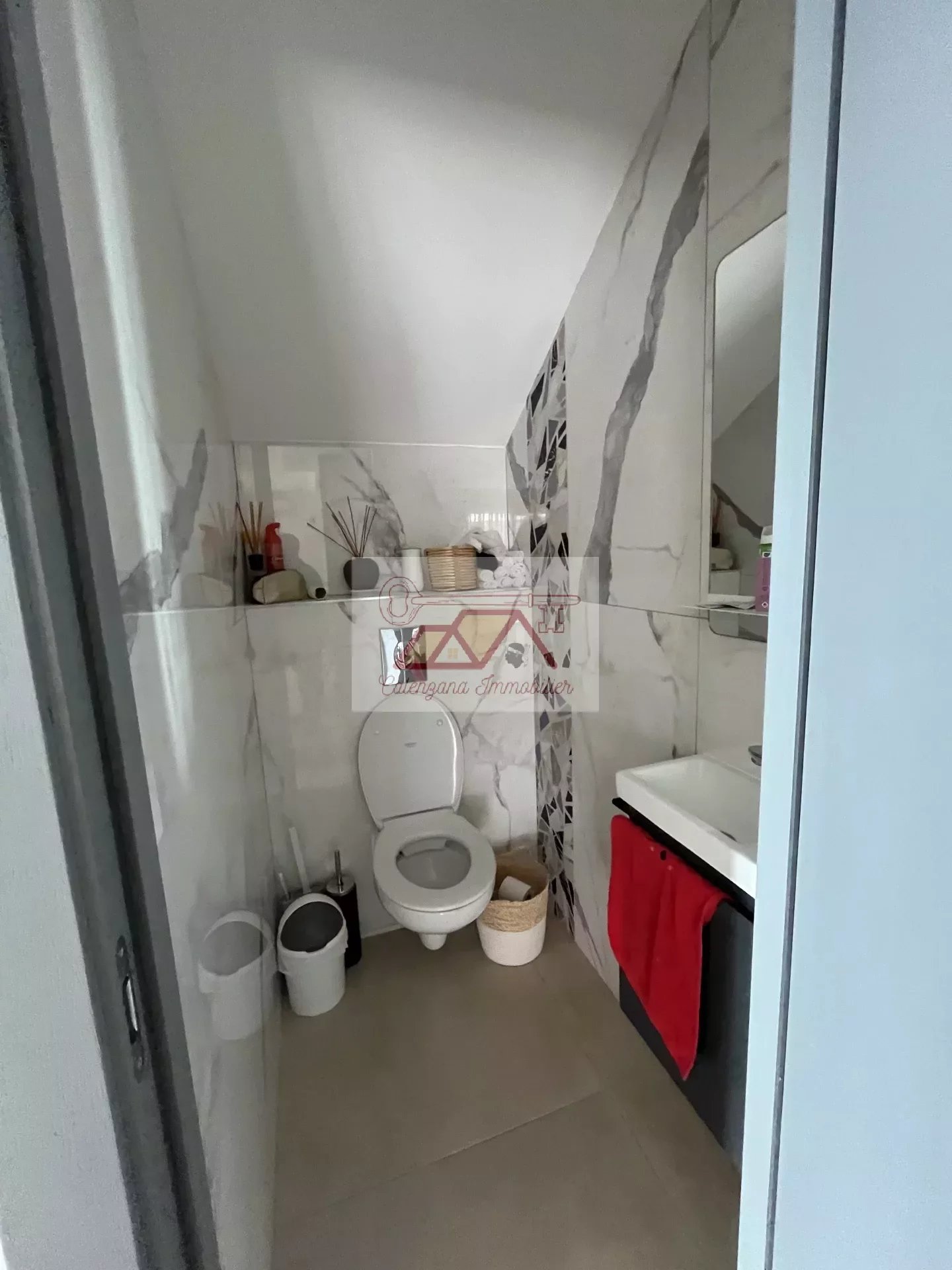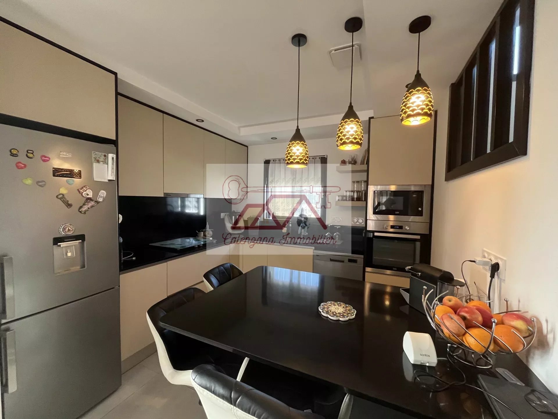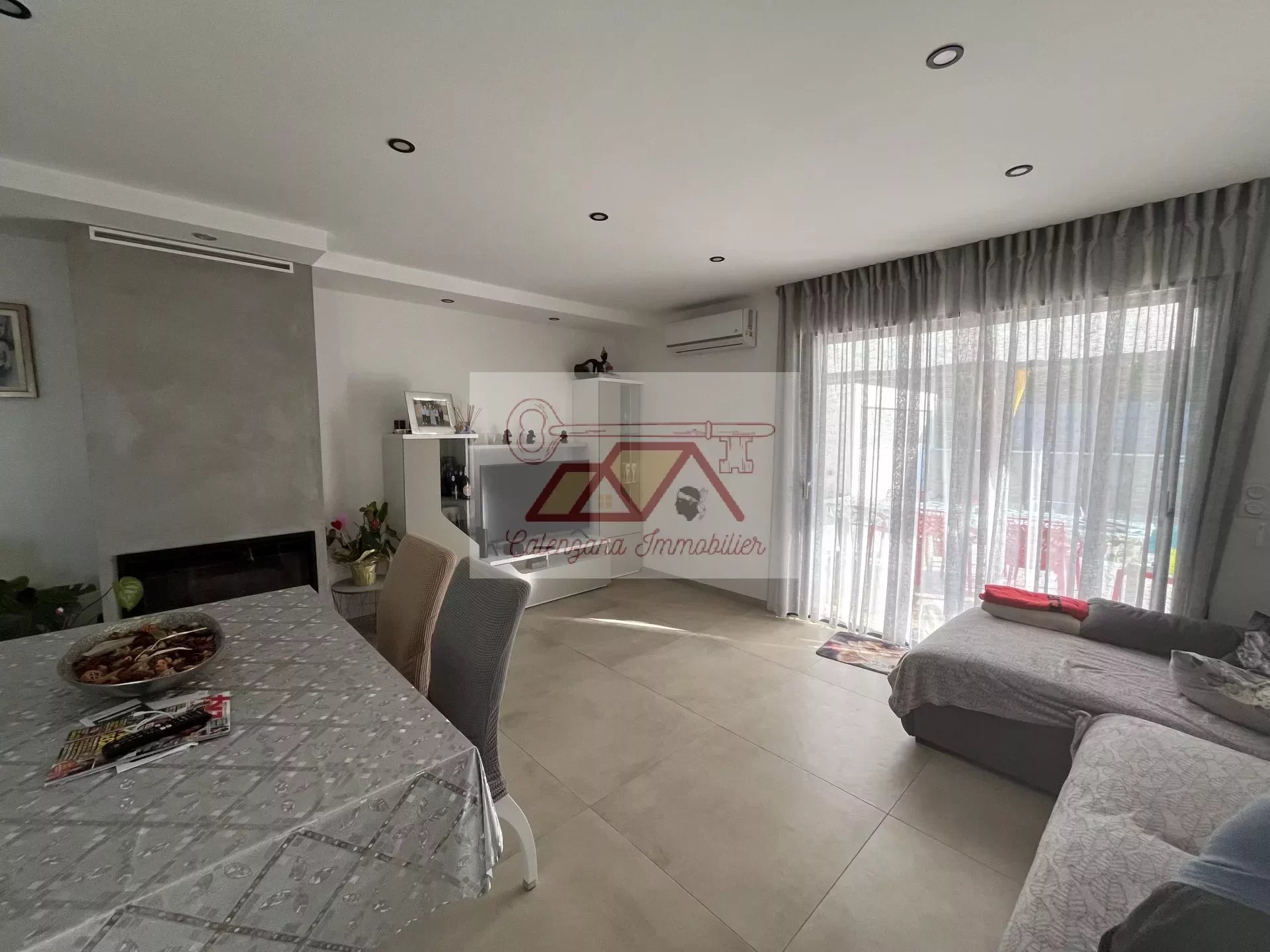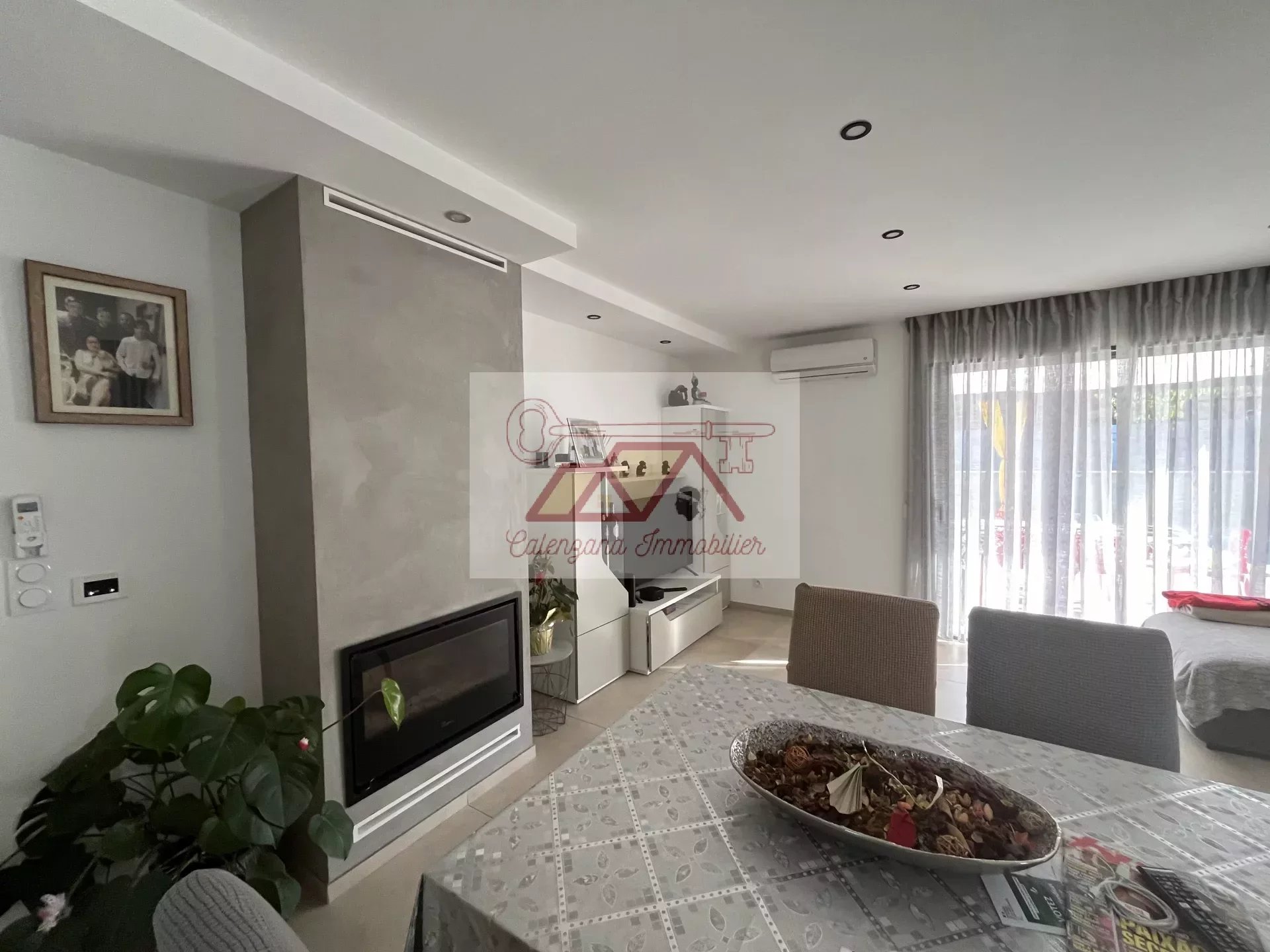 Cette villa récente à Calenzana offre un cadre de vie paisible, à proximité de la mer, des montagnes et de l'aéroport de Calvi. Le rez-de-chaussée comprend un grand salon lumineux avec baies vitrées, une cuisine américaine moderne, un WC séparé et un accès direct à la terrasse et à la piscine. Un T2 indépendant, aménagé à partir de l'ancien garage, propose un espace de vie autonome avec salle de bain et WC. À l'étage, deux chambres spacieuses donnent sur une grande terrasse de 36 m² avec vue sur la montagne et la mer.