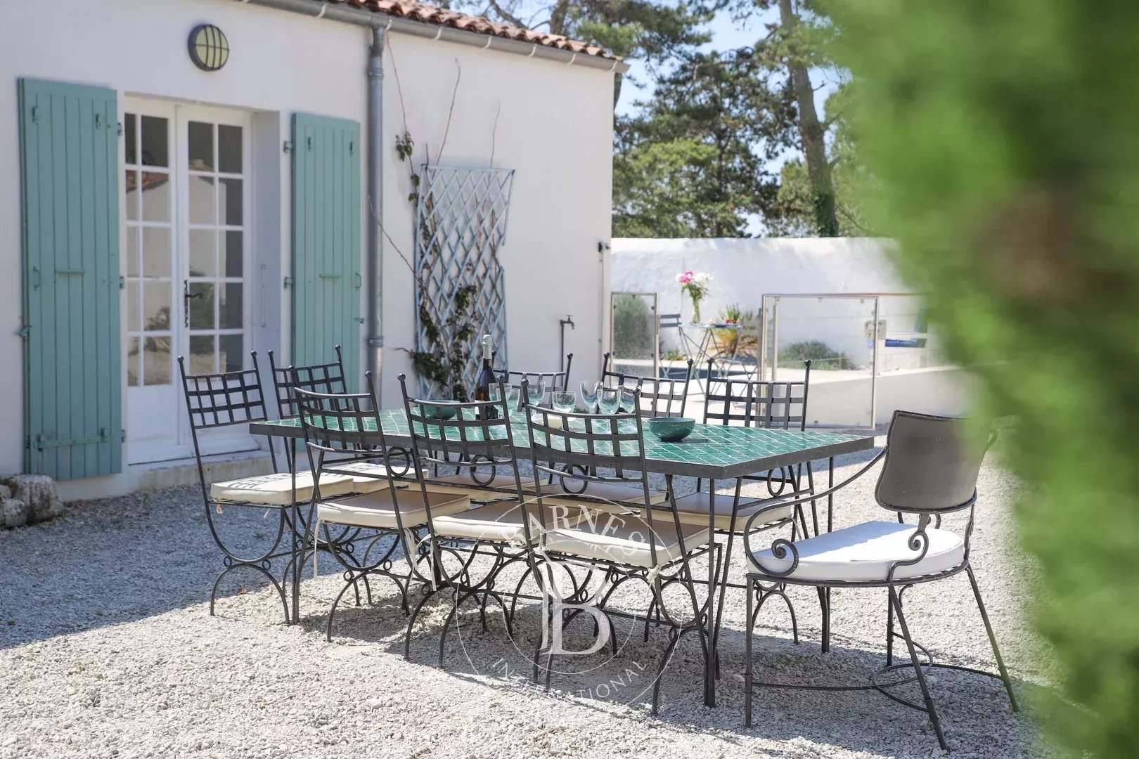 Et côté mer, une terrasse et un préau vous permettront de profiter pleinement des douces soirées rétaises. Un garage avec prise électrique est également mis à votre disposition pour plus de commodité.