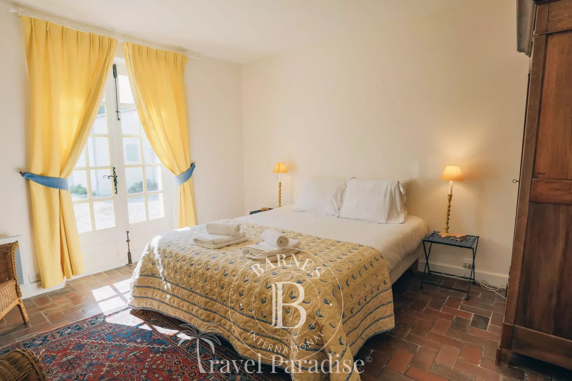 Cette grande demeure bénéficie d'une situation privilégiée, à seulement quelques minutes à vélo du marché médiéval de la Flotte, accessible par un chemin douanier au bout de la propriété.