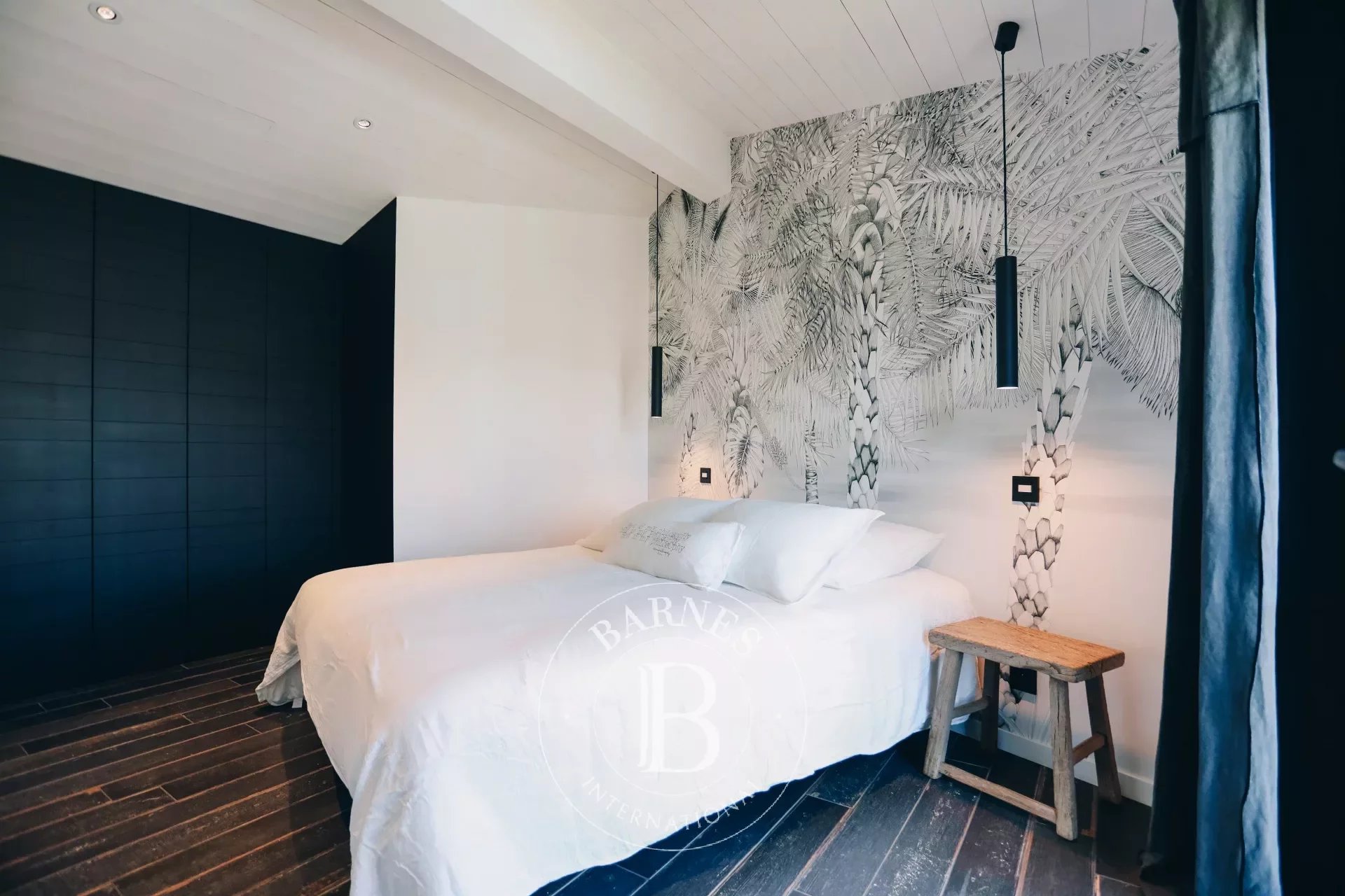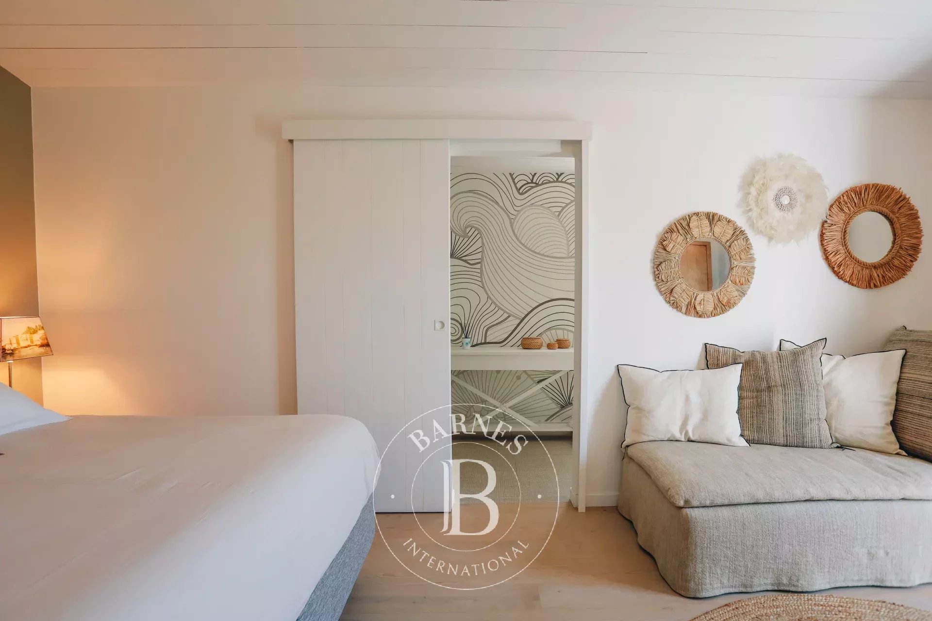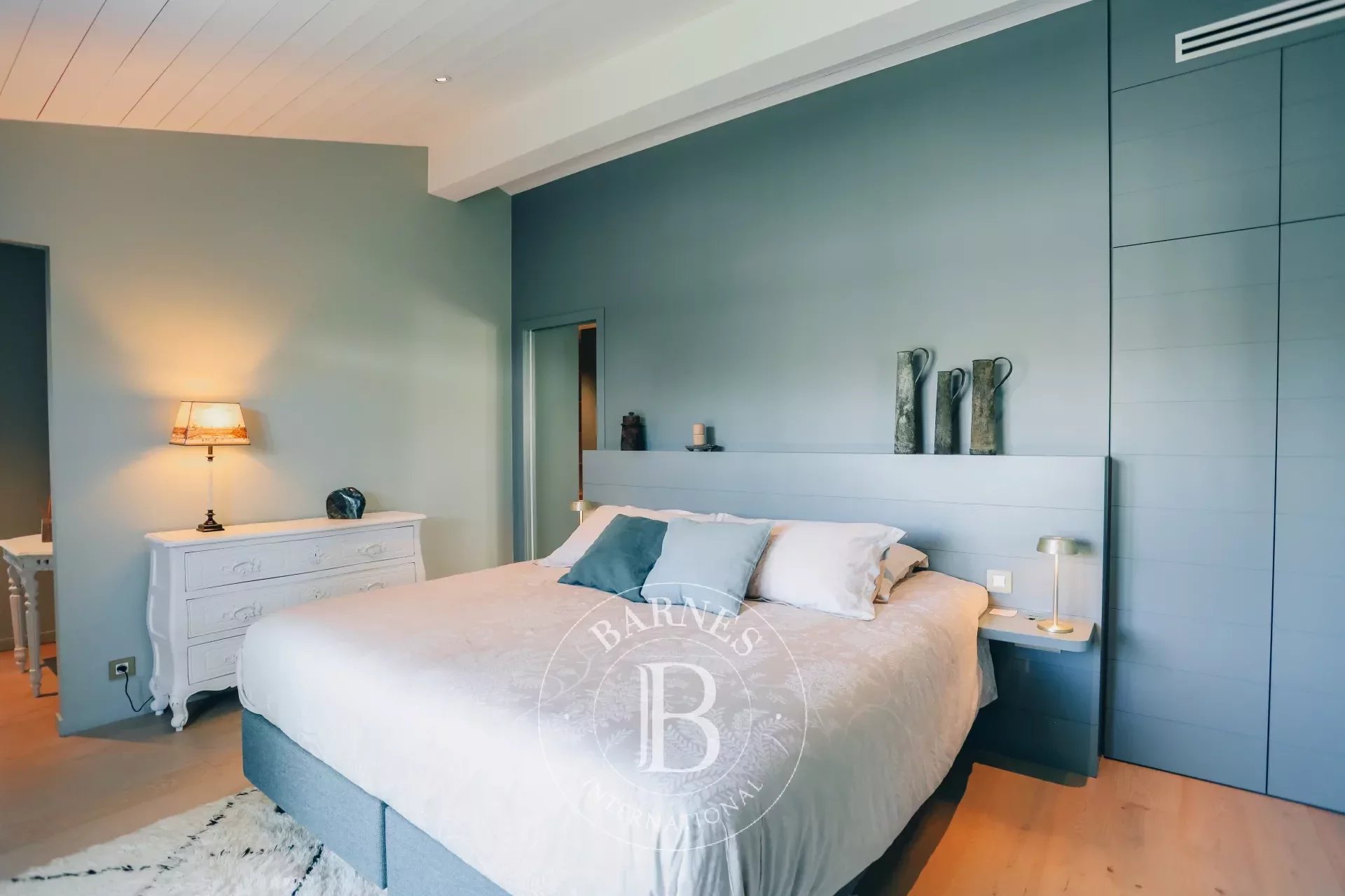 La propriété, entièrement de plain pied et d'environ 220m², possède de nombreuses touches artistiques avec ses tableaux, son jardin paysager, ses enceintes ultra haute performance ou encore sa literie de qualité Palace.