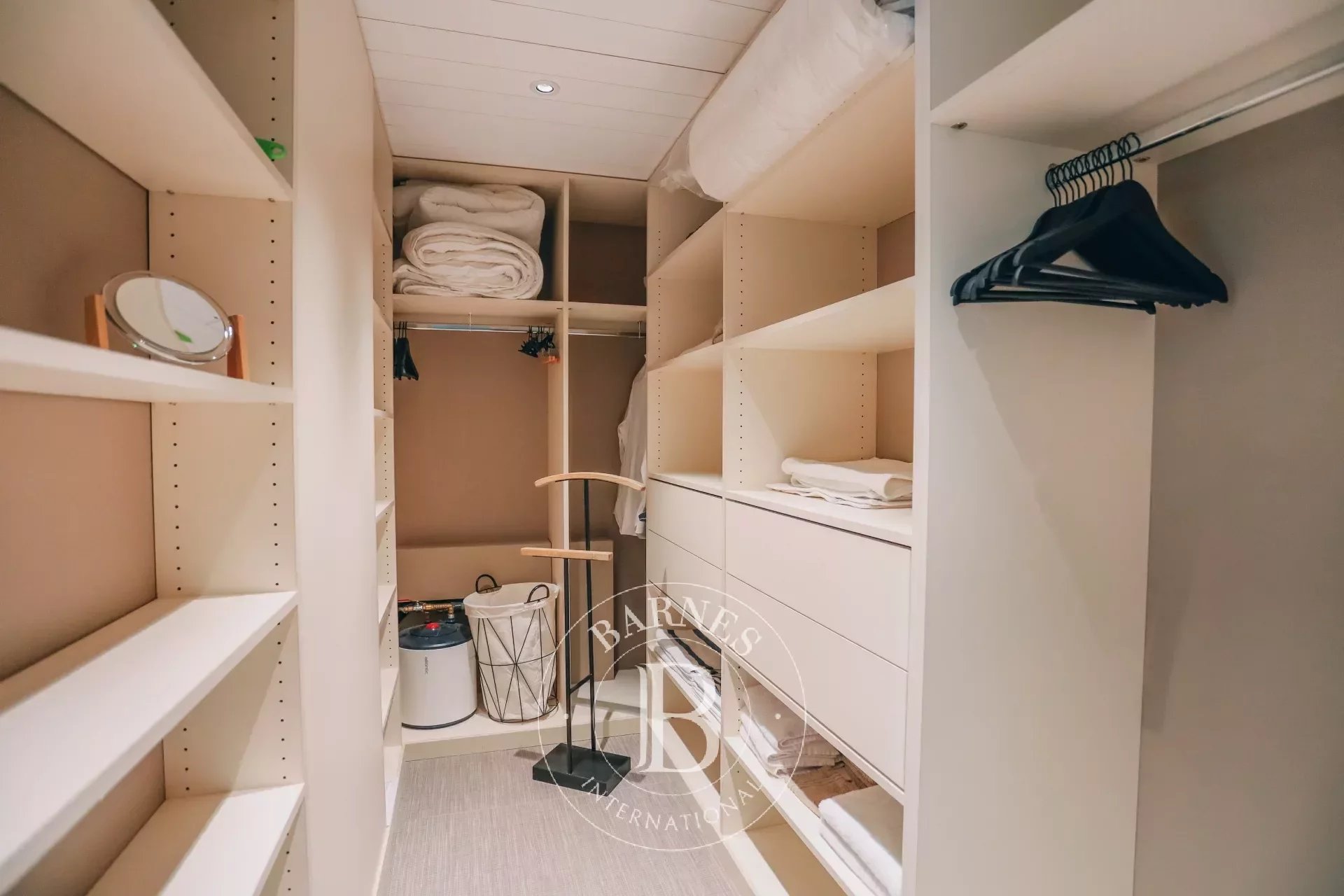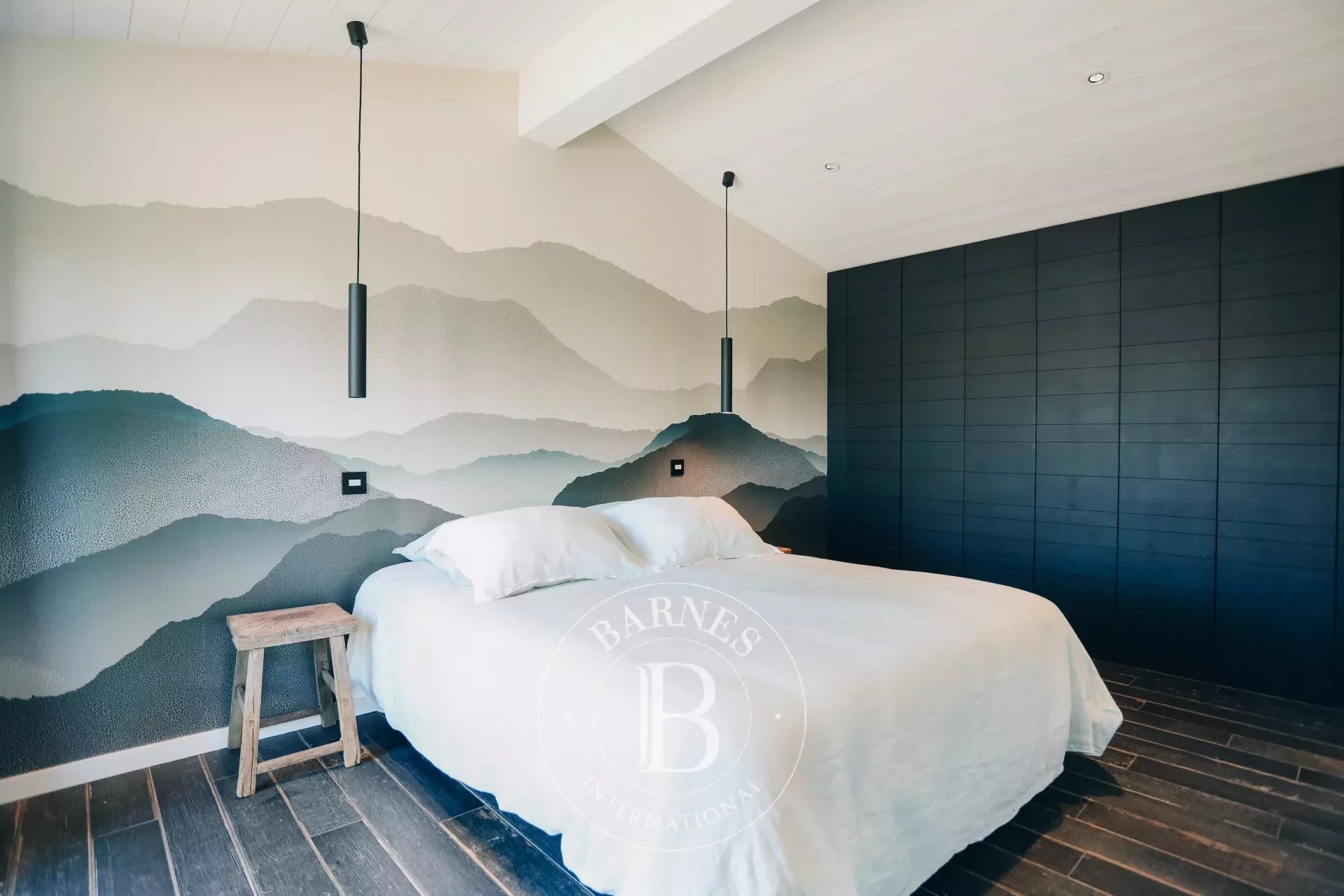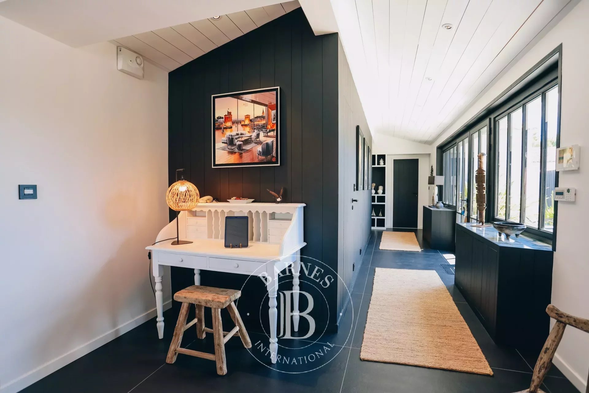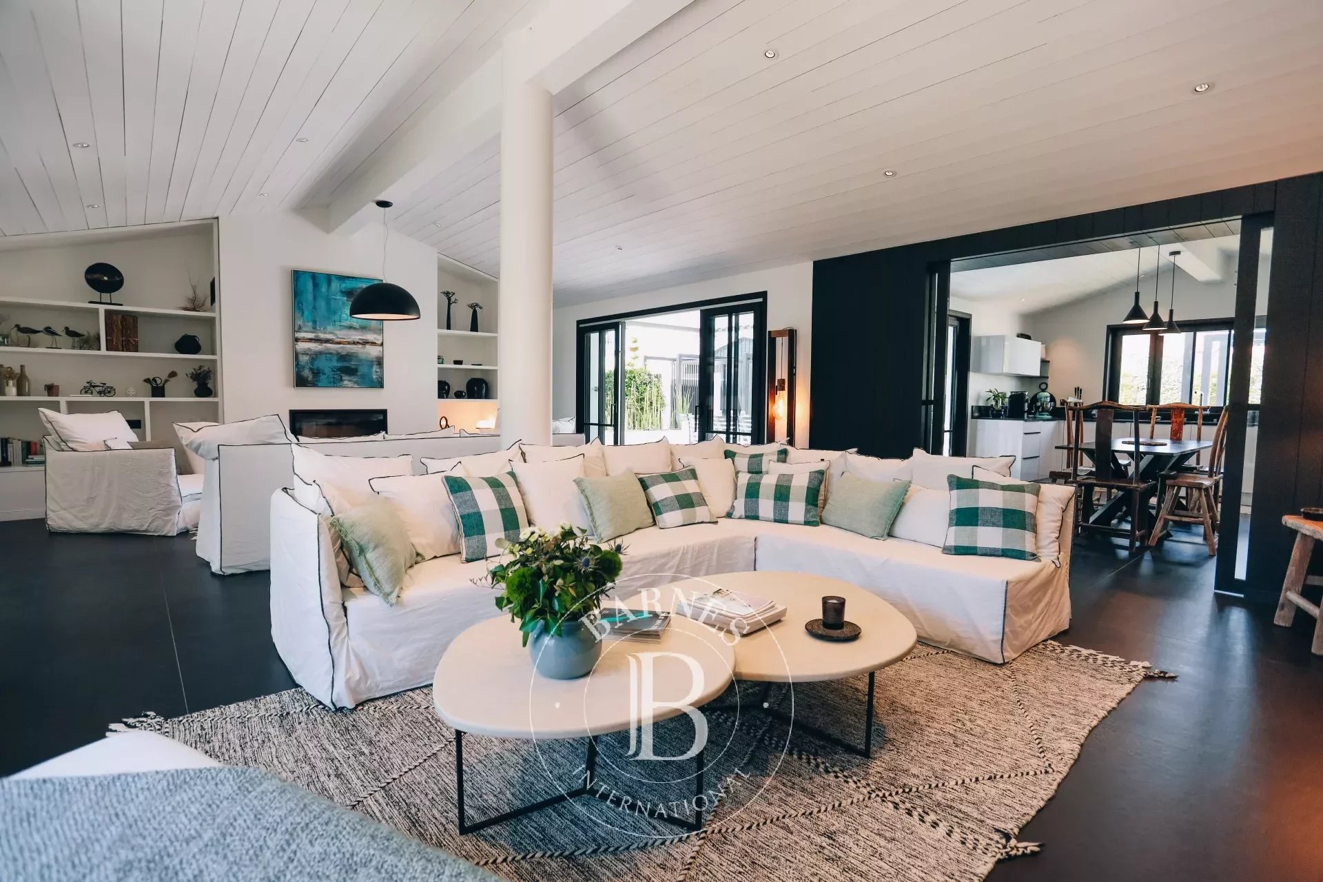 La propriété, entièrement de plain pied et d'environ 220m², possède de nombreuses touches artistiques avec ses tableaux, son jardin paysager, ses enceintes ultra haute performance ou encore sa literie de qualité Palace.