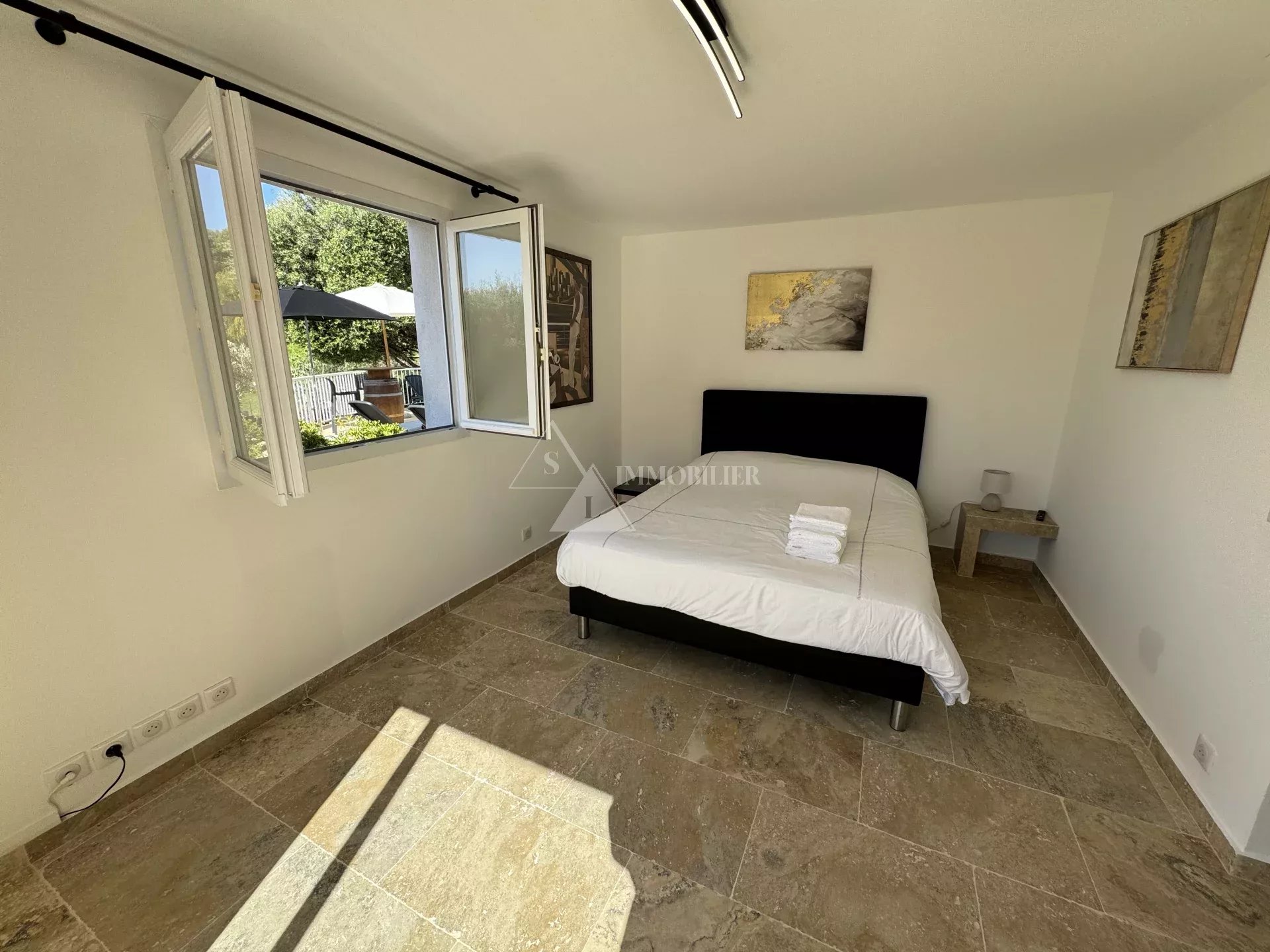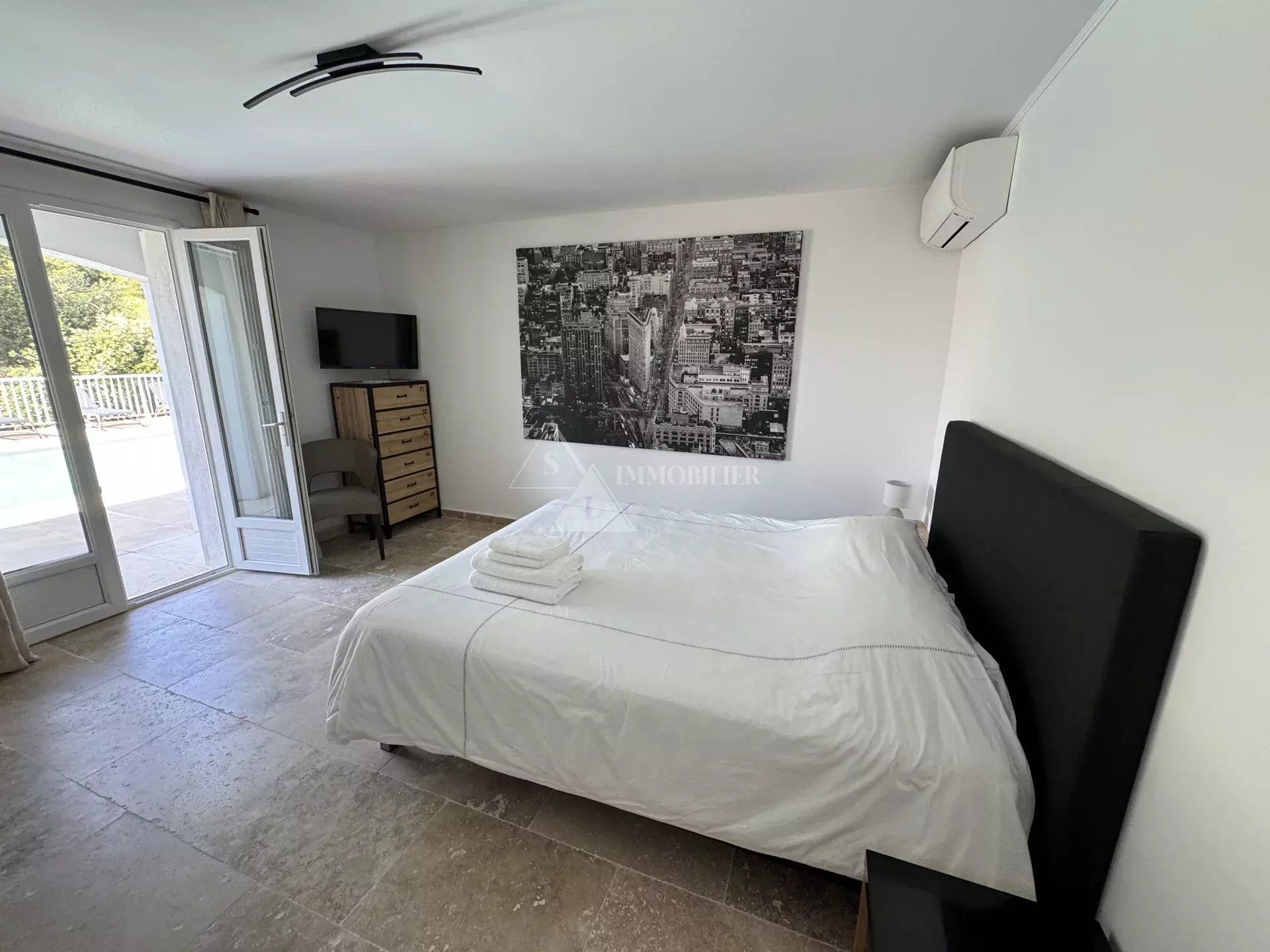 Le rez-de-jardin offre quant à lui trois autres chambres généreuses, dont une donnant accès directement à la piscine, une salle de douche, des toilettes séparées et une buanderie.