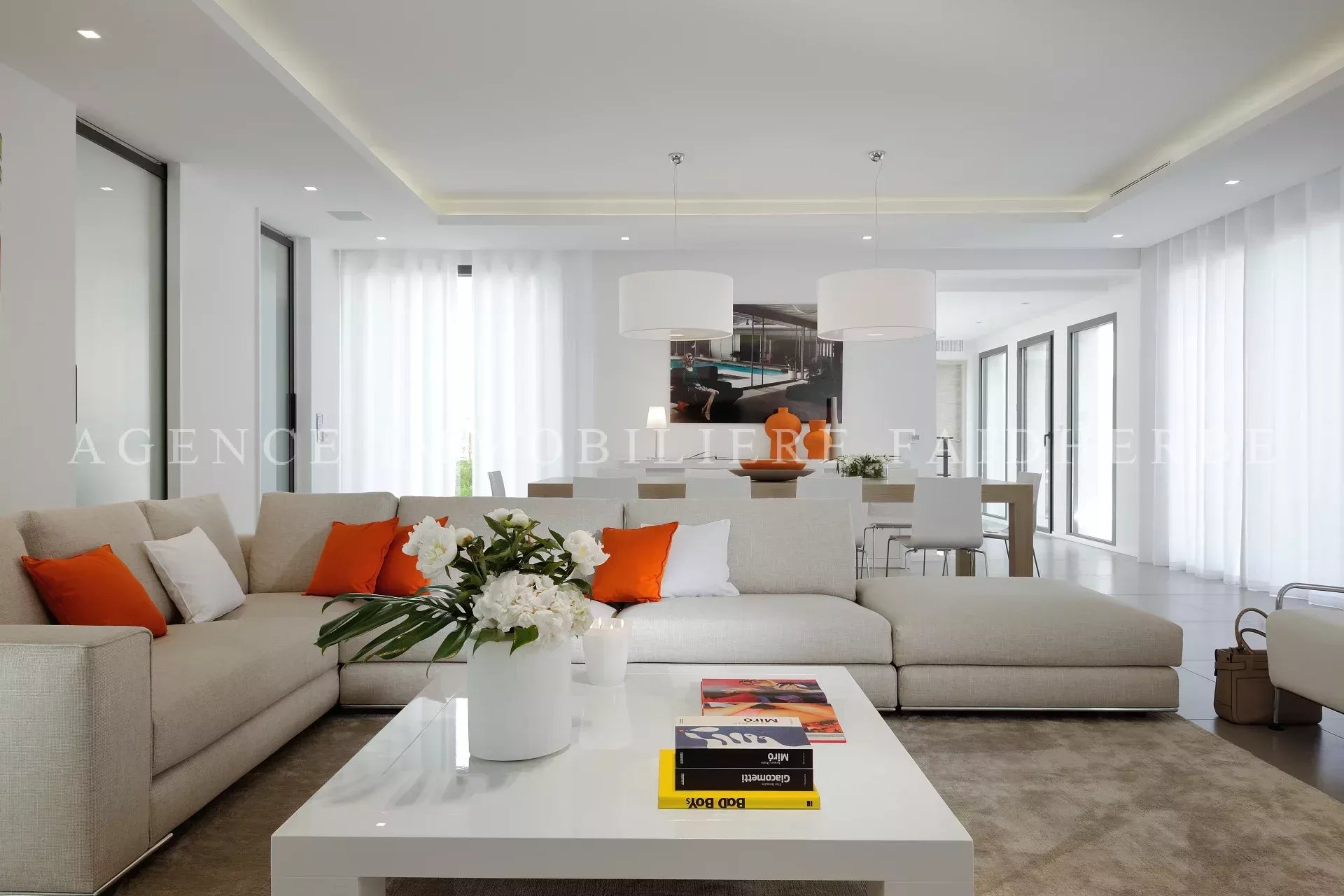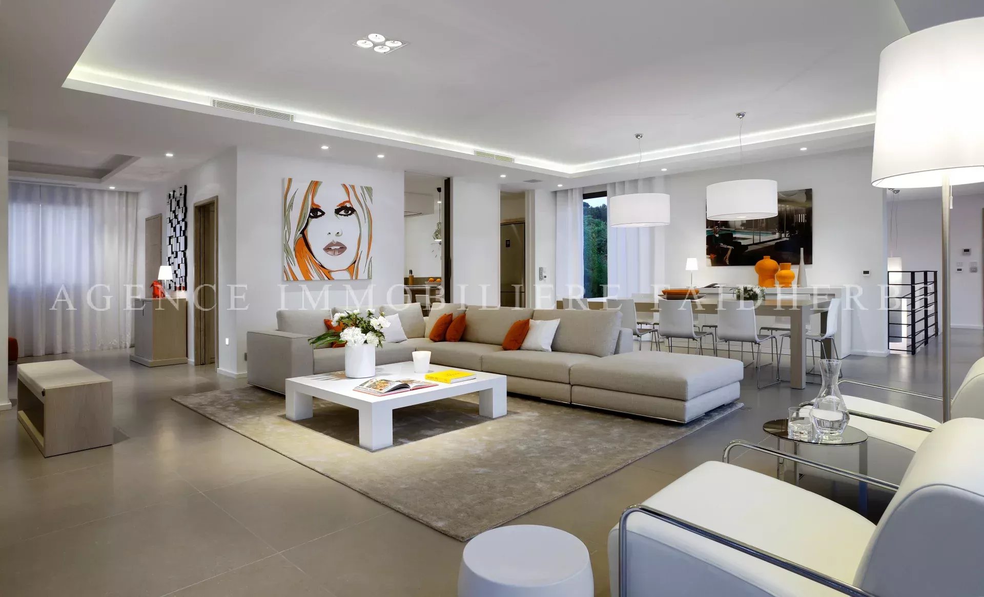 Ingresso, ampio soggiorno Cucina completamente attrezzata, Sala da pranzo (capacità 10 persone) 5 camere con letti da 180 cm + TV satellitare 5 bagni 5 WC Lavanderia, lavatrice, asciugatrice Esterno: Terreno di 1658m2 Ampia sala da pranzo (capacità 10 persone) Terrazza coperta / Terrazza scoperta Barbecue a gas Piscina riscaldata 12 x 5 Doccia esterna Seminterrato per 3 auto Parcheggio esterno per 5 auto Condizionatore Spese: pulizia (30 €/h), biancheria inclusa, tassa di soggiorno (6,91 €/giorno/adulto)