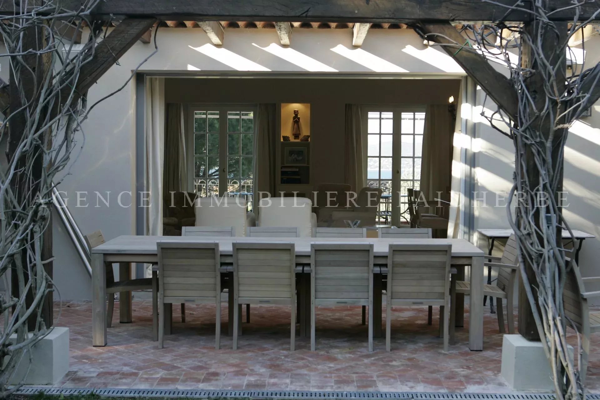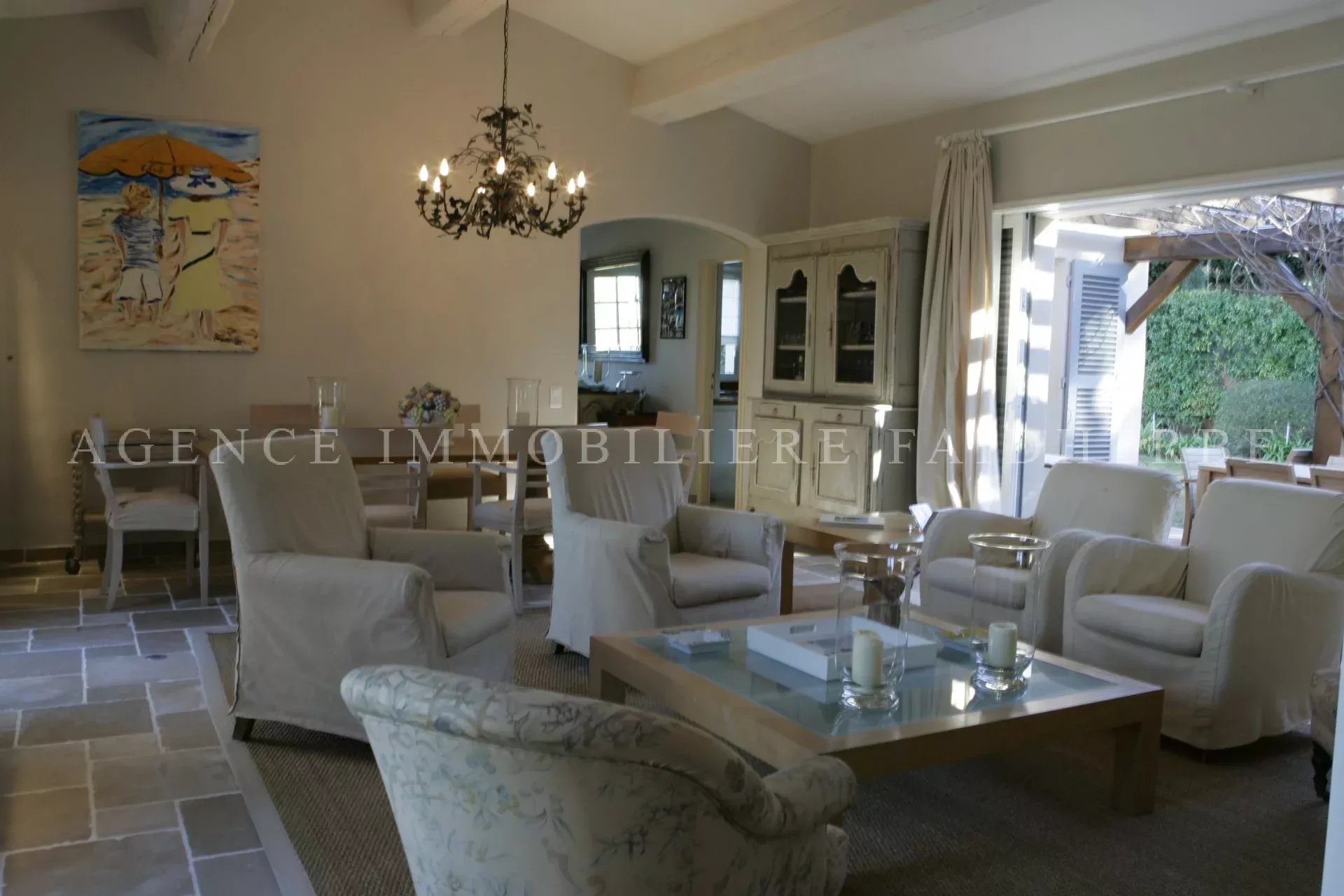 RIF 61 A 15 minuti a piedi da Place des Lices e dalla strada Tahiti per raggiungere le spiagge di Pampelonne Villa vista mare con piscina. Disposta su 2 livelli, è composta da: DRC 2 camere con 2 letti, bagno con doccia / WC 1 camera da letto con 180 letti, bagno / WC 1 camera da letto cabina con letti per bambini x 4 / bagno con doccia / WC Lavanderia Soggiorno con cucina estiva aperta sulla piscina Di sopra, 1 camera da letto con 180 letti, bagno / WC 1 camera da letto con 140 letti, bagno con doccia / WC Soggiorno / sala da pranzo con apertura sul giardino e terrazzo vista mare, TV Cucina completamente attrezzata: forno tradizionale, forno a vapore, microonde, piano cottura, lavastoviglie. TV in più stanze, allarme, WIFI, aria condizionata, TV SAT. Prezzo: 12.500 €/settimana Spese extra: pulizia (30 €/h), biancheria (150 €), tassa di soggiorno (6,91 €/giorno/adulto)