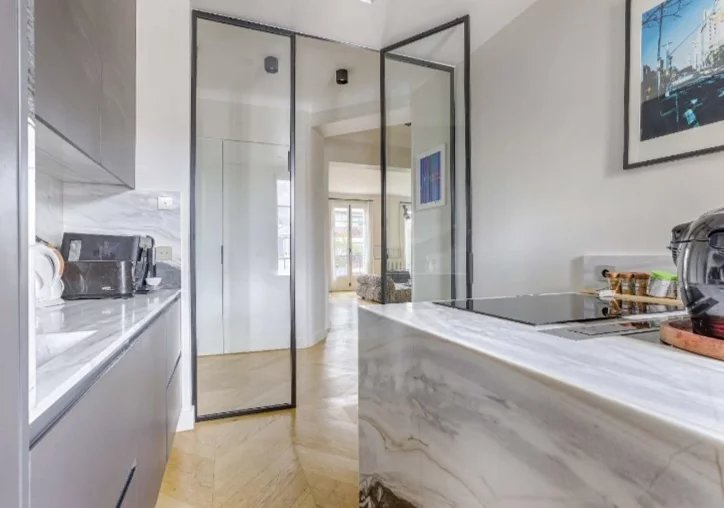 PARIS XVI – La Muette -Ce superbe 4 pièces de 117m2 est situé au 5ème étage avec ascenseur d'un magnifique immeuble Haussmannien de 1870 avec balcon filant de 14m2.