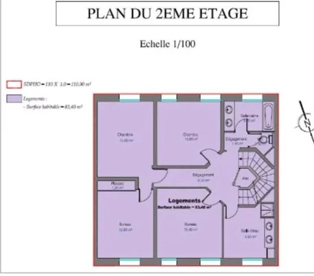 Au 2ème étage : 2 chambres, 2 bureaux, une salle d’eau, une salle de bains, WC séparés, placards.