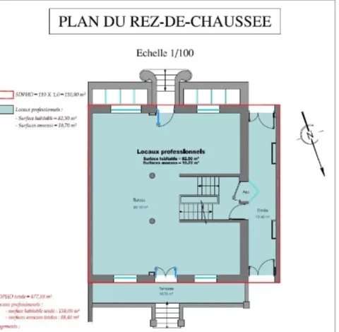 Au RDC : Entrée, bureau, terrasse exposés Sud.