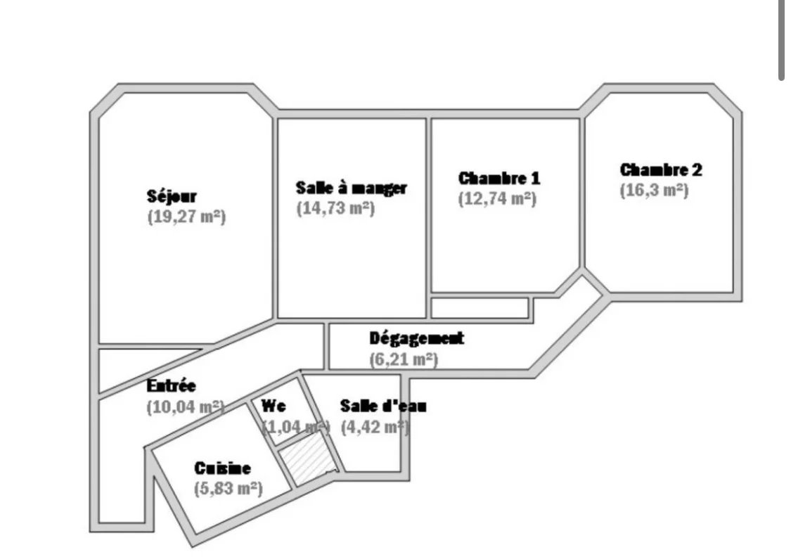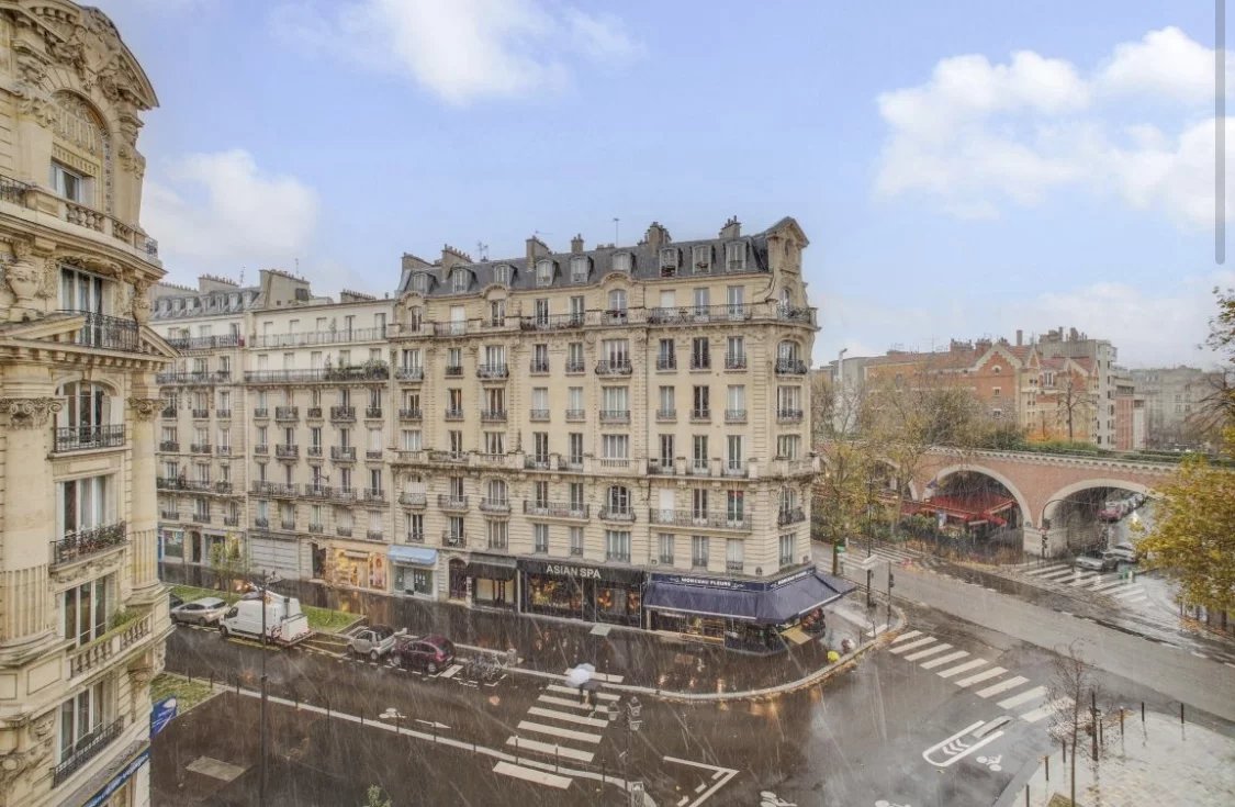 L'appartement se compose d'une entrée desservant un double séjour plein ouest vue ciel avec balcon, une cuisine séparée avec accès à l'escalier de service, deux belles chambres, une salle de bain et un WC séparé.