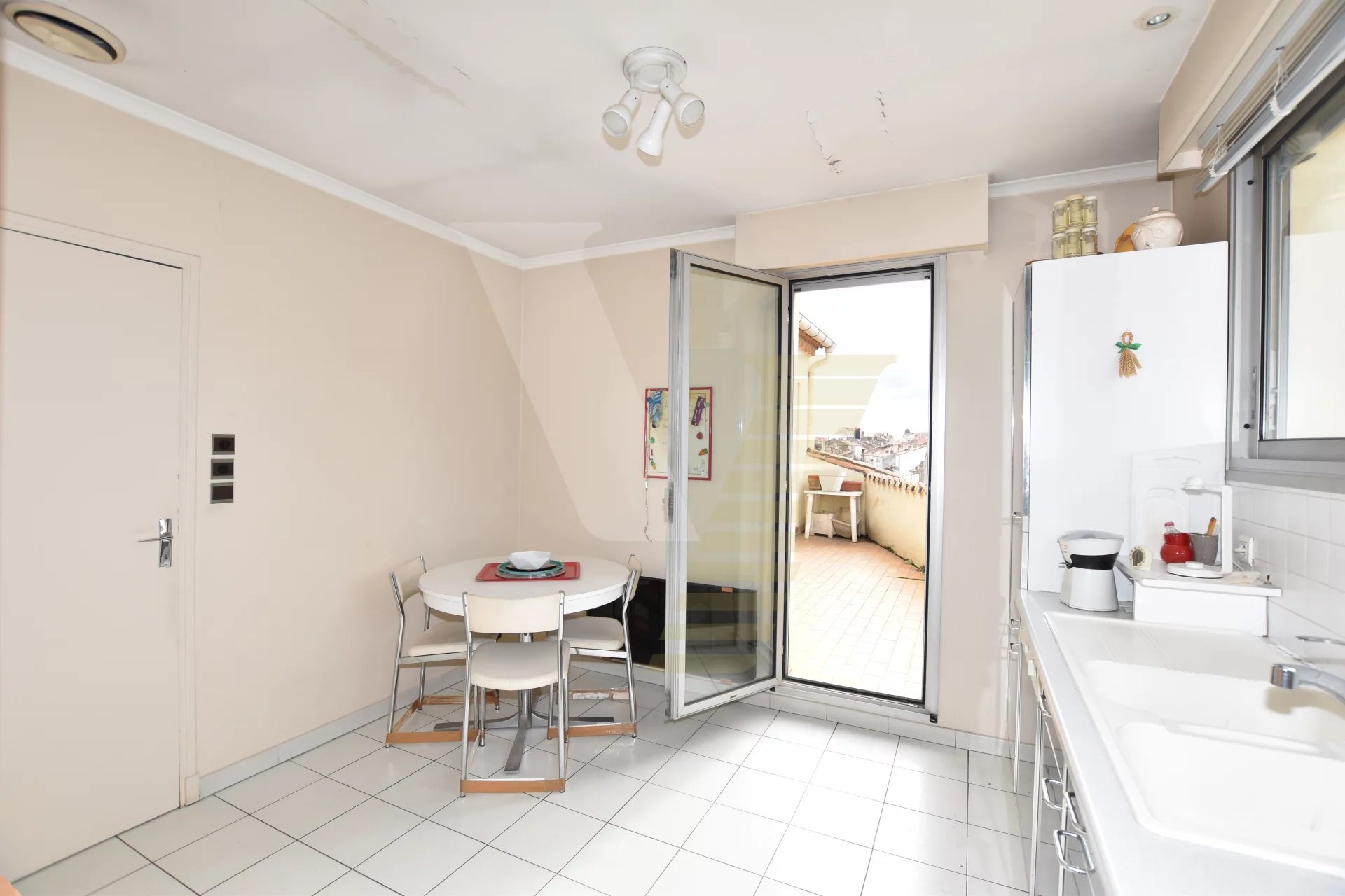 Situé proche de la place du marché du 11 novembre à Béziers, nous vous invitons à venir découvrir ce bel appartement T3 d'environ 100 m2 au 4ème et dernier étage d'une résidence avec ascenseur. L'appartement se compose d'un séjour de plus de 35 m2, d'une cuisine, d'une chambre avec sa salle de bain et d'une deuxième chambre. Au niveau extérieur, vous profiterez de deux terrasses et d'un grand balcon. Situé proche de la place du 11 novembre à Béziers. Au niveau du stationnement, il est possible de louer un garage au sein de la résidence.