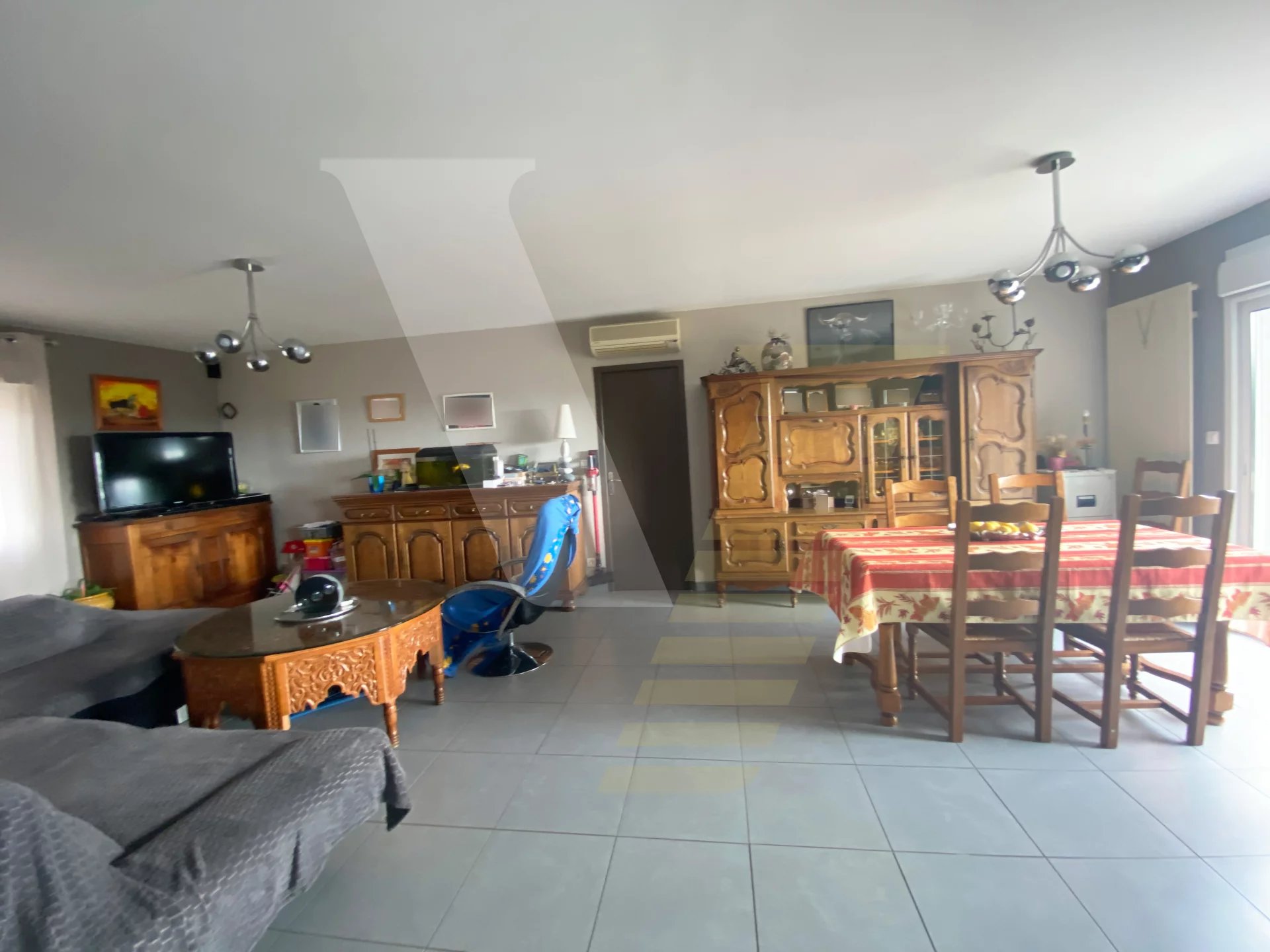 Sur la commune de Corneilhan une maison de plain-pied d'environ 80m2 sur une parcelle de 413m2. Cette maison dispose d'une belle et grande pièce de vie de plus de 50m2, deux chambres, une salle d'eau, un garage. Vous profiterez d'une grande terrasse d'environ 30m2et d'un jardin avec une vue dégagée. Les prestations de ce bien : - bon état général - double vitrage avec volets électriques + volets battants - puits - garage d'environ 25m2