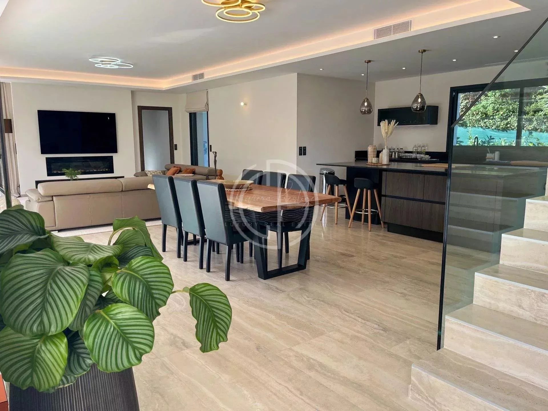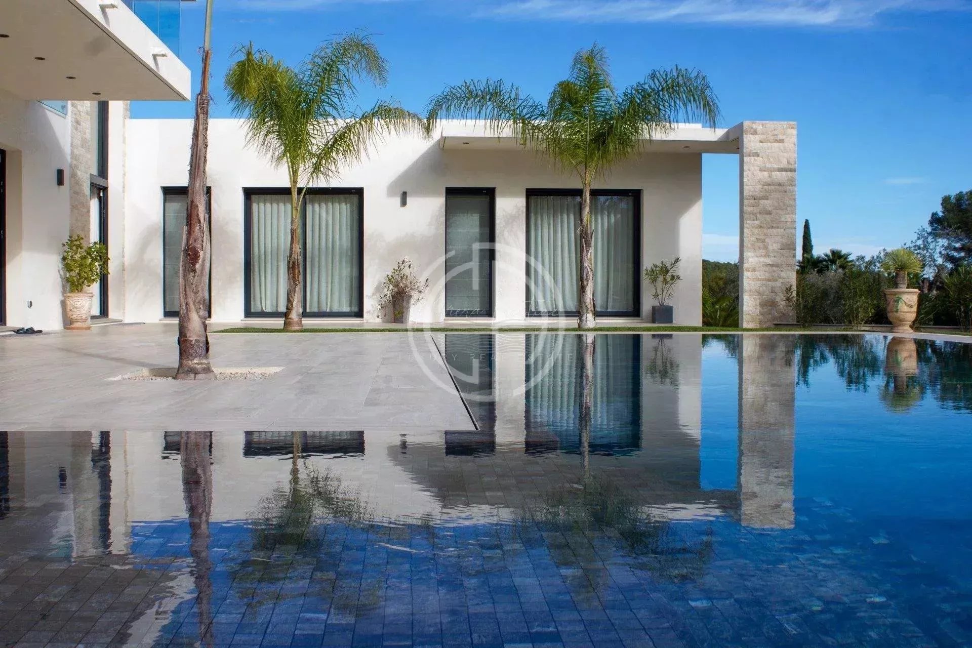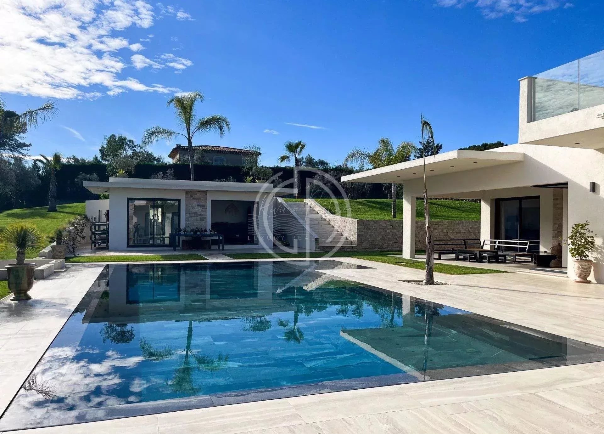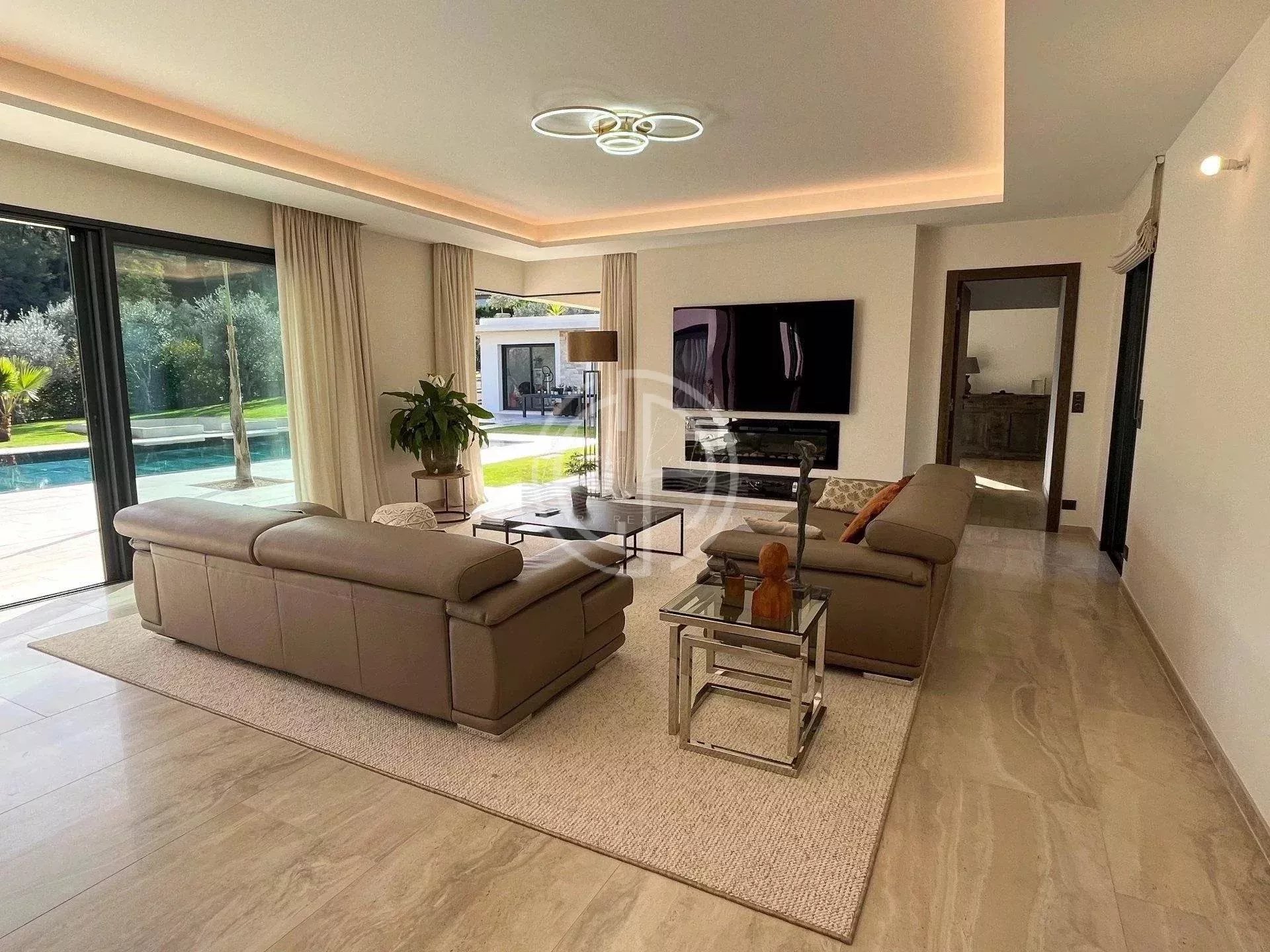 Située dans l'un des quartiers les plus résidentiel de Mougins, à proximité immédiate des parcs de Mougins, du hameau du Guillet et de l'étang de Font merle, cette villa permet un accès très facile et très rapide pour rejoindre Cannes et sa mythique Croisette. Elle se compose d’un grand salon salle à manger avec une cuisine ouverte entièrement équipée, quatre belles chambres en suite dont une grande suite parentale avec dressing et salle de bains, d'un très grand garage et d'un espace pouvant être aménagé en studio indépendant ,salle de sport, salle cinéma ou salle de jeux. De plus, un espace pool-house avec une 5ème chambre La Villa est entourée d’un beau jardin paysagé avec ses 23 oliviers. Elle dispose également d’une piscine miroir. Nombreux stationnements. Équipée de la dernière technologie domotique, elle bénéficie également de toutes les dernières normes de construction.