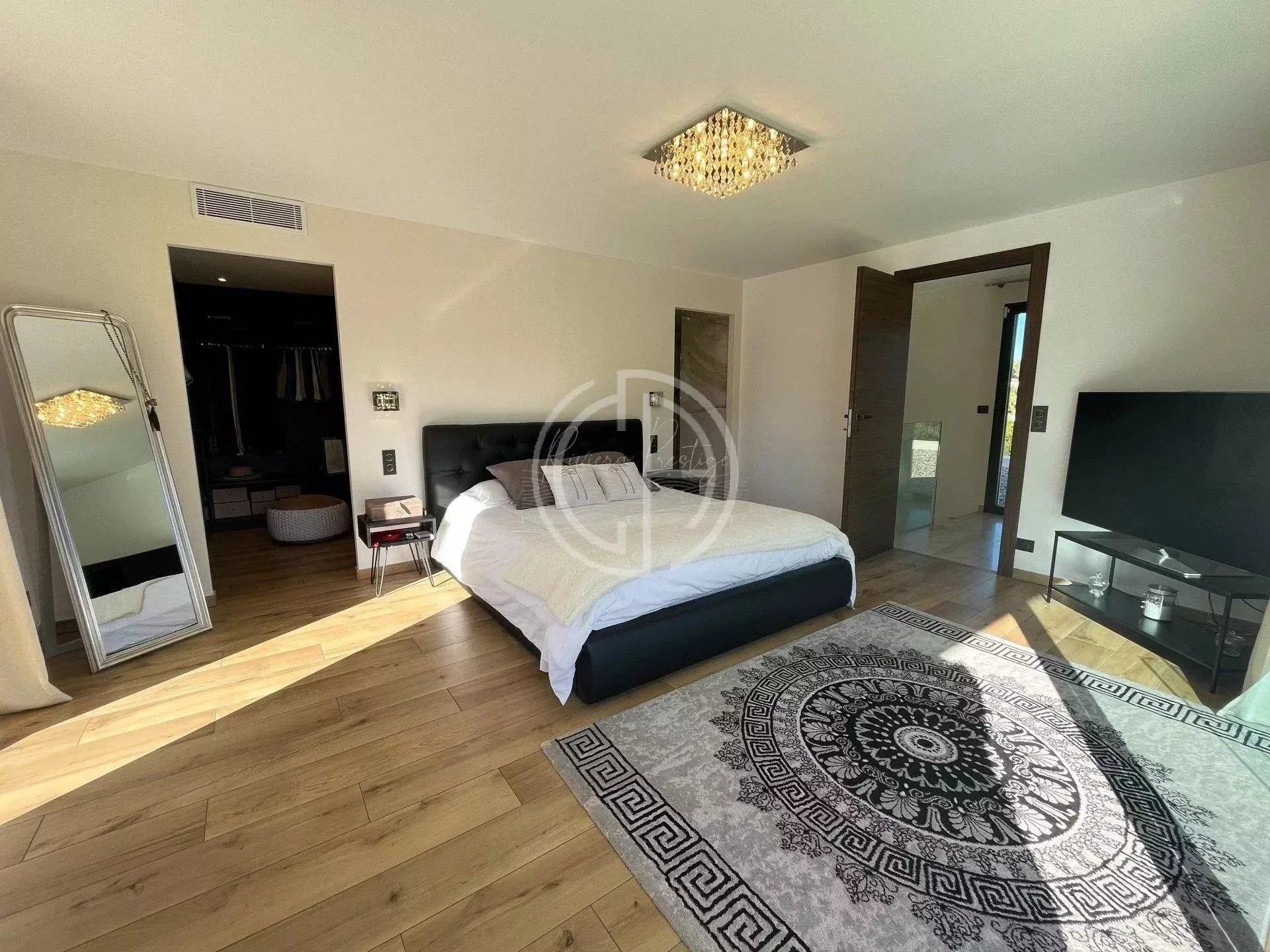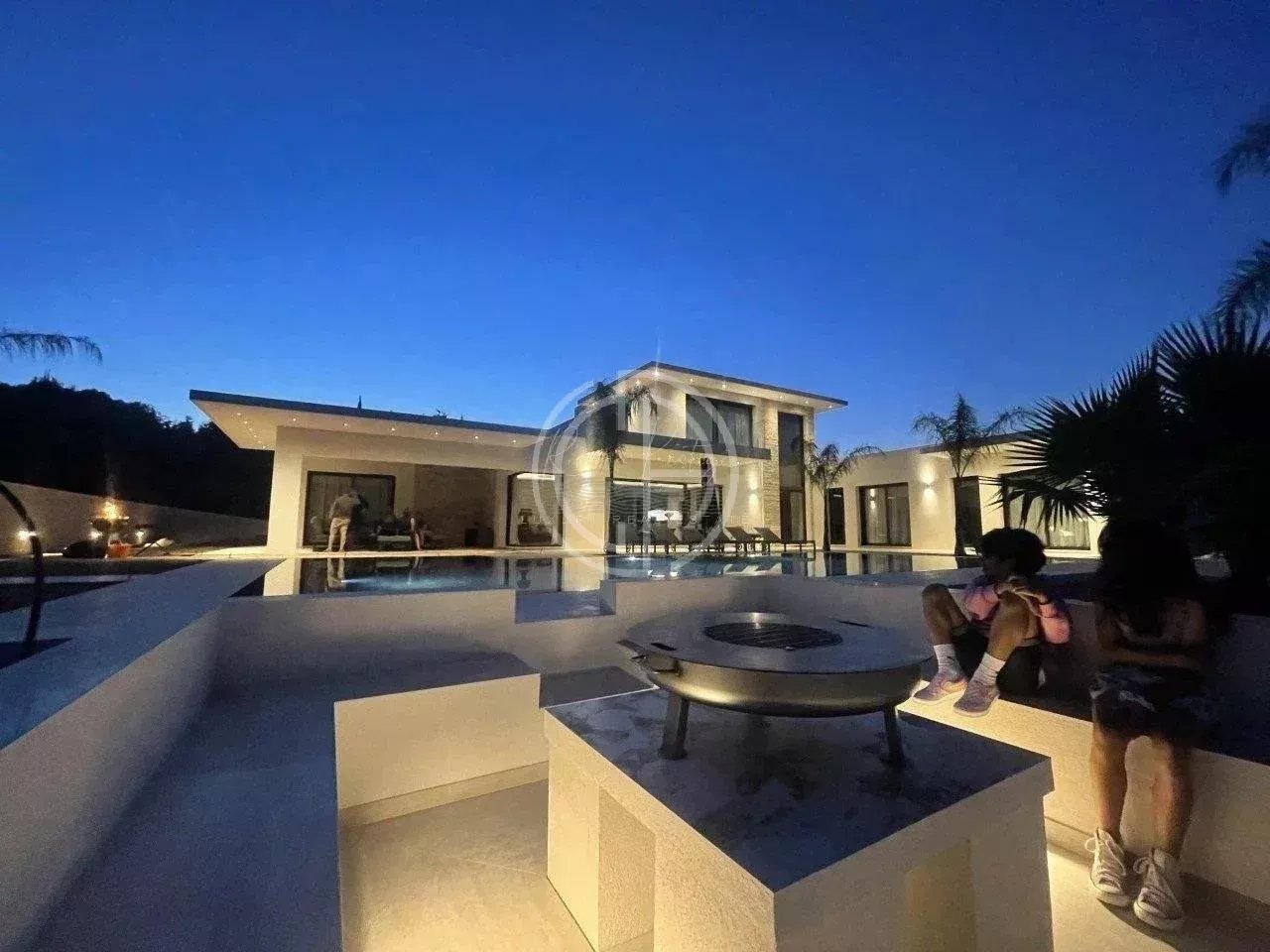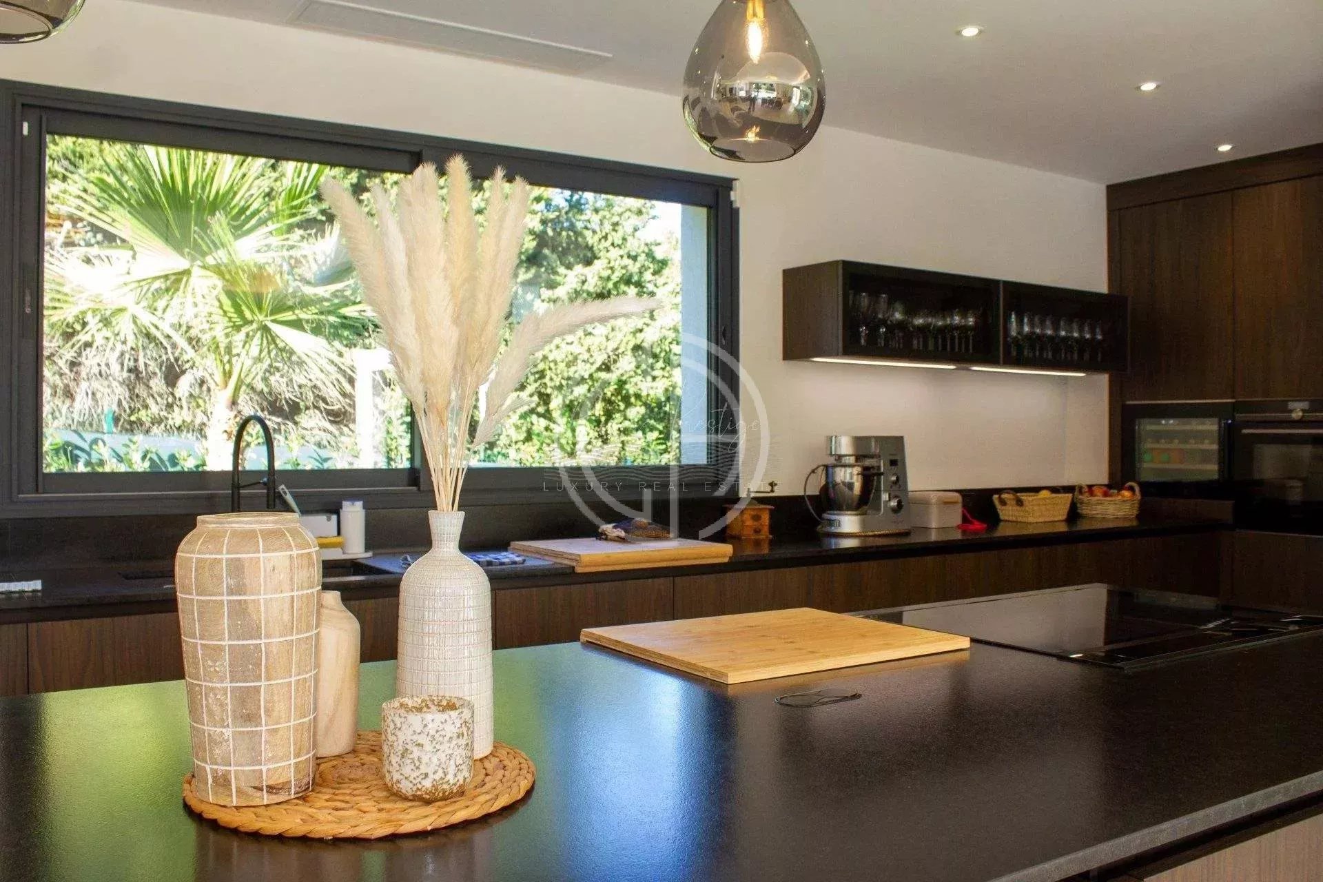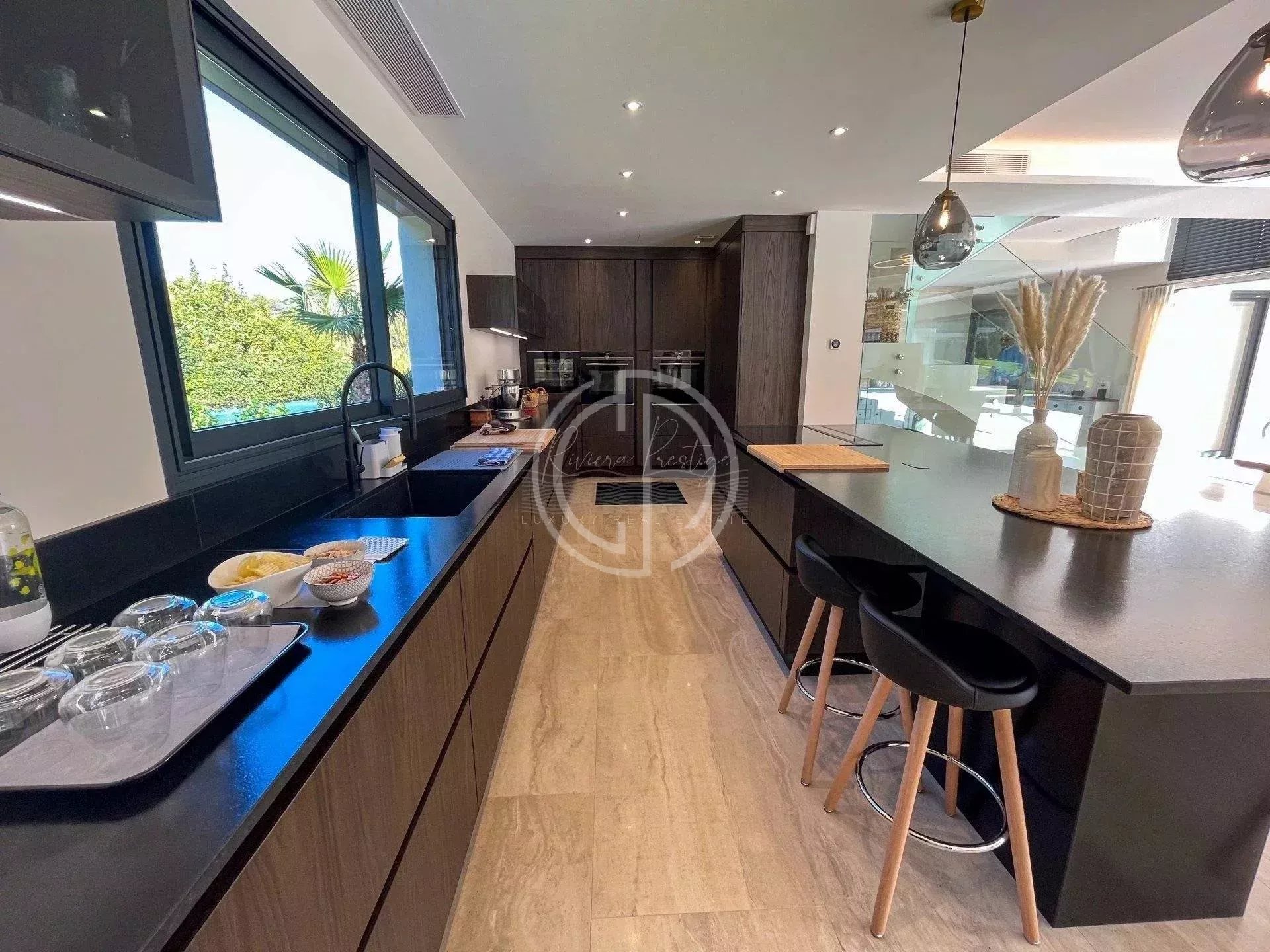 Située dans l'un des quartiers les plus résidentiel de Mougins, à proximité immédiate des parcs de Mougins, du hameau du Guillet et de l'étang de Font merle, cette villa permet un accès très facile et très rapide pour rejoindre Cannes et sa mythique Croisette. Elle se compose d’un grand salon salle à manger avec une cuisine ouverte entièrement équipée, quatre belles chambres en suite dont une grande suite parentale avec dressing et salle de bains, d'un très grand garage et d'un espace pouvant être aménagé en studio indépendant ,salle de sport, salle cinéma ou salle de jeux. De plus, un espace pool-house avec une 5ème chambre La Villa est entourée d’un beau jardin paysagé avec ses 23 oliviers. Elle dispose également d’une piscine miroir. Nombreux stationnements. Équipée de la dernière technologie domotique, elle bénéficie également de toutes les dernières normes de construction.