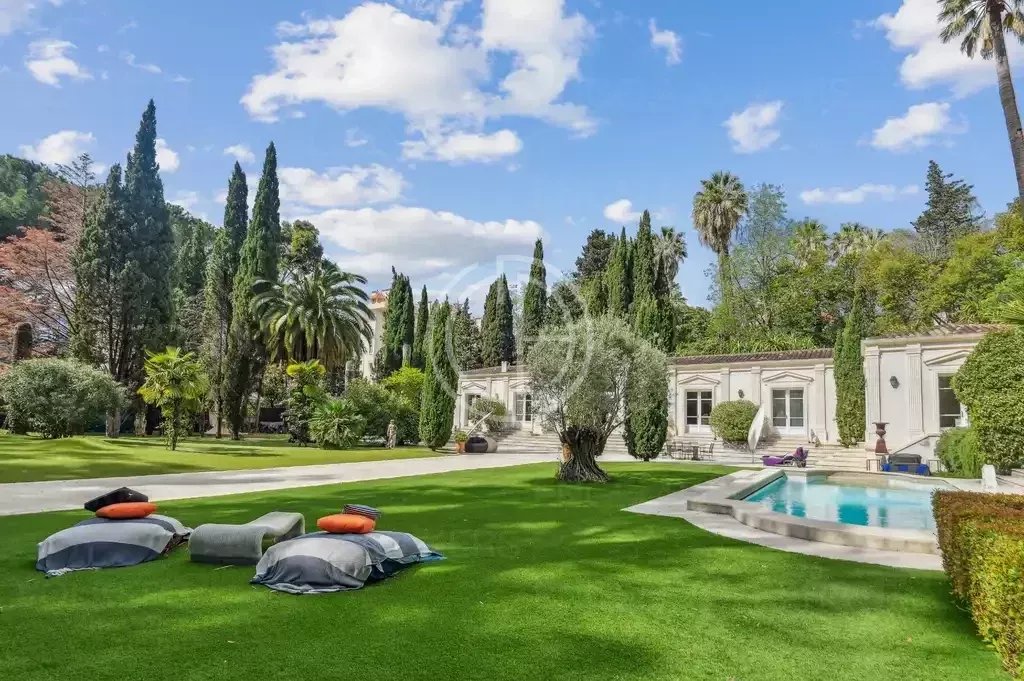 A 5 minutes du bord de mer et proche du centre-ville à pied, Splendide propriété de style palladien au cœur d'un superbe parc de près d'un demi-hectare avec piscine, fontaines et statues en pierre. Principalement de plain-pied, la propriété d'environ de 345m2 offre de grands volumes baignés de lumière, ainsi qu'une belle hauteur sous plafond. Hall d'entrée, vaste réception avec cheminée d'environ de 65 m2 rythmée de portes fenêtres ouvrant sur les jardins, superbe cuisine indépendante luxueusement équipée avec coin repas d'environ 30 m2, 3 chambres ensuite avec salles de bains en marbre, dont la confortable chambre de maître. Salle de cinéma, vaste bureau, grand dressing et buanderie, salle de fitness et sauna ainsi que 4ème chambre pour les invités avec sa salle d'eau et WC séparé Terrain plat de 4500 m² avec bel espace piscine et pool house. Pour les amateurs de Golf, putting green et salle de Trackman. En annexe, deux pavillons d'invités de 40m2 et 25m2. Pour les amateurs de Golf : espace d'entraînement Track Man ainsi qu'un mini-parcours de golf dans son propre parc privé.