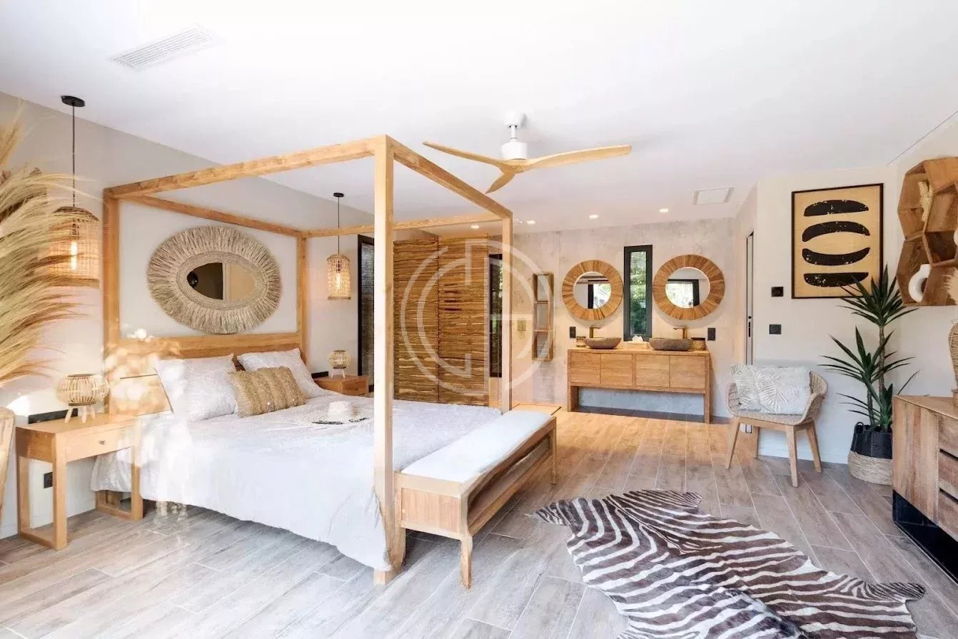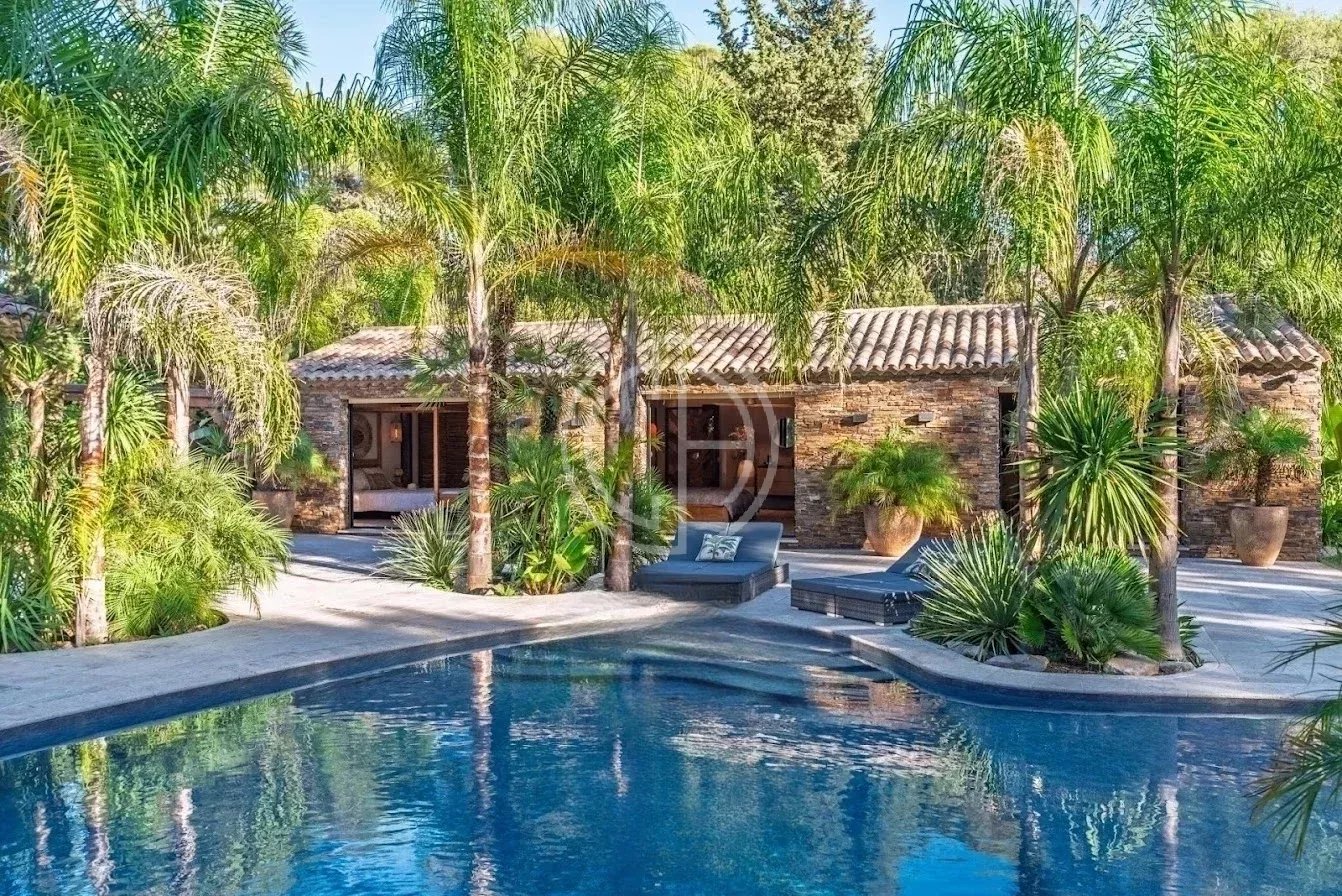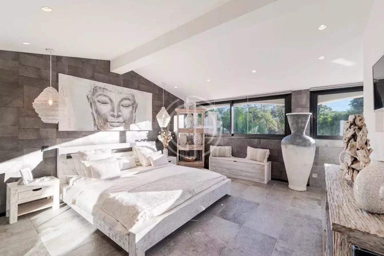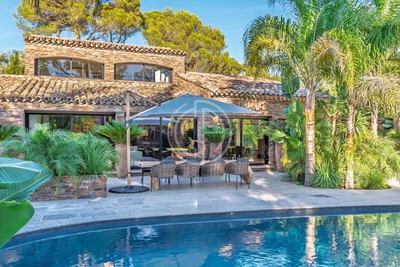 Située dans un quartier résidentiel prisé de Mougins, cette villa offre un véritable havre de paix au coeur d'un environnement verdoyant et parfaitement entretenu. Quasiment de plain-pied, la propriété se distingue par son atmosphère sereine et son superbe jardin paysagé, véritable oasis de verdure et d'intimité. La maison principale accueille un vaste séjour baigné de lumière, ouvert sur les terrasses et les espaces extérieurs. La propriété dispose de six chambres en suite, dont une chambre indépendante au fond du jardin, idéale pour recevoir amis, famille, ou pour loger un gardien ou une nounou. Pensée pour le bien-être et la détente, la villa bénéficie de deux piscines, intérieure et extérieure, d'un espace spa avec sauna, ainsi que d'un pool house parfaitement équipé. Un carport et plusieurs places de stationnement complètent le bien. Classe énergie : A - Classe climat : A / Montant estimé des dépenses annuelles d'énergie pour un usage standard : entre 1 384 € et 1 872 € (année de référence 2021). Annexe : Classe énergie : C - Classe climat : A / Montant estimé des dépenses annuelles d'énergie pour un usage standard : entre 773 € et 1 045 € (année de référence 2021). Les informations sur les risques auxquels ce bien est exposé sont disponibles sur le site Géorisques : www.georisques.gouv.fr Bien situé dans une zone soumise à l'obligation de débroussaillement.