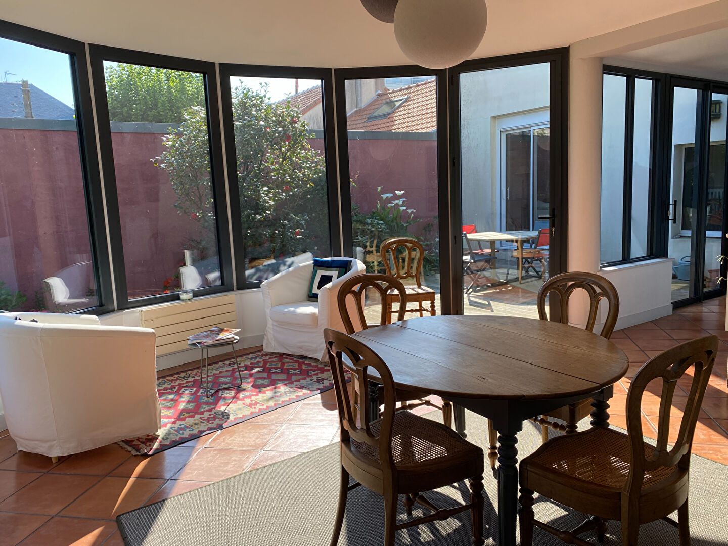 Nantes Saint Félix, Bords de l'Erdre, Maison familiale soignée de 190 m² dans un cadre privilégié Une grande entrée desservant un salon traversant sur parquet avec cheminée Nord-Sud, une pièce de vie orientée Est donnant accès à une vaste terrasse et le jardin arboré sans vis-à-vis, une cuisine aménagée équipée avec arrière-cuisine, wc avec lave-mains. Six chambres dont une suite parentale avec dressing, un bureau, une salle de bains, une salle d'eau, une pièce lingerie avec de nombreux rangements. Un garage Proximité des transports, des établissements scolaires de qualité et des commerces de quartier. Un bien rare, alliant calme, lumière et volumes, dans un cadre verdoyant à quelques minutes du centre-ville. (3.36 % honoraires TTC à la charge de l'acquéreur.)