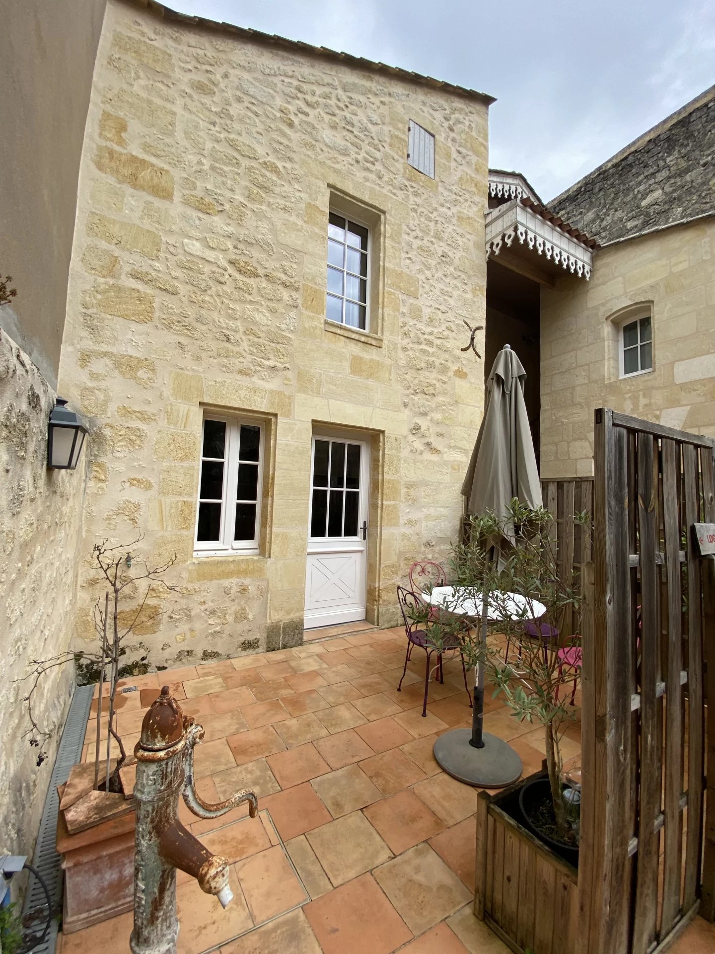 Cette magnifique bâtisse en pierre entièrement rénovée, d'une superficie d'environ 180 m2, s'élève sur un terrain de 90 m2. Elle est située au coeur du pays du Libournais, dans une région de collines viticoles, Saint Emilion : Cité Médiévale inscrite au Patrimoine Mondial de l'UNESCO. La partie habitation se décompose sur 2 niveaux de 70 m2 au sol chacun (possibilité de création de gîtes ou chambres d'hôtes). Ce bien comprend un gîte en duplex exploité de 55 m2, agrémenté de sa terrasse particulière, et il est pourvu d'une dépendance d'environ 30 m2 à aménager ainsi que d'une réserve complémentaire. Un local commercial de 50 m2 le complète. On y accède par une rue piétonne extrêmement passante. EMPLACEMENT PREMIUM.