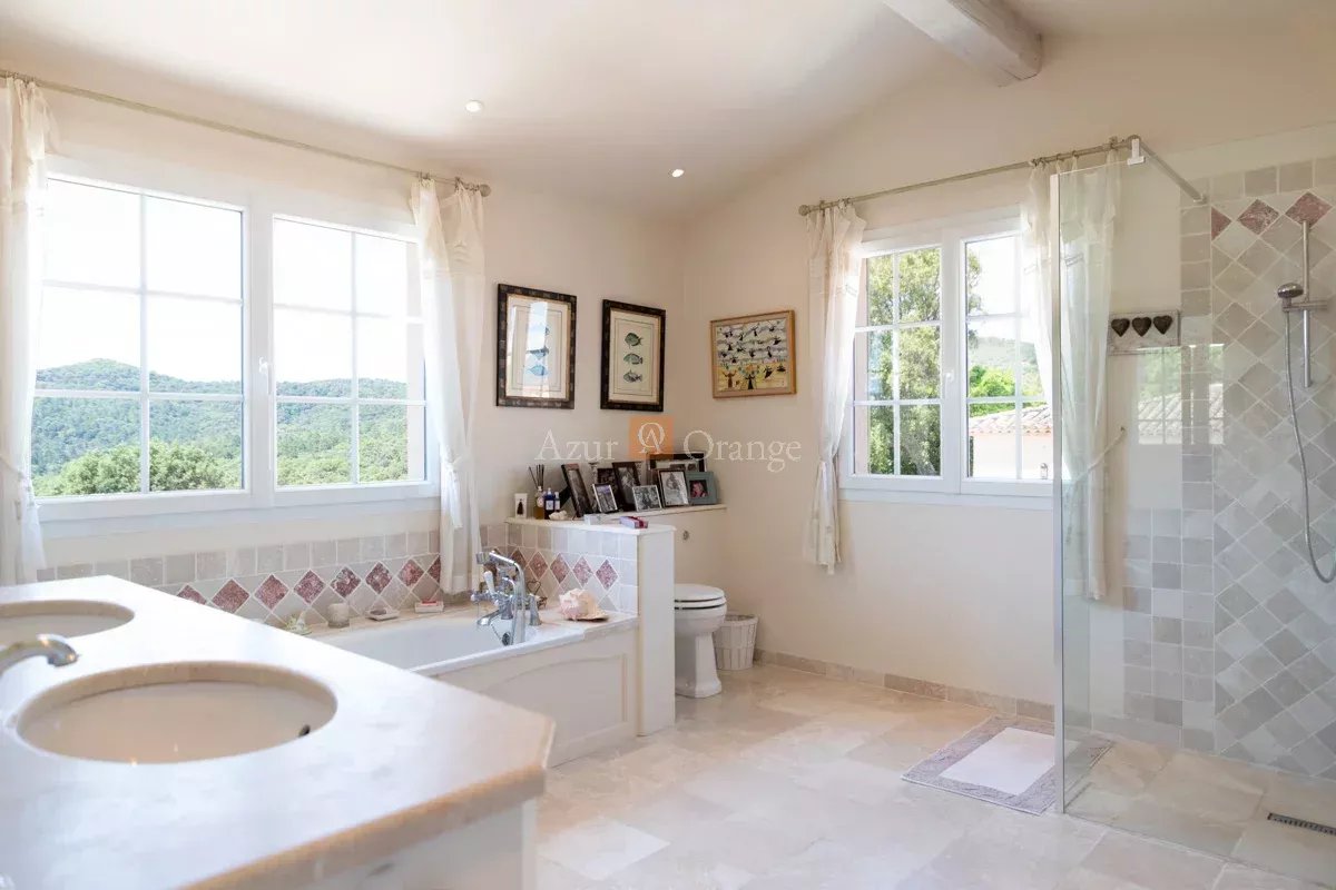 Cette propriété est avant tout une expérience de vie. Nichée au cœur des collines d’un petit village proche du golfe de Saint-Tropez, elle jouit d’une position dominante et offre des vues dégagées sur la nature environnante et la mer au loin. Son parc de environ 2 ha entièrement paysagé accueille en son, sein une bâtisse développant près de 385 m² qui dispose de 9 chambres au total, d’une piscine, d’un court de tennis, d’un terrain de pétanque et de nombreuses annexes. C'est une rareté absolue pour quiconque souhaite profiter de la douceur de vivre de la Provence et de son calme sans pour autant souffrir d’un quelconque isolement.