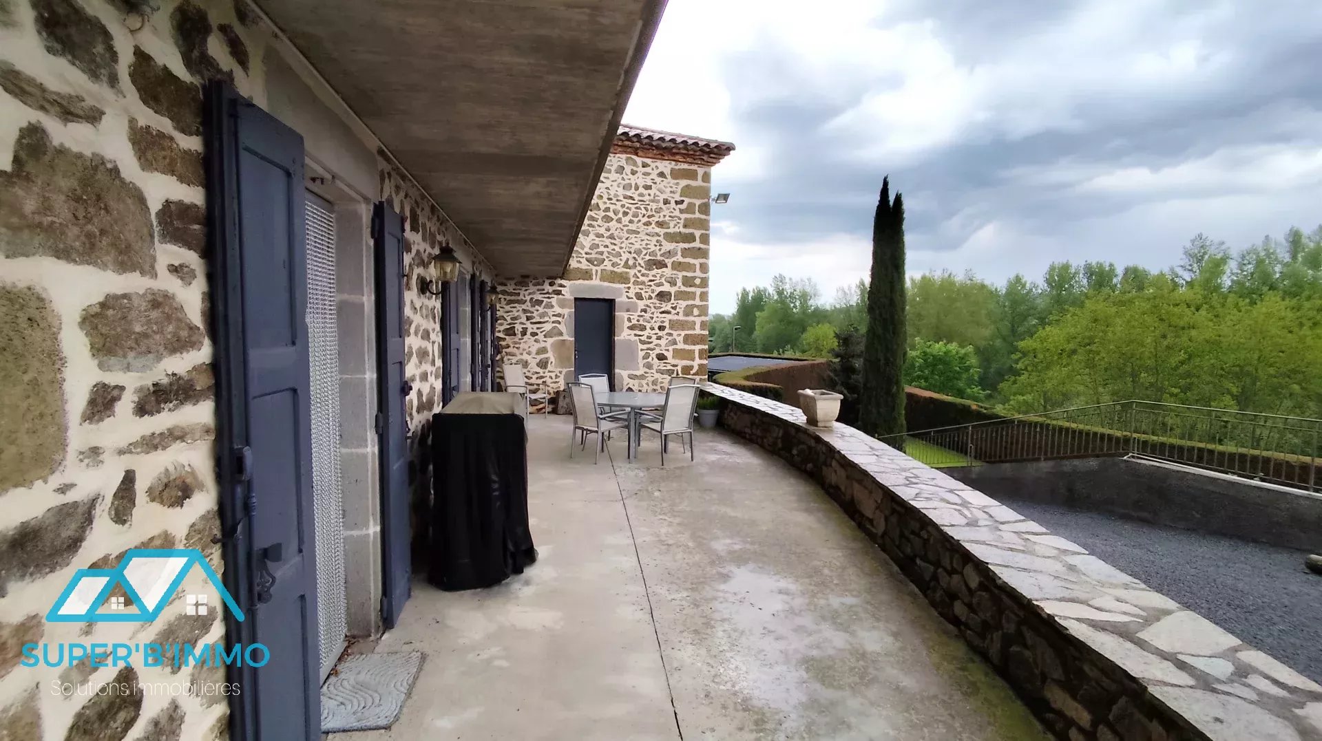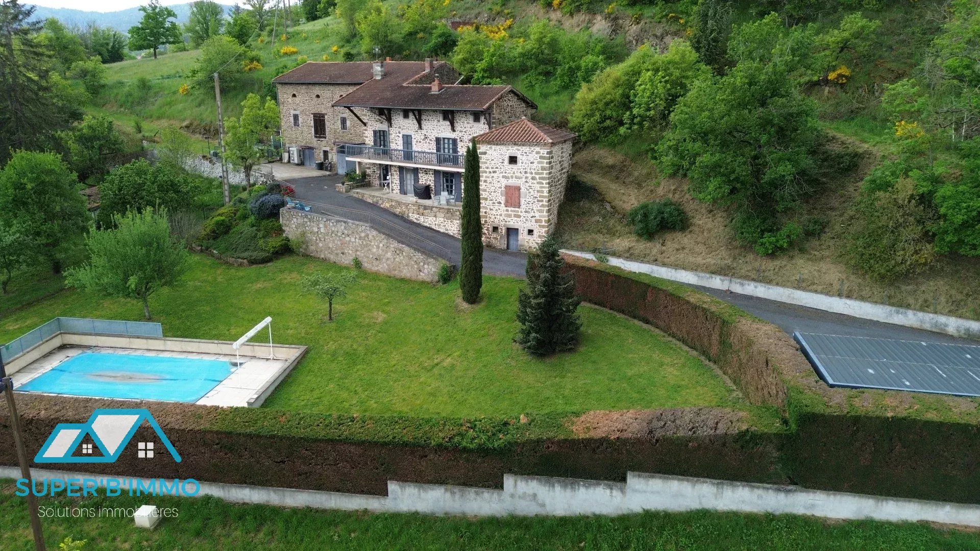 Située à l'entrée de Langeac tout proche des commerces, belle maison en pierre de 120 m2 habitable avec nombreuses dépendances dont un pigeonnier et un atelier sur 3 niveaux En rdc cuisine moderne avec un grand salon / bureau, salle de douche et wc indépendant. A l'étage 3 chambres dont une suite parentale avec coin baignoire/lavabo/wc Une grande terrasse en rdc et un balcon à l'étage permettent de profiter de la nature environnante . Un terrain de 3 ha clôture la maison et une piscine enterrée (avec wc et douche à proximité) complètent ce bien d'exception. Double vitrage, pompe à chaleur et chauffe eau thermodynamique garantissent de faibles charges. Puit disponible dans le terrain. Carport pour 3 voitures à l'entrée , portail électrique. Un bel endroit pour une maison familiale avec possibilité de projet de gite . Contacter Sandra pour plus d'infos