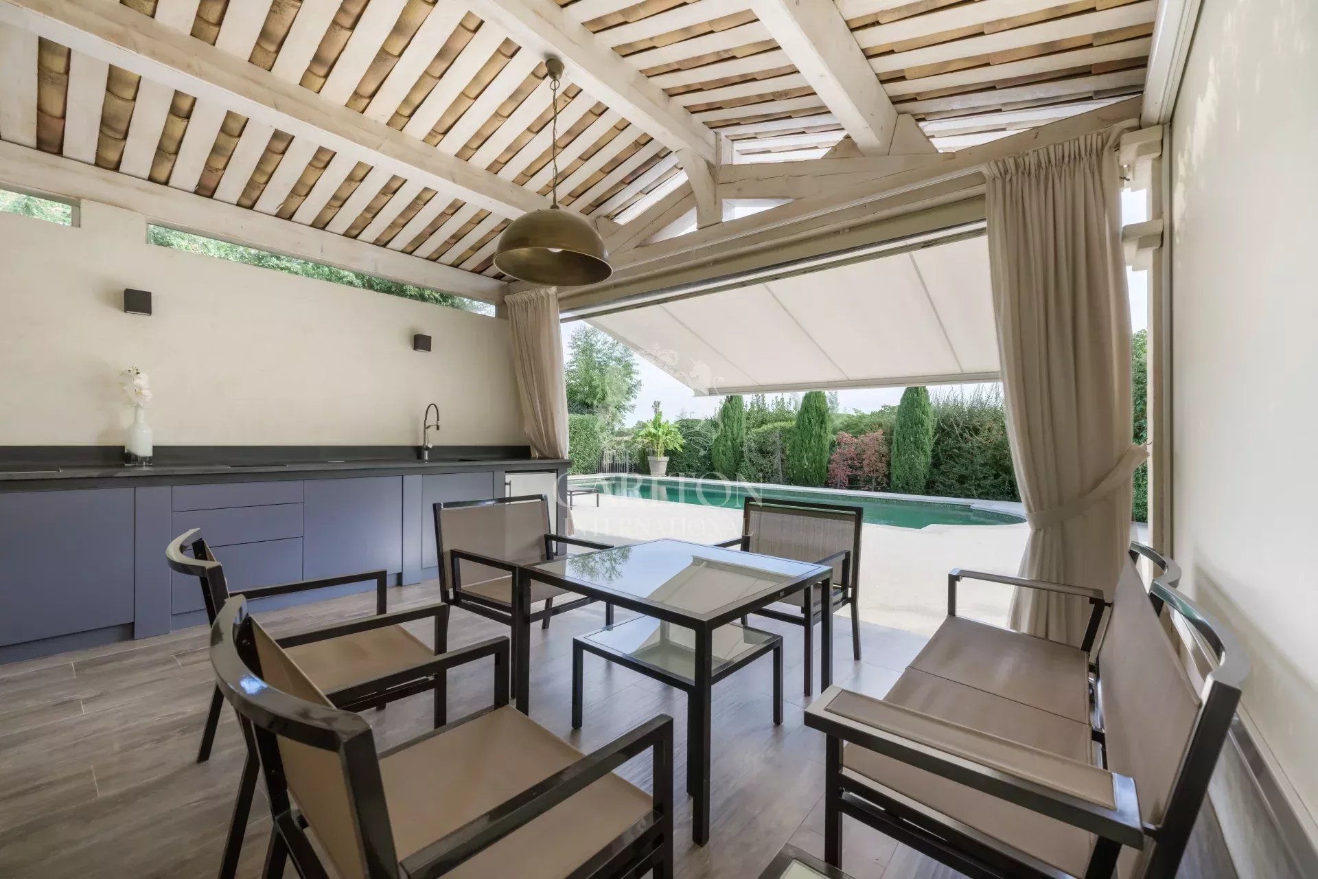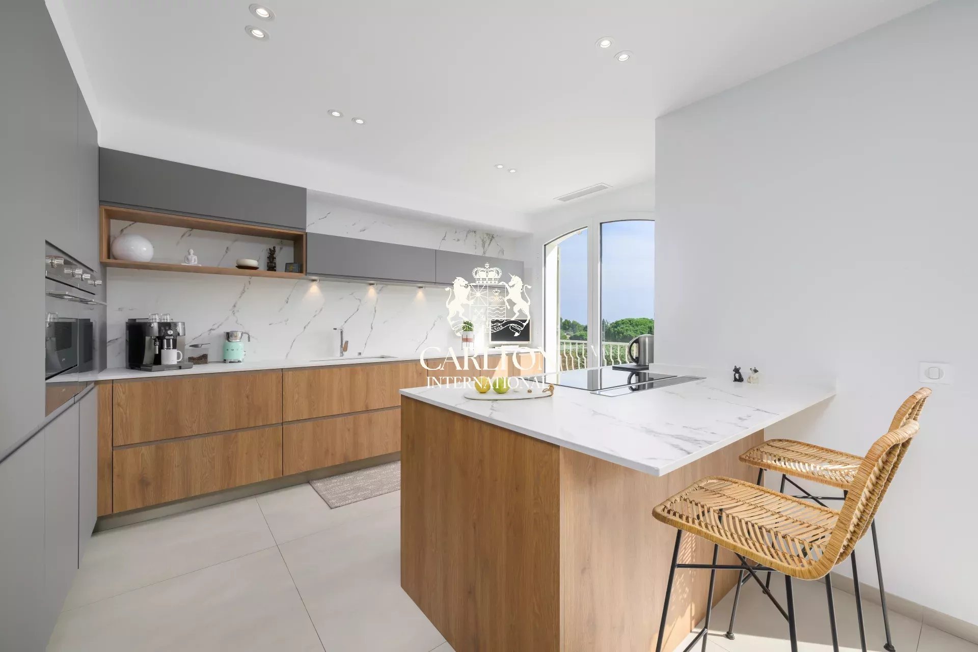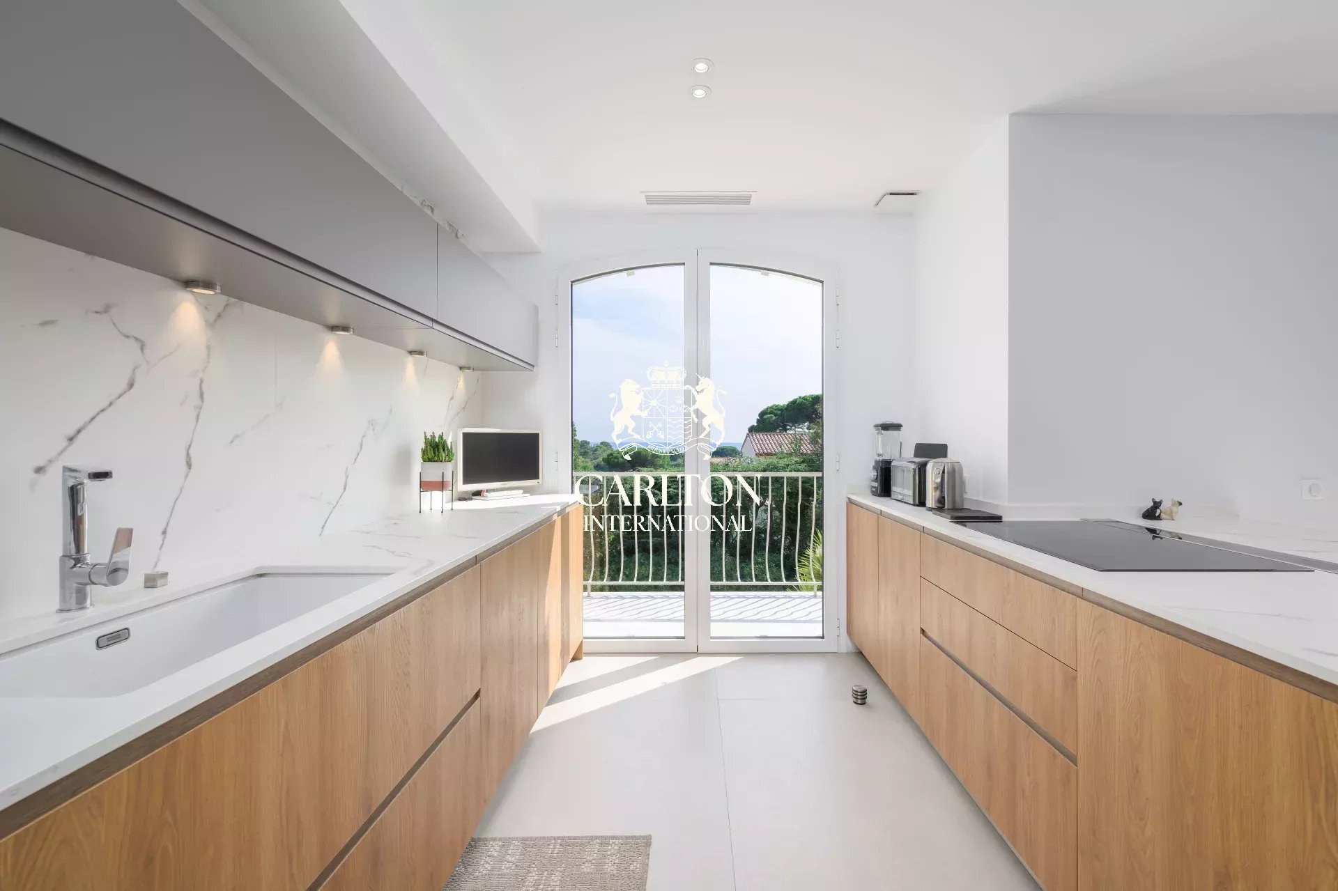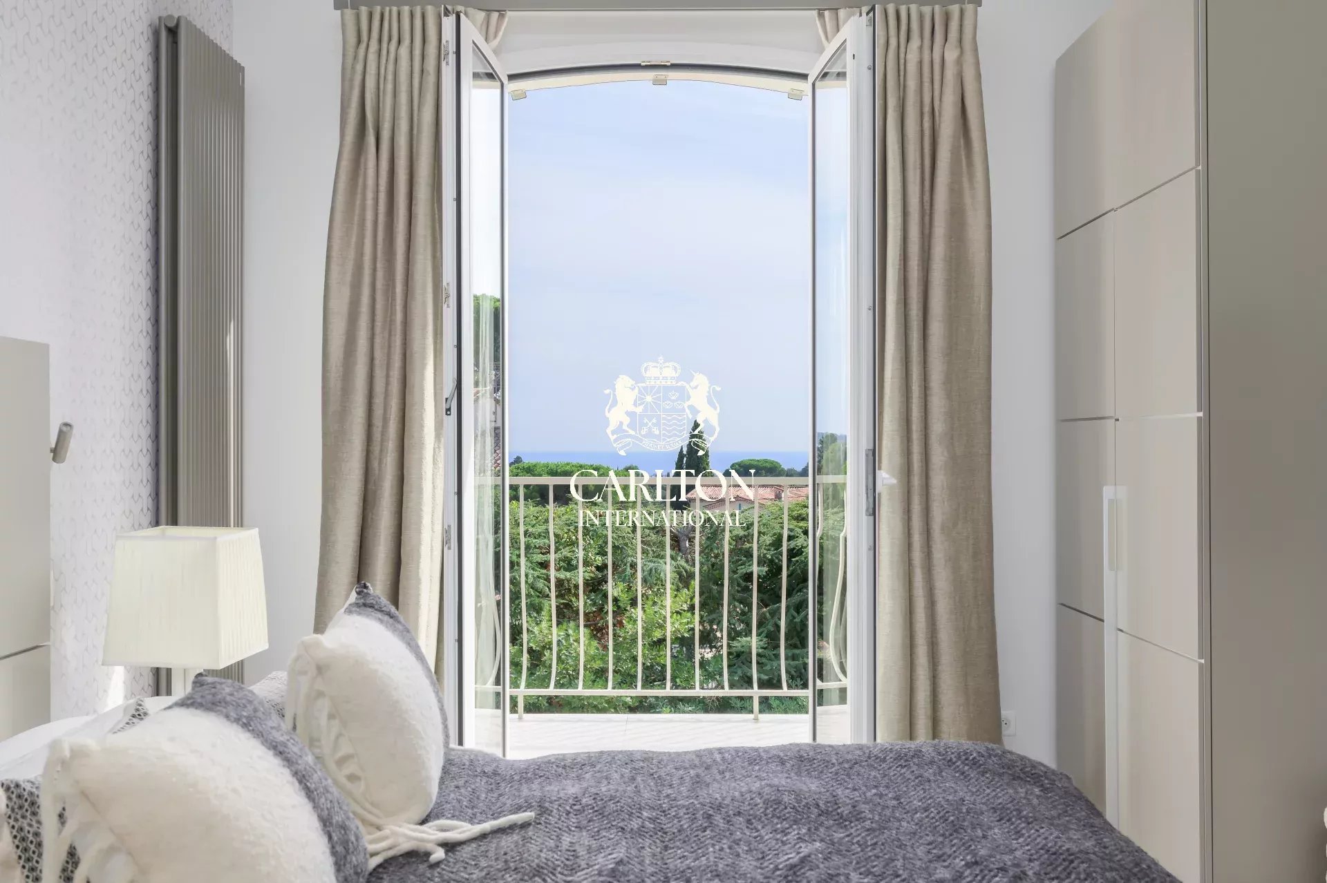 Découvrez cette sublime villa d'environ 260m2 située en position dominante avec une vue mer époustouflante. Nichée sur un terrain plat de 2500 m² dans un environnement calme. cette propriété offre un cadre de vie idyllique à proximité de toutes les commodités essentielles. L'intérieur. entièrement rénové avec des matériaux de haute qualité. comprend un triple espace de vie composé d'une cuisine moderne. d'un vaste salon lumineux et d'une grande salle à manger d'où vous pourrez admirer la mer. La suite principale et sa terrasse privée se situent au même niveau et offrent également une jolie vue sur la Méditerranée. Le rez-de-jardin comprend quatre chambres avec balcon. trois salles d'eau. et de multiples espaces de rangement dont des dressings et une buanderie. -- À l'extérieur. la propriété se distingue par sa grande piscine en mosaïques et son magnifique pool house avec cuisine d'été toute équipée. Un espace parfait pour des moments de convivialité. La dépendance apporte de la surface supplémentaire. elle est facilement aménageable en salle de sport. grand bureau. ou studio indépendant. Un double carport avec prise pour voiture électrique. une cave et un abri de jardin complètent ce bien et vous apportera tout le confort nécessaire. Cette propriété. idéalement située à quelques minutes de Mougins et de Cannes. représente une parfaite maison de famille alliant charme. modernité et fonctionnalité dans un environnement naturellement beau et paisible. Les dépenses énergétiques moyennes en 2021 se situent entre 4 970€ et 6 724€ par an. Les honoraires de l'agence sont à la charge du vendeur. Les informations sur les risques auxquels ce bien est exposé sont disponibles sur le site Géorisques http://www.georisques.gouv.fr