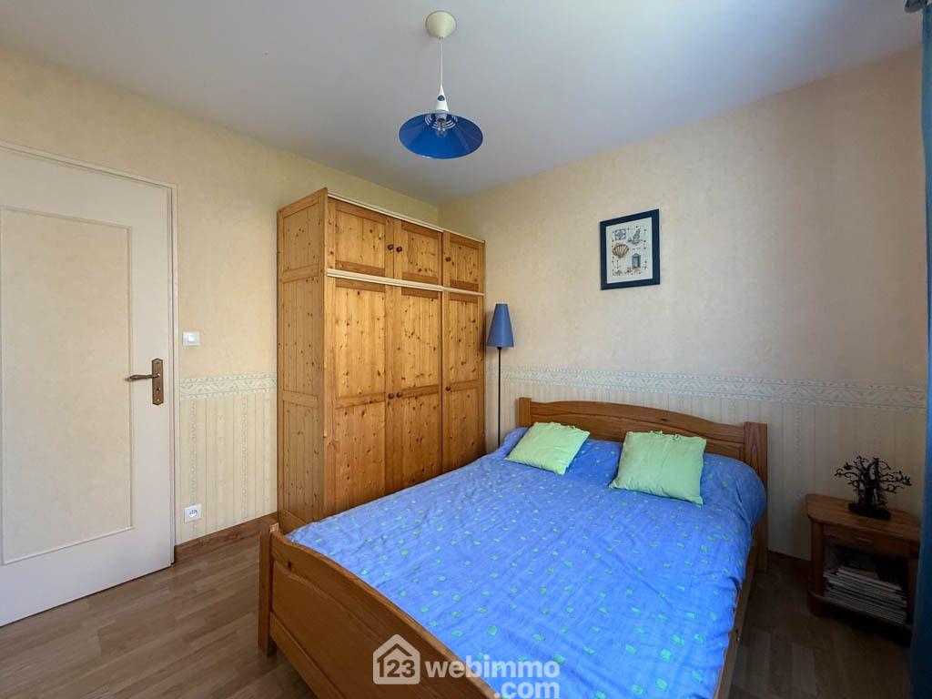 Quelques marches mènent à l'espace nuit, composé de trois chambres (12 m² avec placard, 11 m² et 9 m²) et d'une salle de bains avec WC.