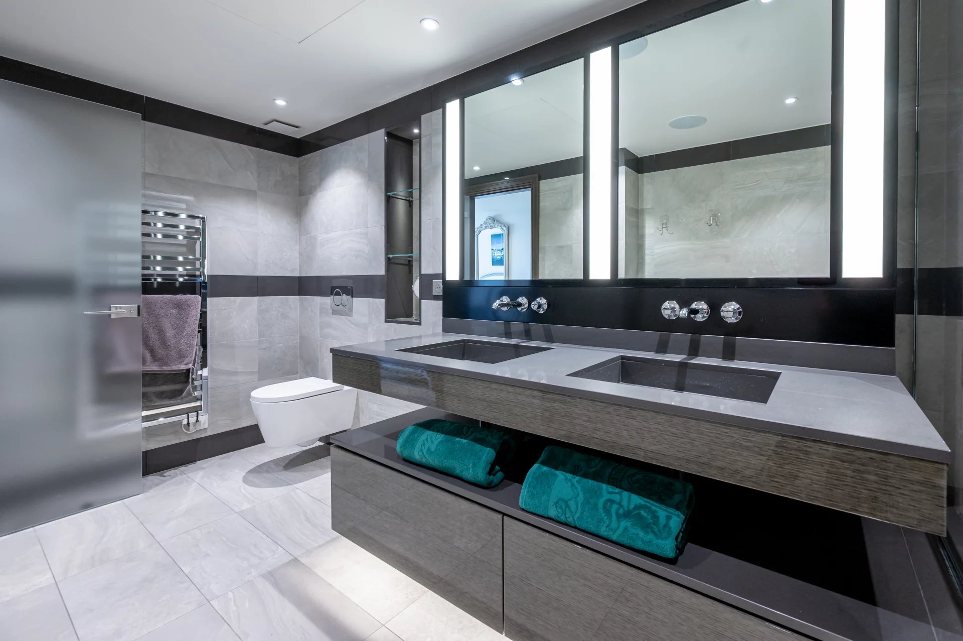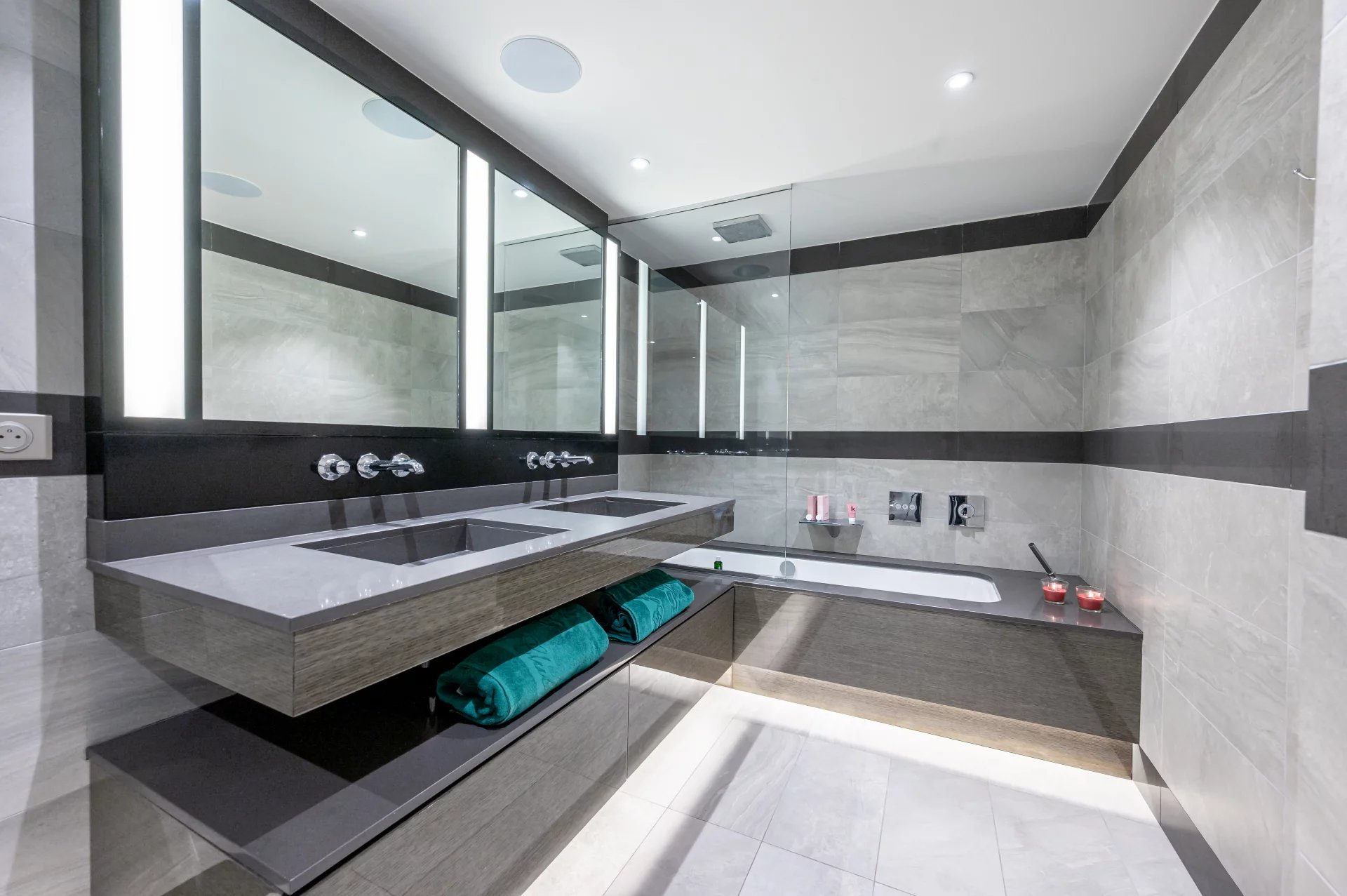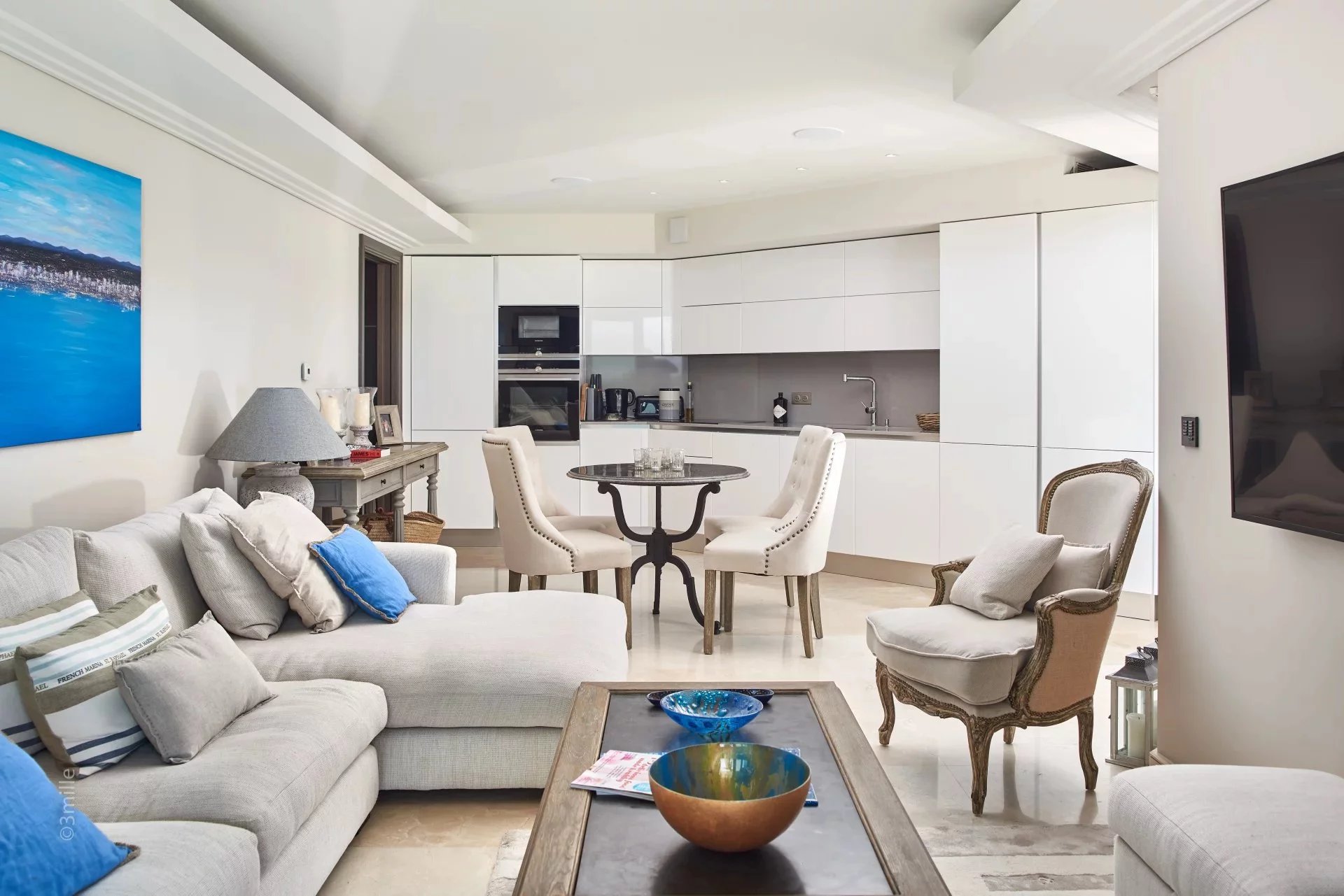 Les finitions haut de gamme soulignent la noblesse de l’architecture : marbre, bois précieux, silestone et quartz confèrent à cet intérieur un cachet unique et une atmosphère empreinte de raffinement.