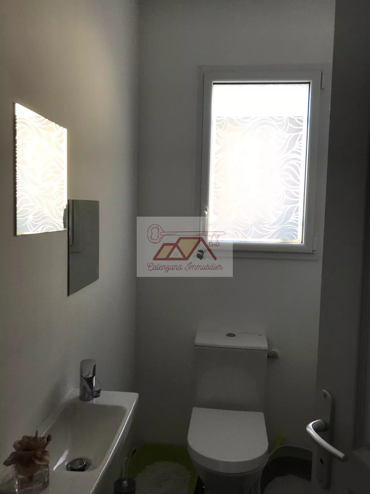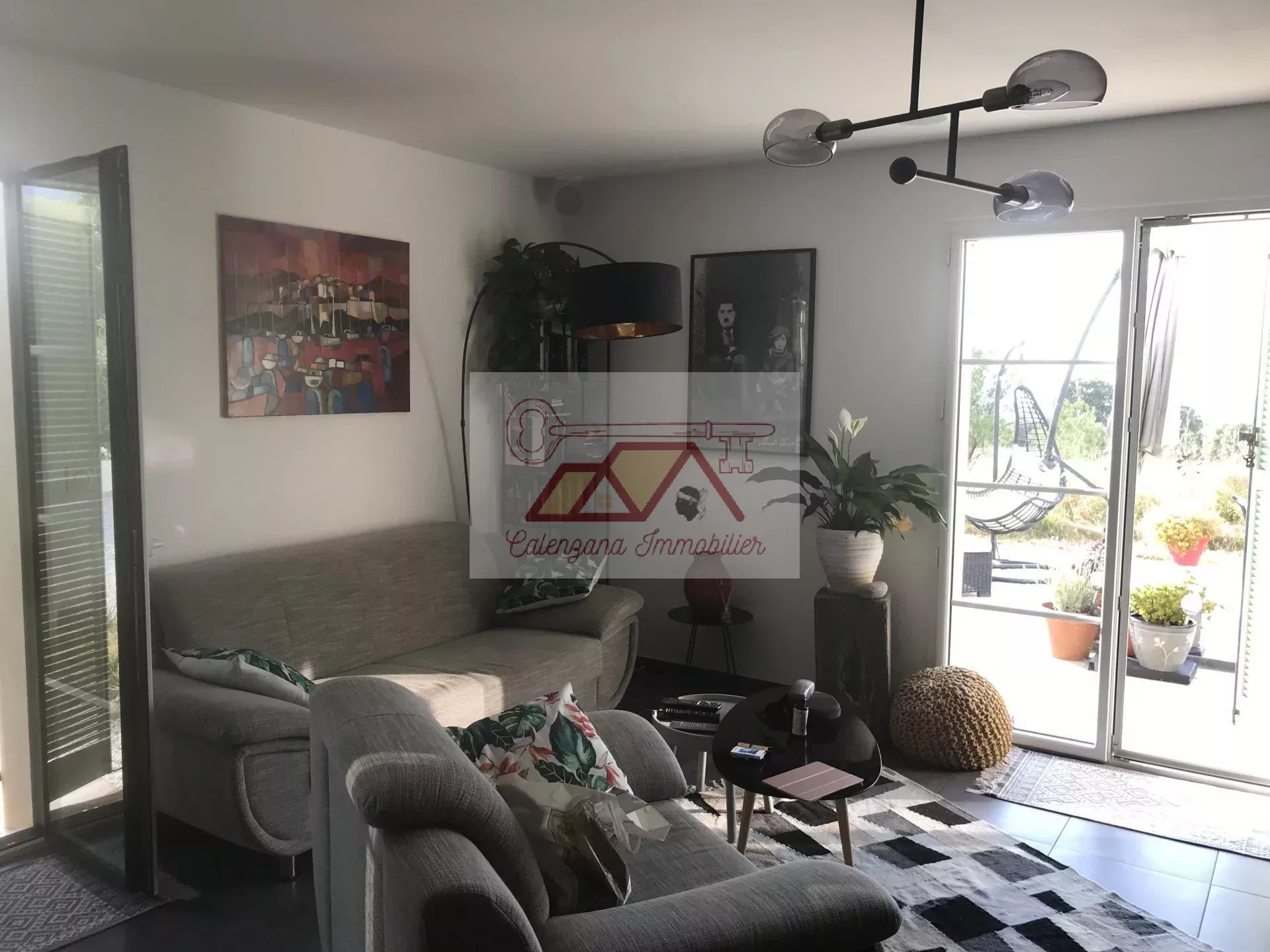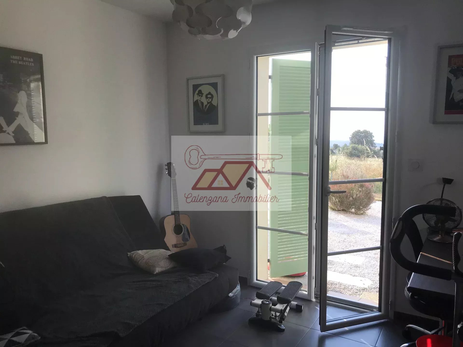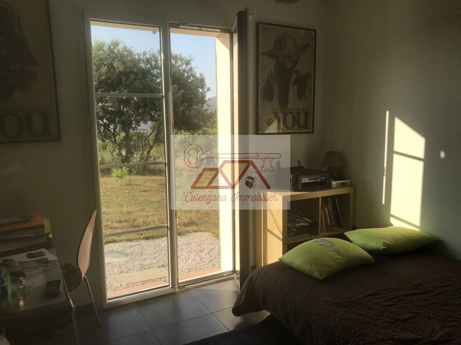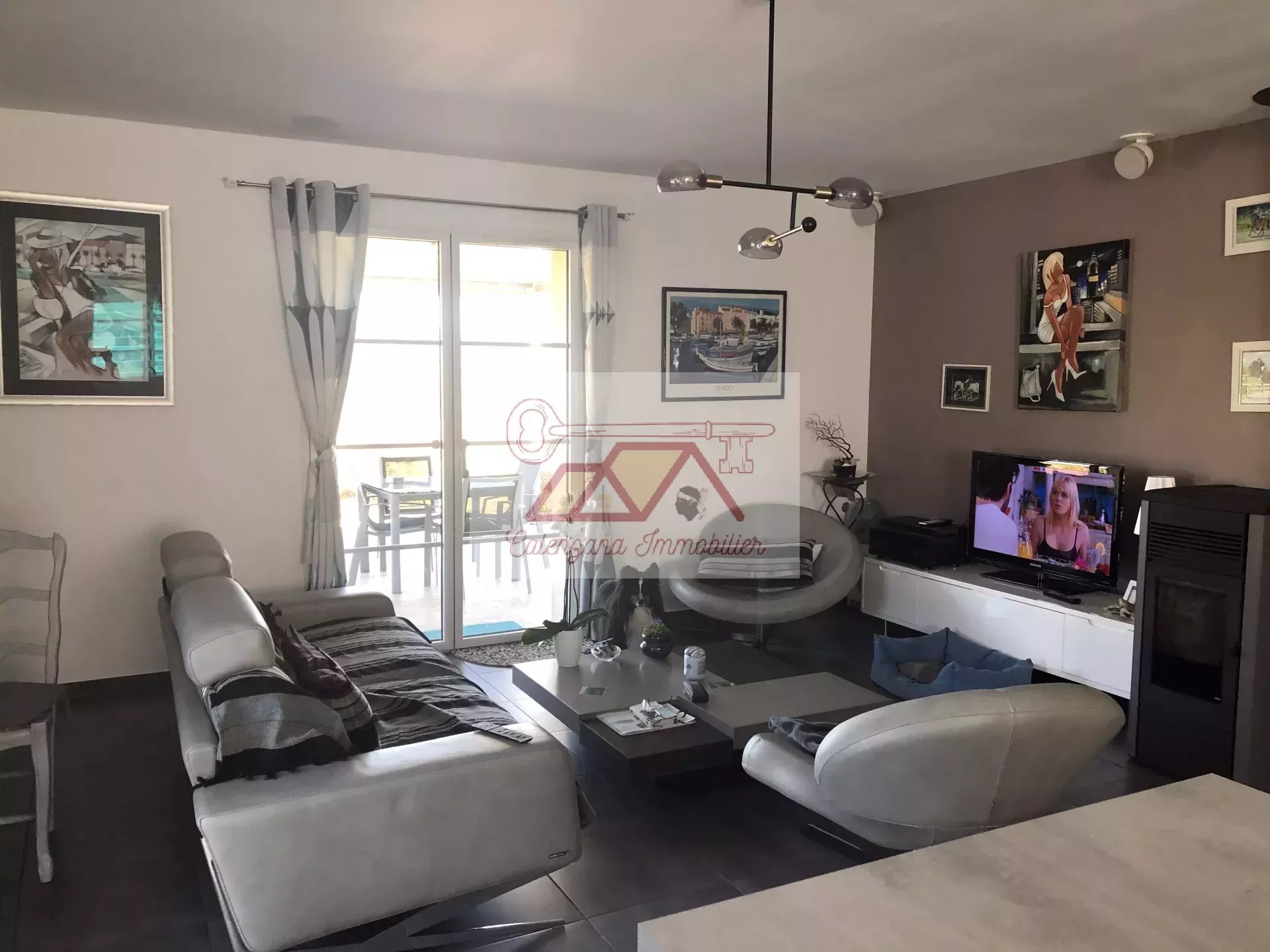 L’intérieur se compose d’un spacieux salon lumineux équipé d’un poêle à granulés, ouvert sur une cuisine moderne et fonctionnelle avec ilot central. Cette pièce de vie s’étend sur une terrasse agrémentée d’une pergola bioclimatique électrique, offrant une vue dégagée sur la mer et le Monte Grosso.