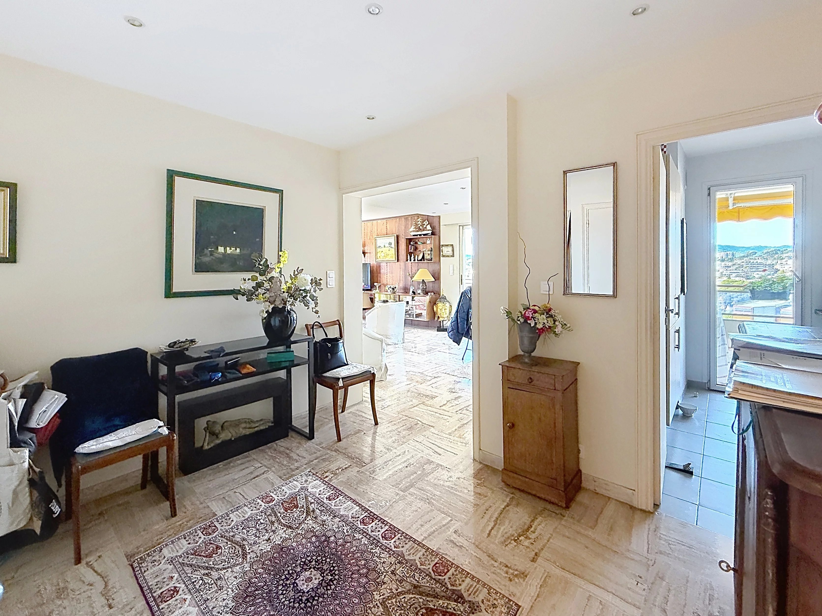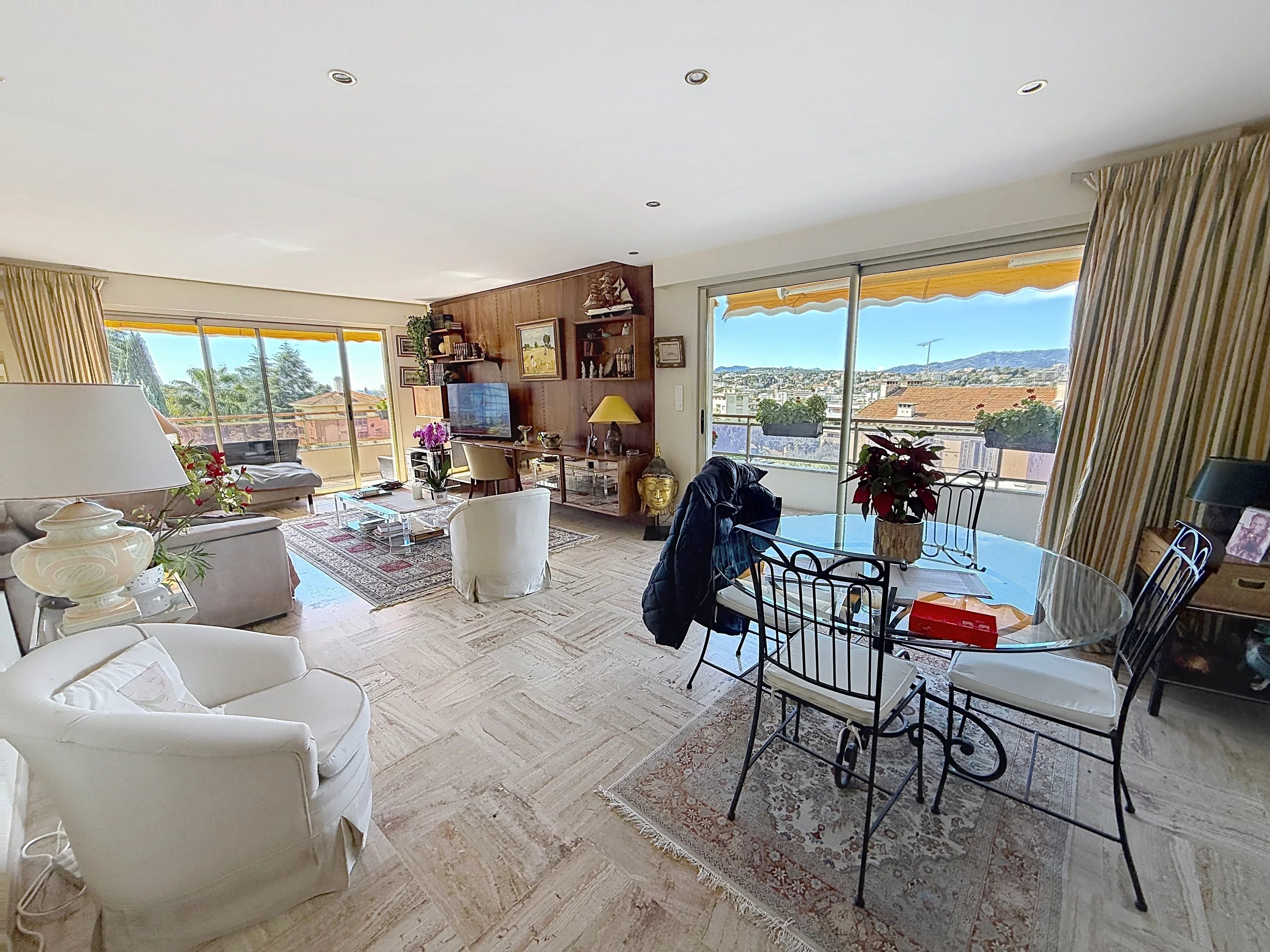 Dans l’un des quartiers les plus recherchés du Cannet, à deux pas de la mairie et des commerces, se cache un bien rare, comme suspendu entre ciel et mer. Au dernier étage d’une petite copropriété de standing, sécurisée et parfaitement entretenue, cet appartement de 84,4 m² offre une sensation immédiate d’espace, de calme et de lumière. Ici, tout s’ouvre, tout respire. Dès l’entrée, le regard est attiré vers l’extérieur. Le séjour, baigné de lumière, se prolonge naturellement vers une superbe terrasse d’angle de 39 m². Une véritable pièce de vie à ciel ouvert, où le panorama se déploie sans obstacle, des collines jusqu’à la mer, avec en toile de fond l’Estérel. Aucun vis-à-vis, aucun bruit, juste cette impression rare d’être ailleurs… tout en étant à pied de tout. La cuisine, indépendante et entièrement équipée, conjugue fonctionnalité et élégance. Les deux chambres, dont une pouvant faire office de bureau, bénéficient elles aussi d’un accès direct à la terrasse, prolongeant cette sensation de fluidité entre intérieur et extérieur. L’ensemble est parfaitement agencé, complété par une salle de bains avec baignoire et douche, ainsi qu’un WC indépendant. Le confort se poursuit avec un garage fermé et une cave attenante, des atouts devenus essentiels aujourd’hui. Situé dans un environnement résidentiel, calme et plat, ce bien réunit tout ce que recherchent les amateurs de lumière, de volumes et de sérénité. Un appartement où chaque instant est baigné de clarté, où l’on vit dedans comme dehors, et dont la terrasse devient le prolongement naturel de vos journées. Un lieu rare, qui ne se visite pas… mais qui se ressent.