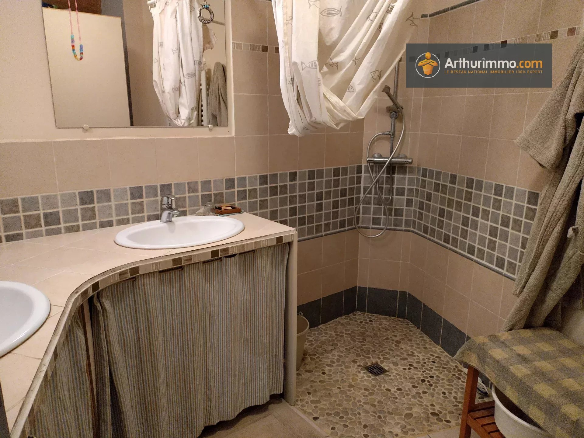 L'agence Arturimmo Lavelanet vous présente cette très spacieuse maison en pierre avec gîte, garage, jardin et potager, nichée dans un hameau de montagne, bénéficiant d'un superbe environnement naturel pyrénéen. Nous entrons par le séjour avec à droite la cuisine et l'arrière cuisine, l'escalier qui monte à l'espace parental constitué d'un bureau,d'une chambre et une salle de douche. En fond de pièce principale, une porte donnant l'accès à la buanderie, aux de toilettes, et à un escalier qui dessert une salle de yoga qui peut être transformé en salle de réception, salon salle de sport, bibliothèque etc... Cette salle bénéficie d'une mezzanine dont le couloir dessert des toilettes et deux chambres et deux salles de douche. A gauche du séjour nous avons un vaste atelier attenant et une lumineuse salle d'activité pouvant faire office de chambre. Attenant à la maison, nous avons un gîte pour randonneurs de 3 pièces 75 m², entièrement équipé et indépendant. Double vitrage, entièrement rénové, tout à l'égout, dans un magnifique cadre de vie au calme, cette maison sera ravir tous les amoureux de nature et de randonnées. Les informations sur les risques auxquels ce bien est exposé sont disponibles sur le site Géorisques : www. georisques.gouv.fr Arthurimmo Lavelanet, 2 avenue Alsace Lorraine 09300 LAVELANET, du lundi au vendredi, de 9h à 12h et de 14h à 18h, le samedi sur rendez vous, 05.34.14.64.66 Honoraires inclus à la charge du vendeur.