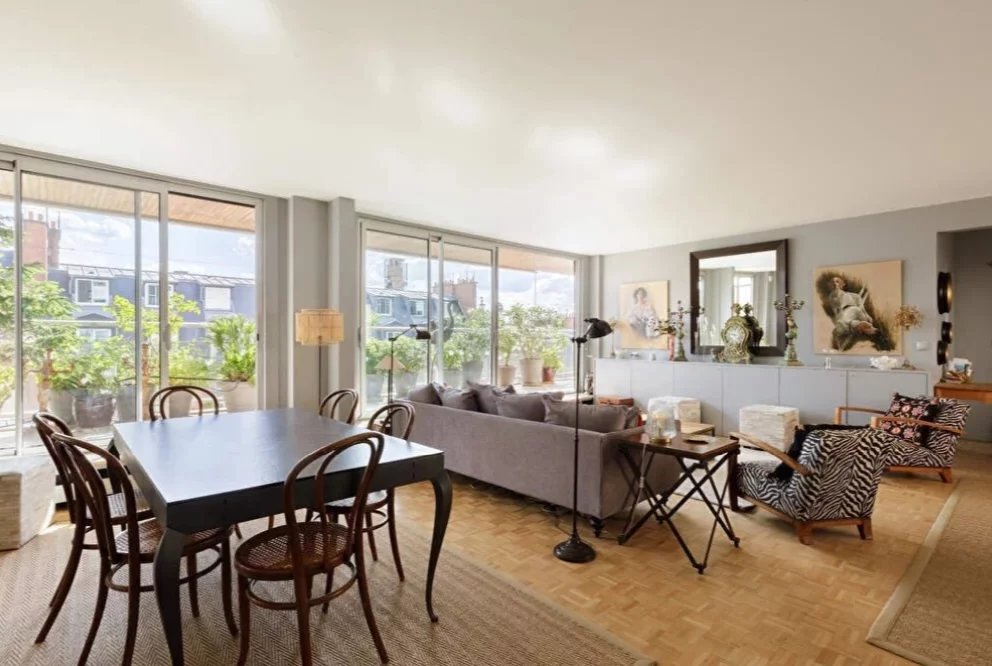 Paris 16 - Maison de la radio, duplex familial et ensoleillé de 160 m2, situé aux 6ème et 7ème étage avec 36 m2 de larges balcons orientés sud ouest d'un immeuble semi-récent avec gardien.