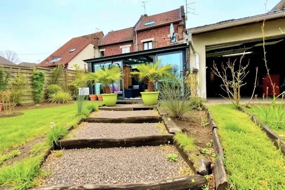 H2Z Immobilier vous propose en EXCLUSIVITÉ À AMIENS, Maison de - 170 m² de surface utile - 5 chambres - Garage - cave - Parcelle de 773m² avec jardin comprenant : RDC : Entrée sur très bel espace salle/salon traversant avec cheminée moderne feu de bois, cuisine ouverte, suivie d'une belle véranda de 18m2 donnant sur un grand jardin de 600m2, wc indépendant, accès à la cave et au garage de 70m2 avec possibilité de faire plusieurs chambres ou une grande chambre parentale. 1er étage : 3 belles chambres, une grande salle de bain avec douche et baignoire, wc indépendant 2ème étage : petite chambre ou bureau, et une grande chambre EXTERIEUR : beau jardin clos de 773m2, place de parking, barbecue en dur, abri de jardin PRESTATIONS : chauffage électrique, cheminée moderne en bois, menuiserie double vitrage, fibre SITUATION : maison située à proximité de commerces, des arrêts de bus, des écoles maternelles et primaires, d'un collège, du pôle des cliniques, à moins de 10mn de la gare de Longueau et Amiens, accès rapide rocade DPE : CE = D / GES = B PRIX : 325 000 € Honoraires agence inclus charge vendeur «Les informations sur les risques auxquels ce bien est exposé sont disponibles sur le site Géorisques : www.georisques.gouv.fr»