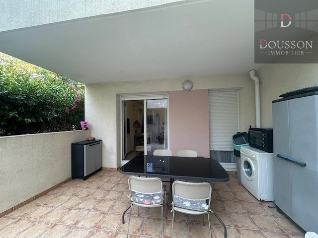 Dans une copropriété avec piscine, t2 en rez de jardin de 35 m2, composé d'une entrée, kitchenette, chambre avec placard mural, salon séjour ,