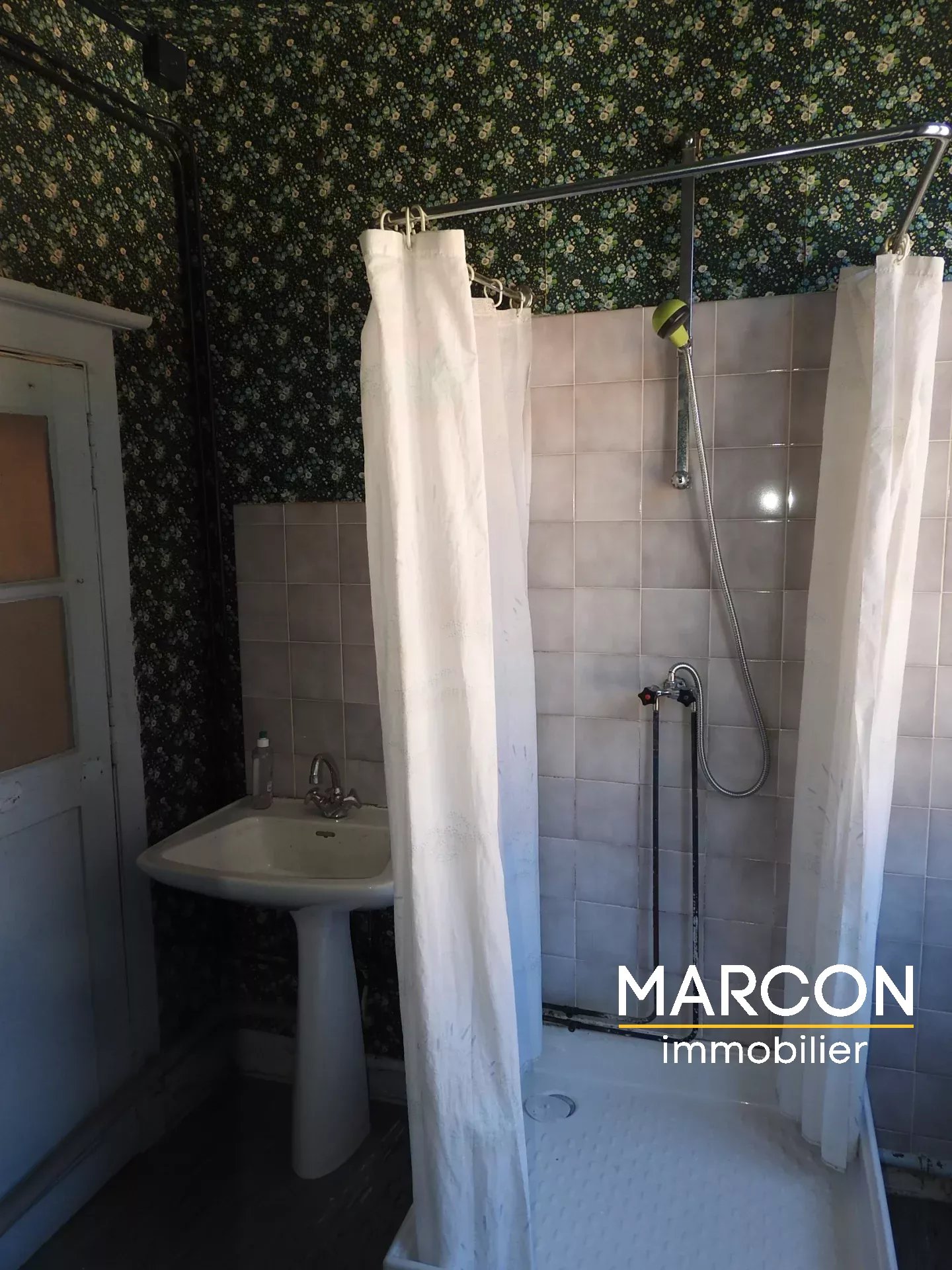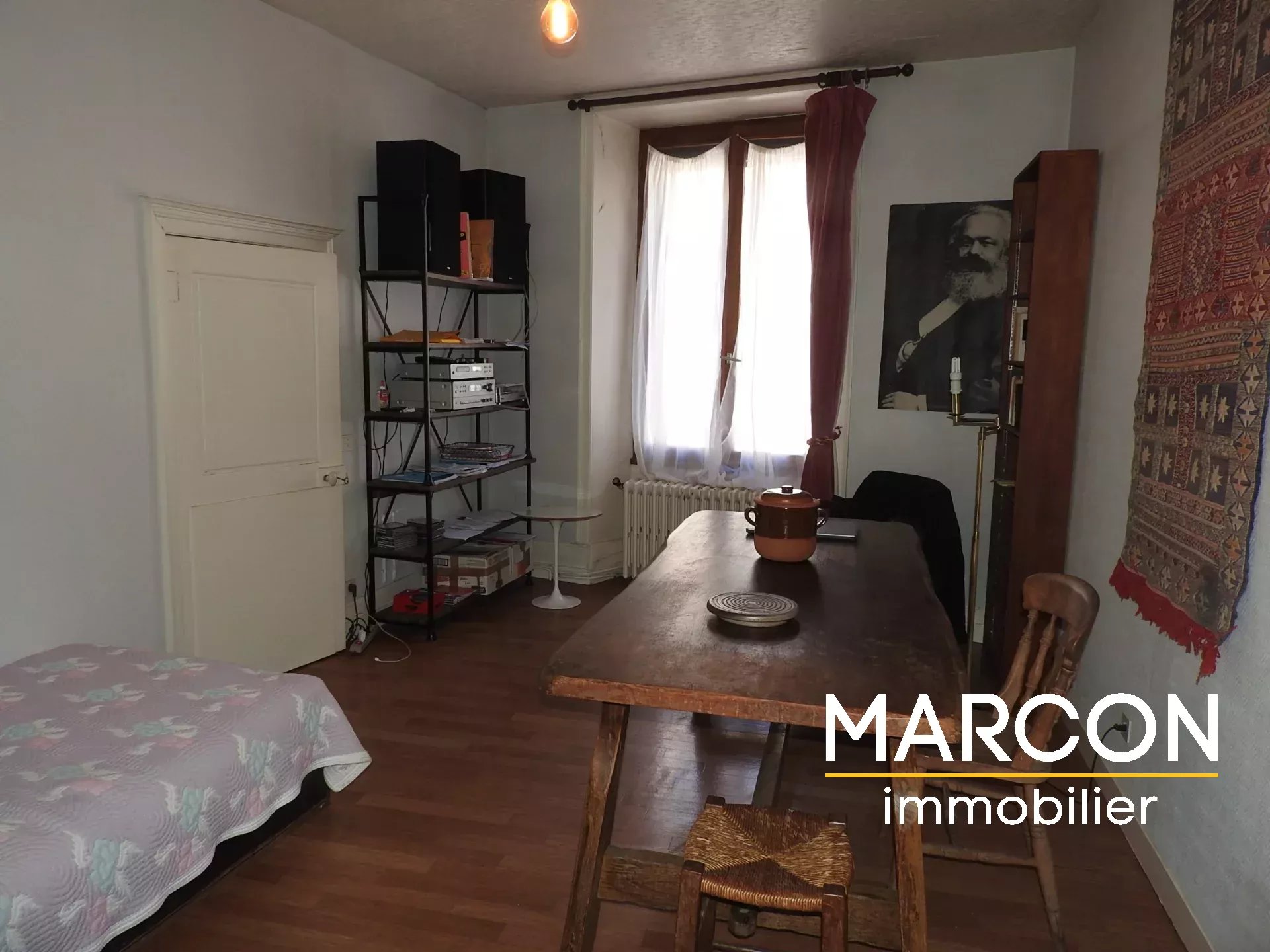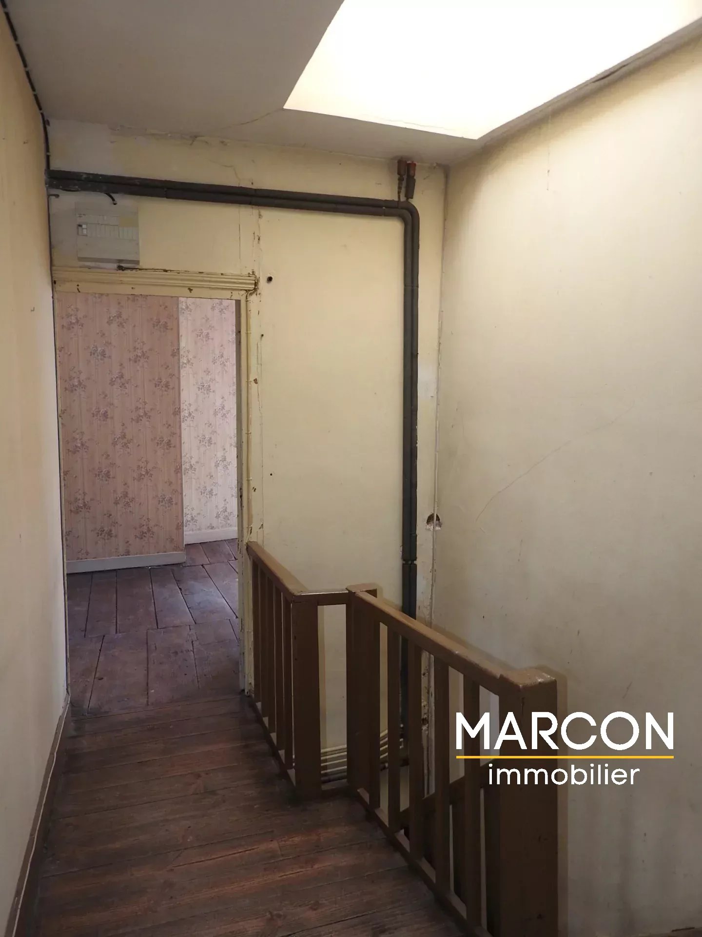 MARCON IMMOBILIER - Réf 88939 - CREUSE EN LIMOUSIN - AUBUSSON Au centre ville, une maison comprenant au rez-de-chaussée: entrée, cuisine ouverte sur séjour/salle à manger de 40 m² avec cheminée (possibilité activité commerciale), dégagement, buanderie/chaufferie (chauffage central gaz de ville), salle d’eau/wc, cave. Au 1er étage: palier, 2 entrées, chambre (placard / dressing) avec salle de bain et wc, salle à manger avec petite cuisine à la suite, grand garage / atelier avec grenier (beau volume) au-dessus. Au 2ème étage: palier, 2 pièces, cuisine, salle d’eau. Au 3ème étage: palier, 3 pièces dont une avec wc et lave mains, dressing, débarras. Courette sur l’arrière d'environ 15 m². Raccordé au tout à l'égout. Prix: 107 800 € (honoraires agence inclus charge acquéreur 10 % TTC). (Prix: 98 000 € hors honoraires). Réseau de 3 agences en Creuse: Aubusson, Guéret et La Souterraine. 05-55-66-20-37