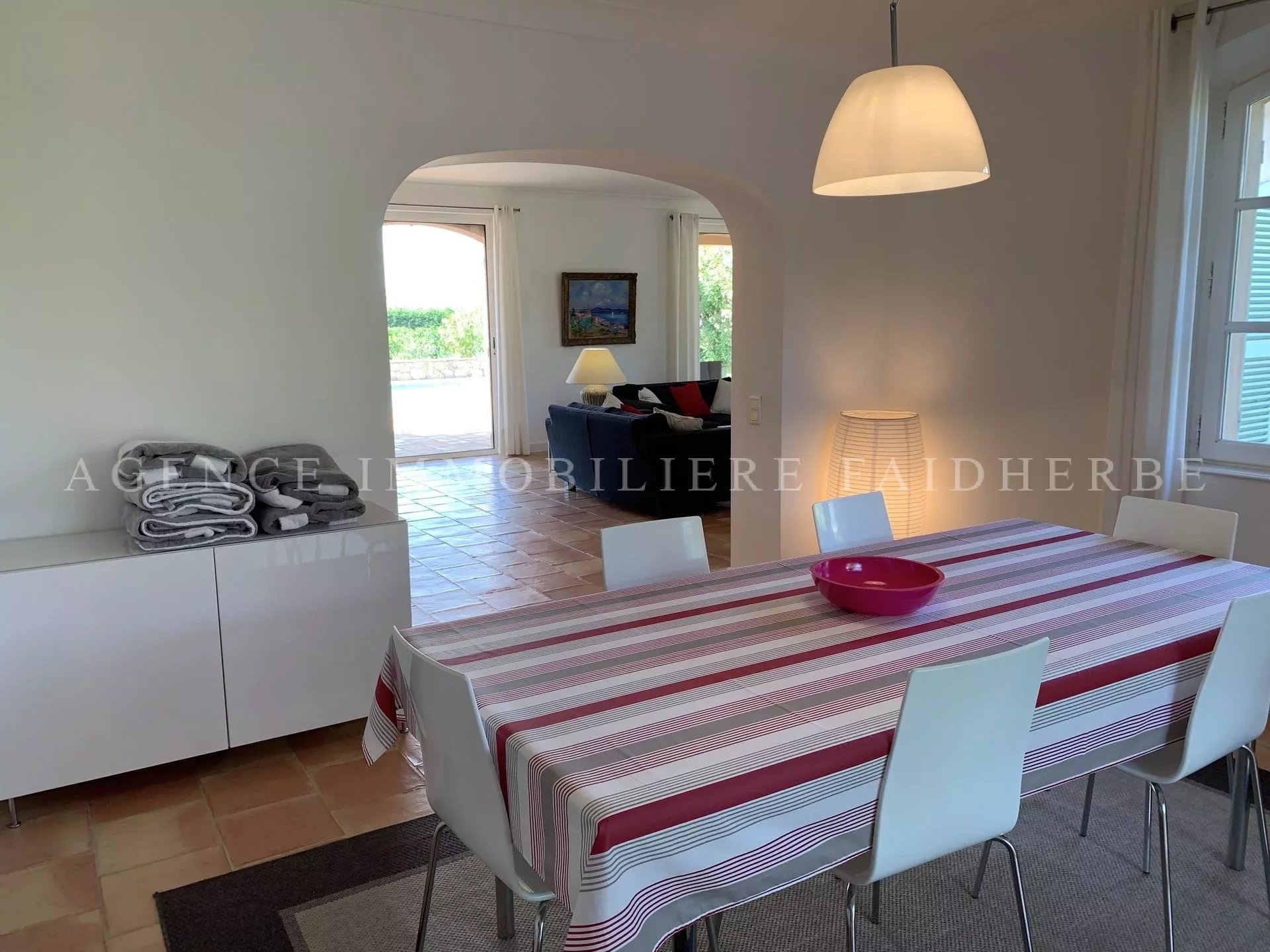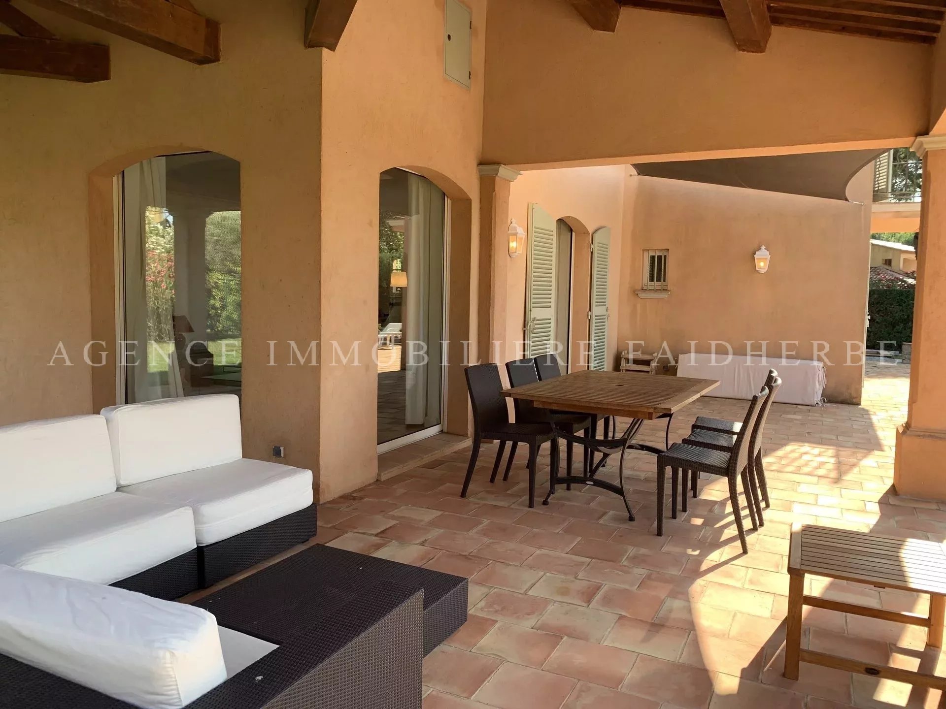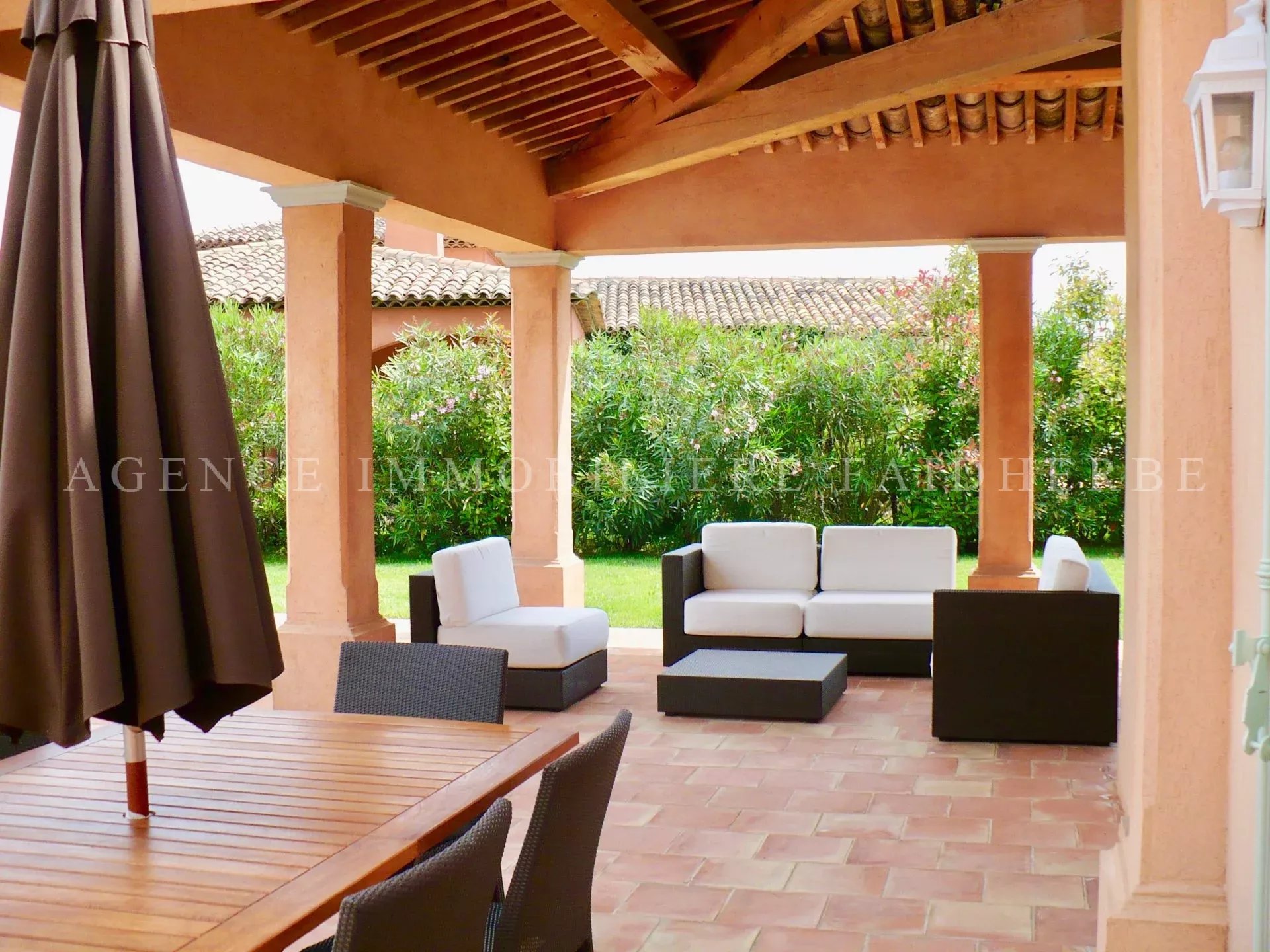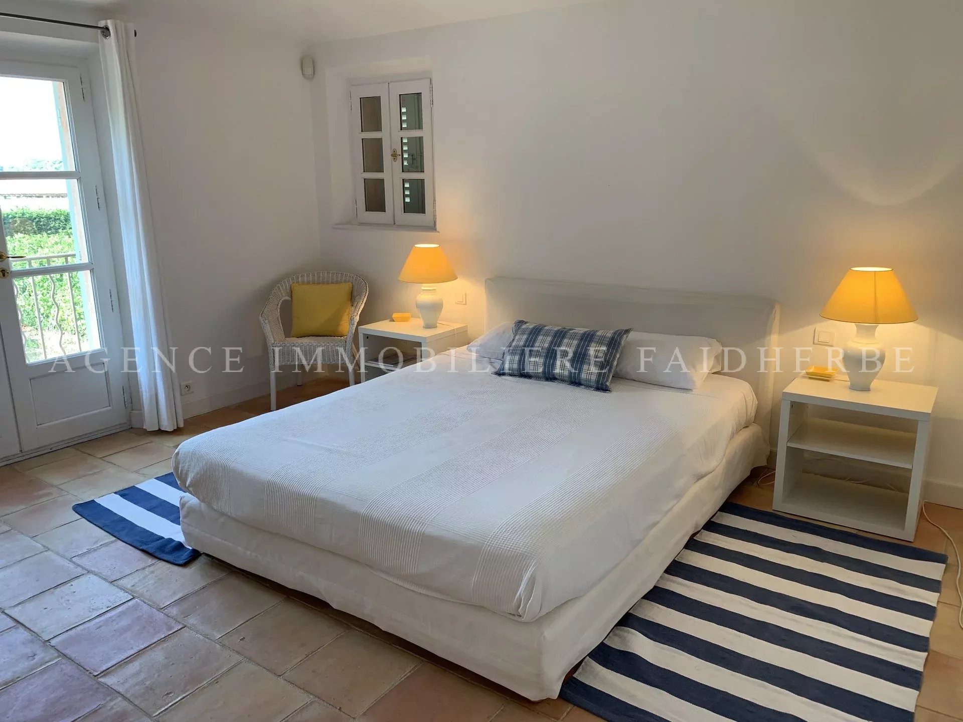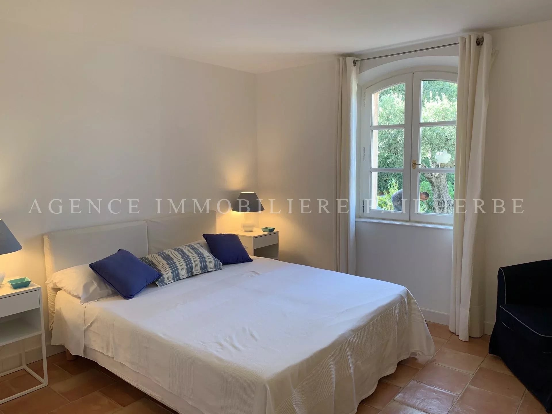 RIF 160 Villa con piscina composta da: 1 camera da letto con 160 letti, bagno / WC, spogliatoio 1 camera con letto matrimoniale o 2 letti, bagno / WC 1 camera con letto matrimoniale o 2 letti, bagno con doccia / WC 2 camere da letto indipendenti con bagno con doccia e servizi igienici Soggiorno che si apre su una terrazza Sala da pranzo che si apre su una terrazza Cucina attrezzata Lavatrice, asciugatrice Tv, wifi, allarme, cassaforte, aria condizionata nelle camere. Prezzo: 13 750€ / settimana Spese: pulizia (30€ / ora), noleggio biancheria (30 € / letto) e tassa di soggiorno (6,91 € / giorno / persona)