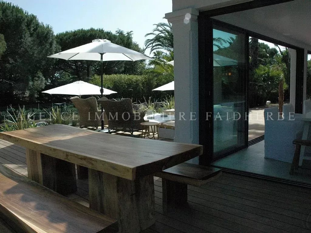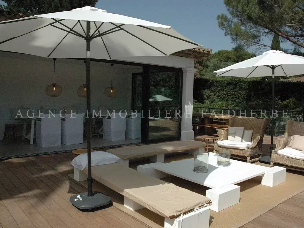 Villa di 300m2 con piscina La villa è situata in posizione ideale, tranquilla, nella zona privilegiata e protetta dei Parchi di St Tropez. Il mare e la spiaggia privati della tenuta distano 10 minuti a piedi. Ingresso su ampio soggiorno con camino che si apre su una bellissima sala da pranzo che può ospitare 16 ospiti. La cucina è ampia e ha un terrazzo indipendente, è separata dal soggiorno da un bar che si apre sulla zona del pianoforte. Le terrazze sono dotate di diversi saloni separati e zone pranzo. Zona notte: 6 camere da letto con bagno e WC separati. Una sala TV con una panca con 2 letti singoli. Locale lavanderia con lavatrice e asciugatrice. La casa è dotata di aria condizionata e impianto stereo SONOS, tutte le camere sono dotate di televisori Full HD e biancheria da letto di fascia alta. La proprietà ha un terreno di 3000m2 con un magnifico giardino ombreggiato da pini e palme, un campo da bocce, una piscina di sale, un cortile e un ricovero per diverse auto. - Accesso ad Internet - Sicuro - Lettore DVD - Tavolo da ping pong - Cavo - Impianto hi-fi - TV - terrazza - Garden Lounge - giardino - barbecue - Serate autorizzate - Noleggio non fumatori - Animali non ammessi Biancheria e pulizia giornaliera sono incluse Spese: tassa di soggiorno 6,91€ / giorno / adulto