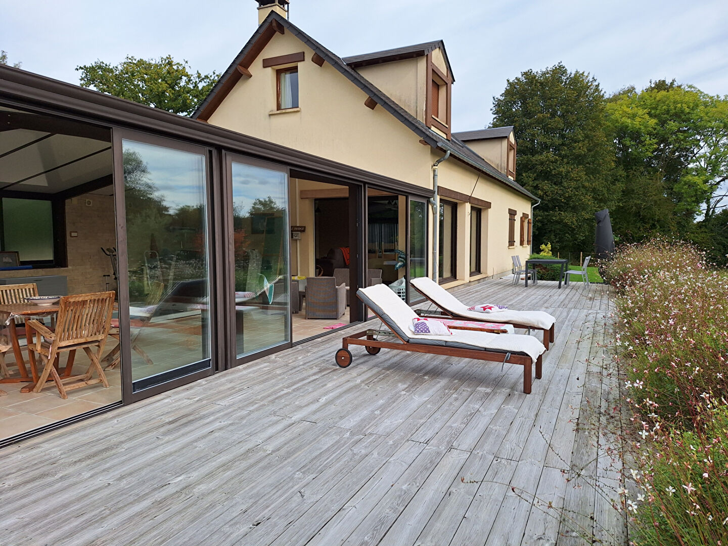 Volume et luminosité sont les premiers mots qui nous viennent à l'esprit. Dès notre arrivée, nous débouchons directement sur une belle pièce à vivre de 60 m². Plafond cathédrale, grandes baies vitrées donnant sur le jardin, cuisine ouverte chaleureuse et conviviale, 2 chambres au RDC avec salle de bain, chauffage au sol... C'est une maison facile à vivre et où l'on s'y sent bien. Et surprise avec la véranda ! Les propriétaires actuels en ont fait un vrai espace spa avec sa piscine à contre courant. Elle propose au RDC : salon séjour avec cheminée, cuisine aménagée équipée, 2 belles chambres, salle de bain, buanderie, wc. A l'étage : palier, 2 chambres dont une de 20 m², salle de douche à l'italienne, pièce (possible dressing), wc. Rajoutons un très beau chalet de 6 sur 12 en partie aménagé avec eau, électricité et poêle à bois. Chauffage électrique. portail électrique. Le tout sur environ 9000 m² de terrain. (5.00 % honoraires TTC à la charge de l'acquéreur.)