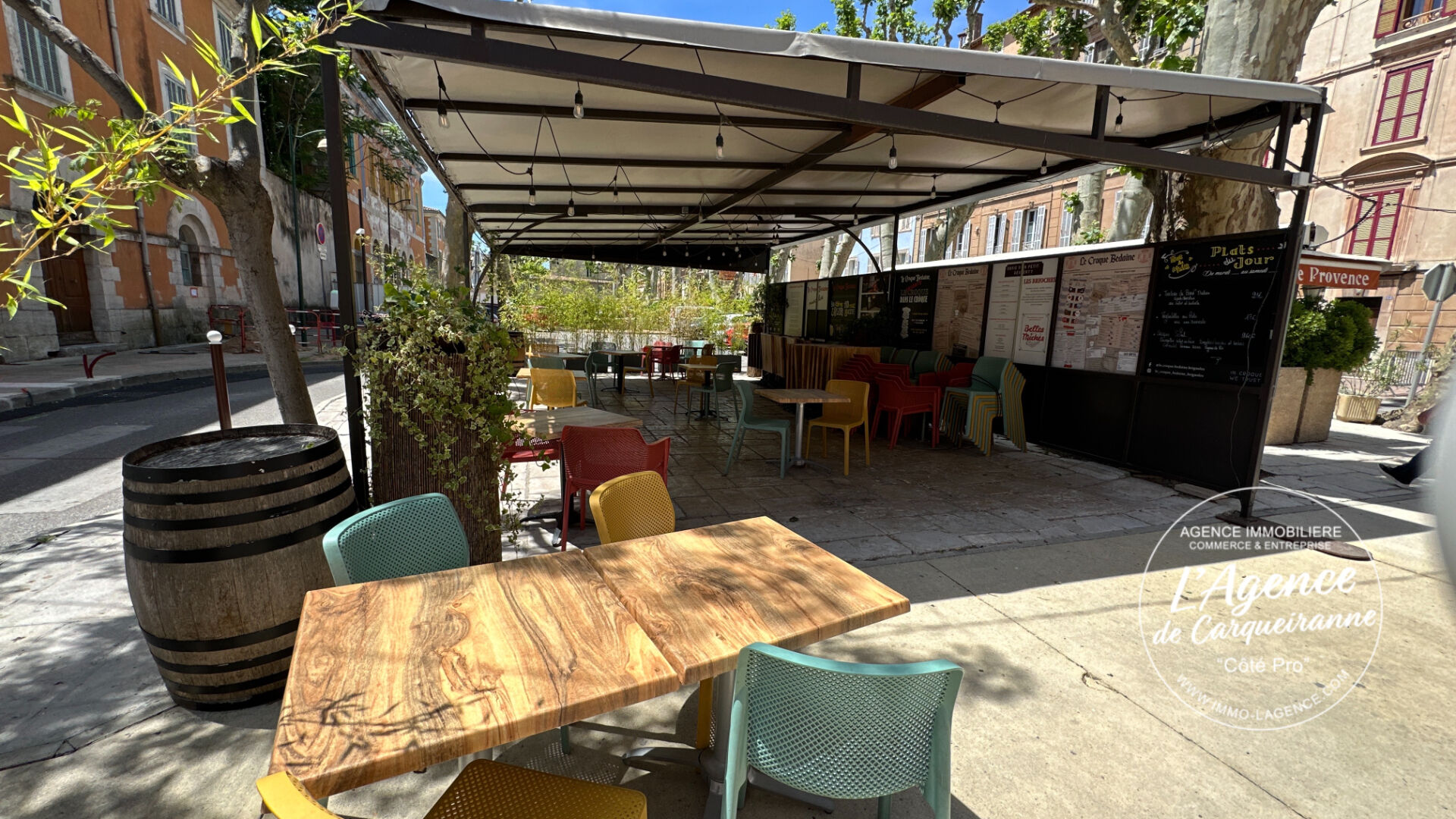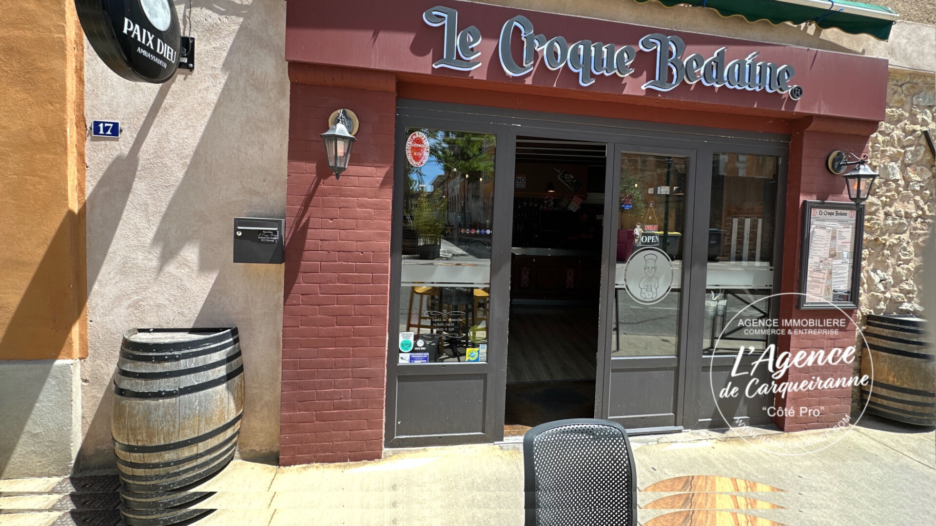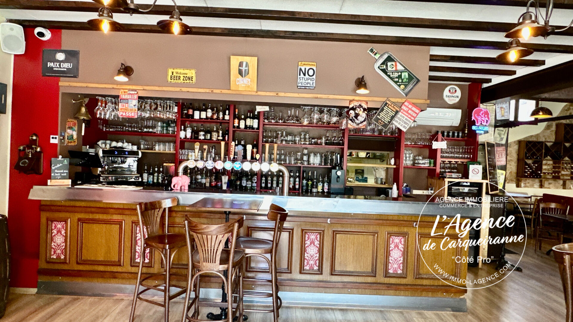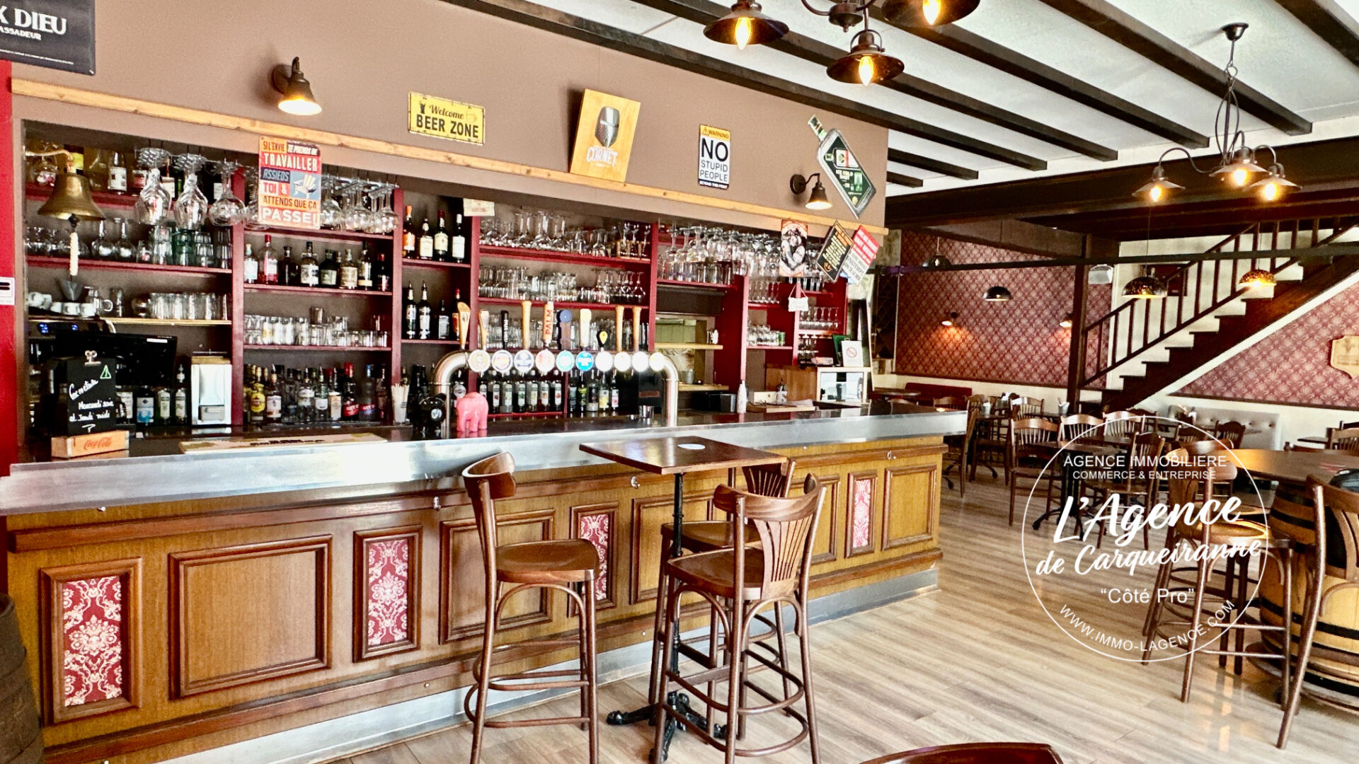 **** MURS ET FONDS DE COMMERCE 364 000 euros TTC **** Samuel L'agence de Carqueiranne "Côté Pro" vous propose à la vente Fonds de commerce Pub / Brasserie avec Appartement. Découvrez cette opportunité rare fonds de commerce Pub/Brasserie d'une superficie totale de 240 m², idéalement situé en plein centre-ville de Brignoles, bénéficiant d'une forte visibilité et d'un passage régulier. Vous trouverez, une salle de restaurant spacieuse d'environ 60 places, offrant un cadre chaleureux et convivial, un grand bar entièrement équipé, idéal pour une activité de brasserie dynamique, une cuisine professionnelle aux normes, vaste et fonctionnelle. Vous disposez d'un four à bois dans la salle, actuellement non exploité : véritable potentiel pour créer une pizzeria, concept très recherché et non présent dans ce secteur de Brignoles. A l'exterieur vous beneficiez d'une premiere Terrasse couverte d'environ 60 places, parfaite pour l'exploitation annuelle, mais egalement une Deuxième terrasse située face au bar, offrant 20 places supplémentaires. RARE a Brignoles à l'étage un 'appartement de fonction de 93 m² composé d'un bureau, d'une cuisine équipée, d'un grand salon, ainsi que de deux suites parentale. Cette affaire est exploité depuis de nombreuses années et dispose d'une clientèle fidèle et régulière. Les acquéreurs disposent d'un fort potentiel de développement en élargissant les plages d'ouverture et en exploitant le four à bois. Si acquisition du fonds de commerce bail Neuf. Les murs de l'ensemble immobilier sont a la vente 235 000 euros FAI . La vente est conditionné par la vente du fonds de commerce. Pour plus d'informations ou organiser une visite, merci de me contacter les propriétaires ne veulent pas de démarchage direct!