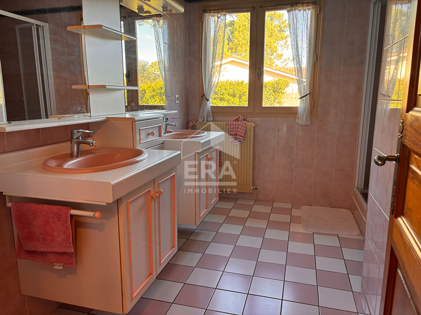 Sur un terrain arboré de 1 701 m², cette maison familiale de 240 m² séduit par ses volumes et sa luminosité. Elle offre sept pièces dont cinq chambres, une vaste pièce de vie de 50 m² orientée plein sud et une cuisine indépendante. Le confort est assuré par un chauffage au gaz et une cheminée à insert, idéale pour les soirées d'hiver. L'agencement comprend également trois salles d'eau et deux WC. La véranda, équipée d'un conduit, permet de cuisiner ou de partager un barbecue à l'abri, en toute saison. Un chalet de jardin et un double garage de 90 m² complètent l'ensemble. Le sous-sol constitue un véritable espace de vie supplémentaire, avec ses chambres d'appoint, sa cuisine, une laverie et un cellier/cave de 19 m², parfait pour accueillir famille, amis ou créer un espace indépendant. A l'extérieur, les fenêtres en bois double vitrage et ses volets en bois ajoutent une touche d'authenticité. Profitez d'une terrasse pour savourer le doux soleil du Pyla. Le terrain est facilement piscinable. Ne manquez pas cette opportunité, contactez l'agence ERA LA CABANE DU MOULLEAU pour plus d'informations. (4.11 % honoraires TTC à la charge de l'acquéreur.)