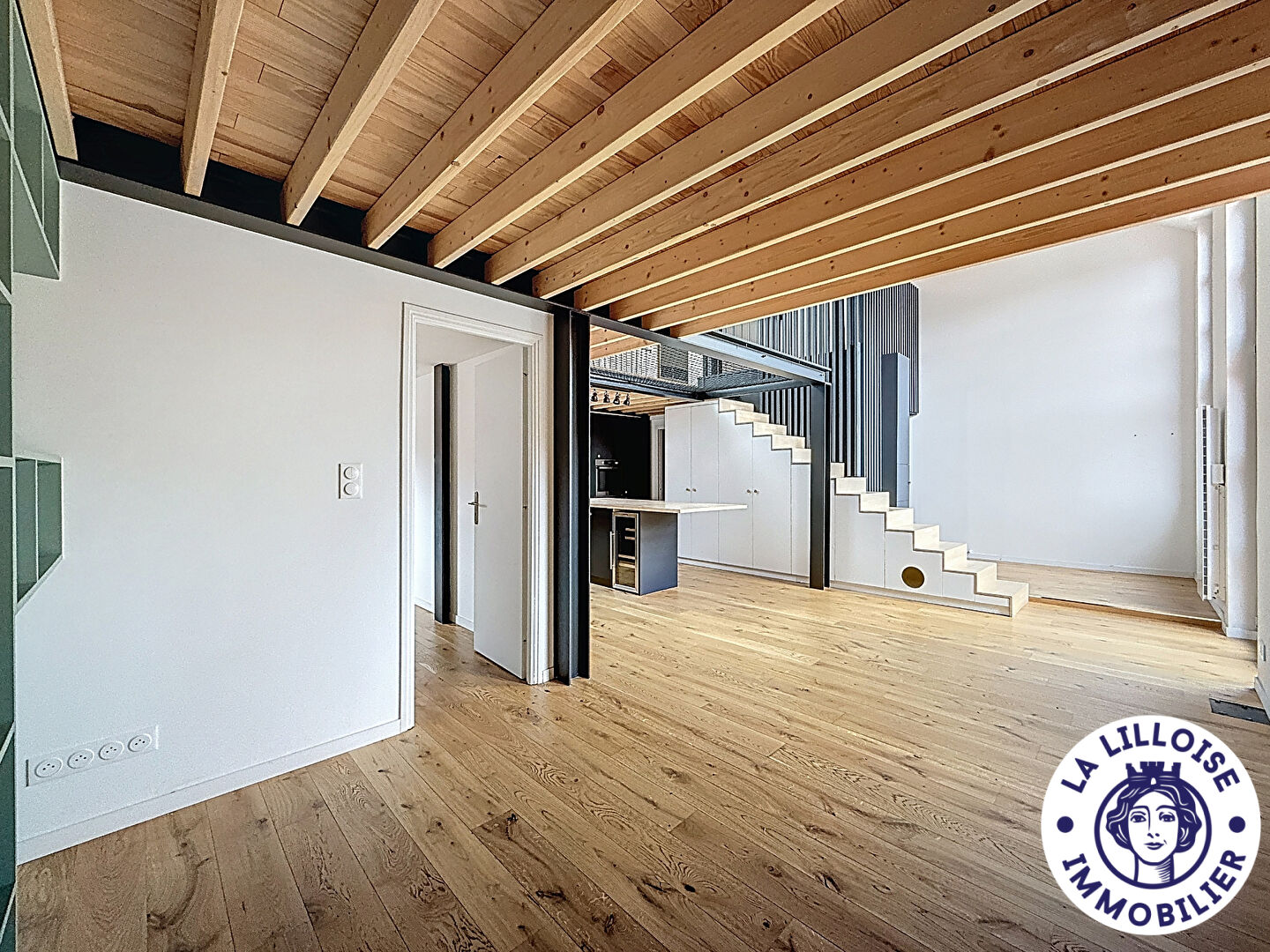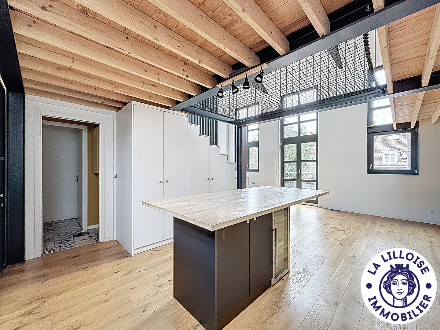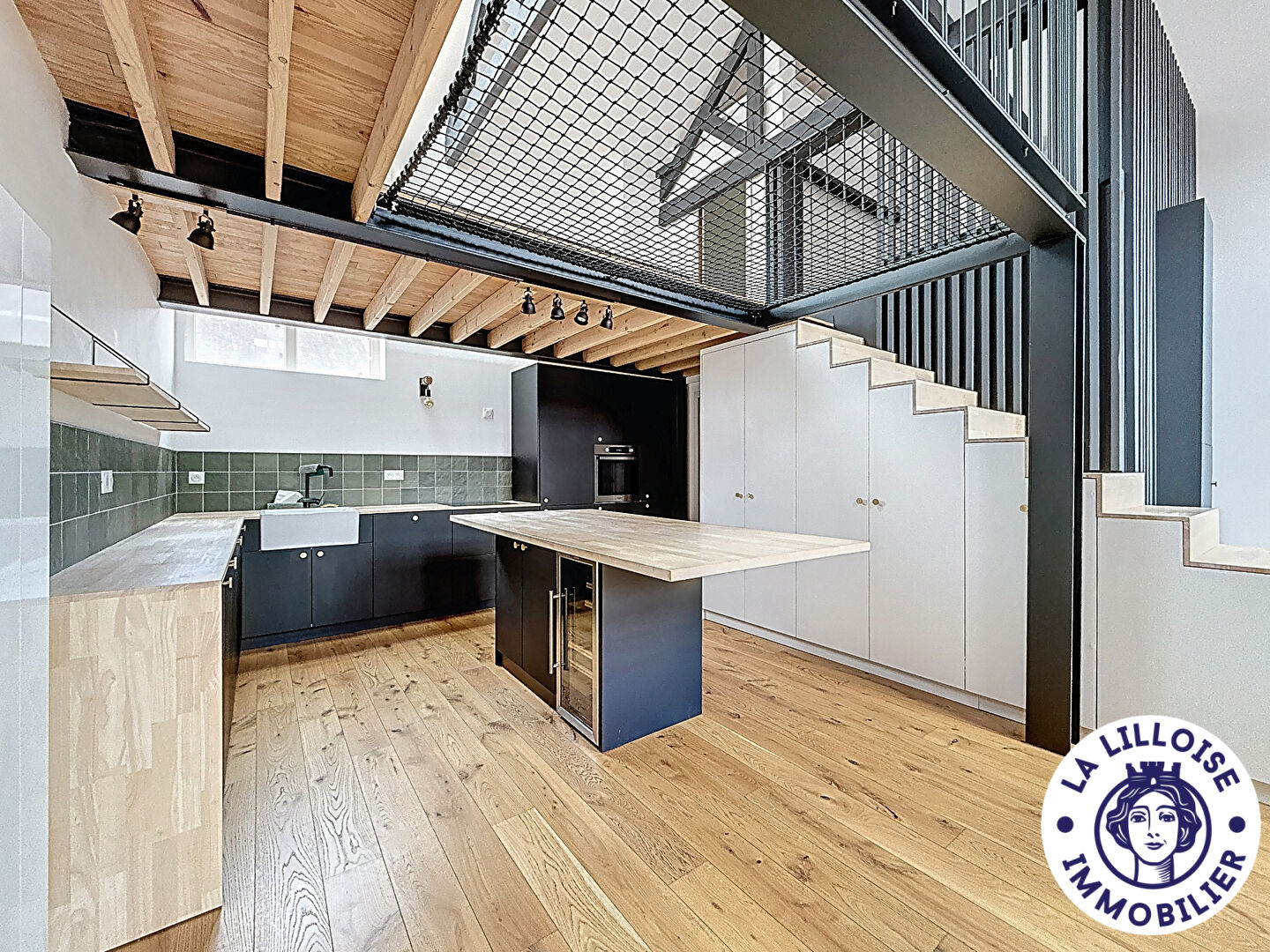 Coup de coeur !La Lilloise vous invite à découvrir ce Loft de 92m² avec balcon et parking situé dans une copropriété sécurisée et complètement réhabilitée en 2016.En plein coeur d'îlot, ce loft de 92m² offre un cadre de vie paisible tout en étant à proximité immédiate du métro, des commerces et des écoles.Au rez-de-chaussée, vous découvrirez une entrée accueillante, une pièce de vie lumineuse avec toit cathédrale, une superbe cuisine ouverte et équipée, le tout donnant sur un balcon au calme. Une chambre et un WC avec espace buanderie complètent ce niveau.A l'étage, un bel espace ouvert propose de nombreuses possibilités (salle de jeux, bureau, coin détente avec filet suspendu), une seconde chambre, un espace nuit pour les invités, ainsi qu'une salle de bains équipée d'une douche et d'une baignoire.Une place de parking au sein de la copropriété vient parfaire ce bien atypique.A visiter sans tarder (2.54 % honoraires TTC à la charge de l'acquéreur.)Copropriété de 12 lots (Pas de procédure en cours).Charges annuelles : 1800