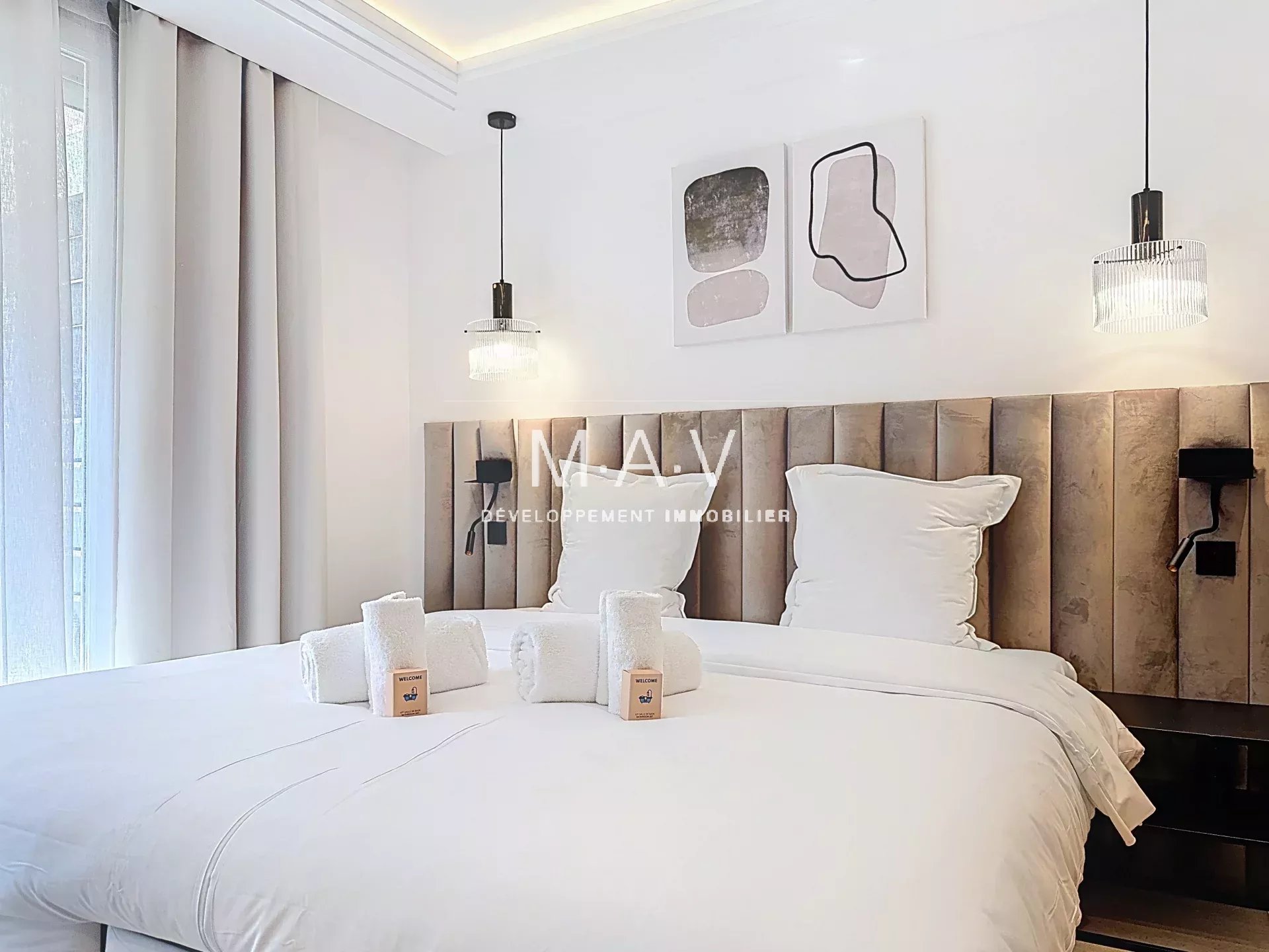 Découvrez ce magnifique appartement de 62 m² au sein de la prestigieuse résidence " Le Grand Hôtel ", idéalement situé à deux pas de la Croisette, des plages et de la rue d'Antibes. Entièrement rénové par un architecte d'intérieur, il se distingue par un style contemporain et des prestations haut de gamme. Il comprend un séjour/salle à manger de 29 m² baigné de lumière, ouvrant sur une vaste terrasse de 29 m². Il dispose également d'une cuisine design ouverte, de deux chambres suite avec salles de douche privatives (dont une avec WC) et de nombreux rangements sur mesure, toilettes séparés. Vendu entièrement meublé, cet appartement représente un investissement de choix, avec un potentiel de forte rentabilité locative saisonnière. Un dossier de présentation complet, incluant une vidéo immersive et une estimation locative, est disponible sur demande.