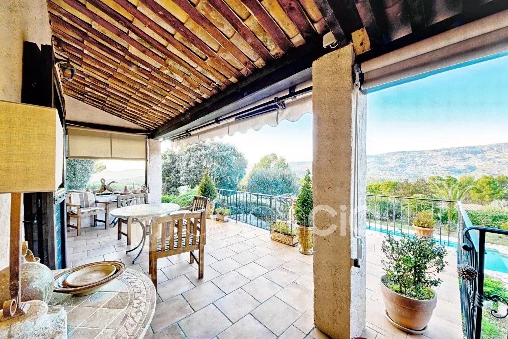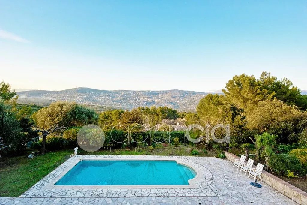 Vendu en 7 visites par notre Agence !Notre Agence immobilière , vous propose une villa de charme à Peymeinade. En position dominante avec une magnifique vue à 180 ° sur les collines et la campagne.Dans un environnement calme et résidentiel avec une voisinage de qualité.Élégante villa en parfait état aux prestations raffinées et soignées. Elle se compose en rez de chaussée d'un hall ouvrant sur un triple séjour comprenant: une salle à manger,un salon avec cheminée et une bibliothèque.Grande et large terrasse couverte avec un barbecue.Une cuisine entièrement équipée,un cellier et buanderie. De plain pied : 2 chambres avec des placards aménagés ,2 salles de bains,2 wc. A l'étage: une grande chambre avec des placards aménagés,une salle de douche et une grande terrasse solarium, un bureau /une chambre d'enfant et une pièce de 20 m² pouvant être utilisée en salle de jeux. Un appartement ou un Atelier de 50 m². Superbe terrain de 2500 m² arboré et complanté de divers plantes et arbres fruitiers.Un potager.Une belle piscine de 10x5. Un grand garage carrelé pour 2 voitures.Dans la cour,plusieurs places de parkings.Fosse septique neuve.Fenêtres neuves.