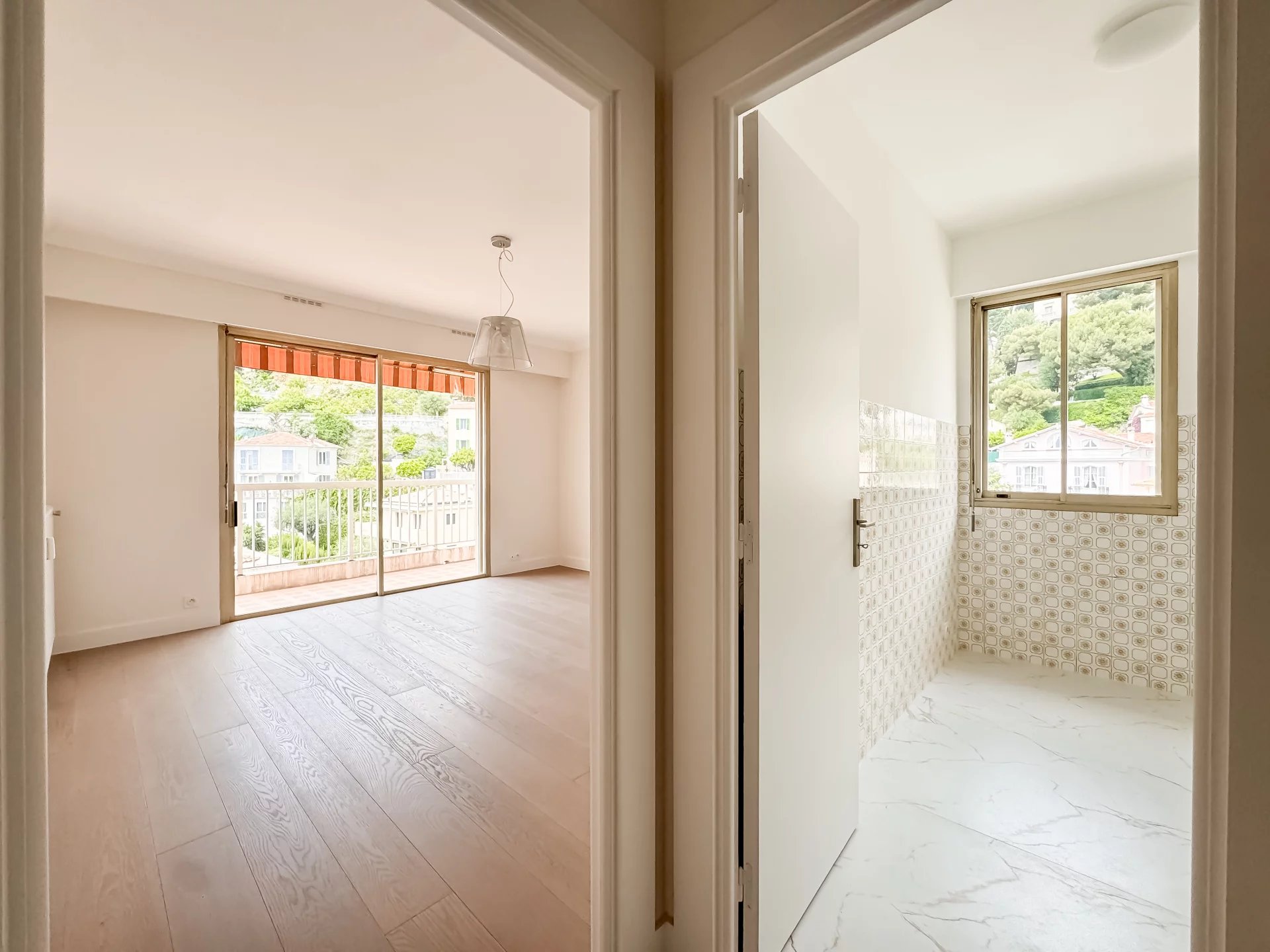 Estelle vous propose, en dernier étage et au calme absolu, cet appartement offrant une vue dégagée sur les collines ainsi qu’une échappée mer. Localisation : Idéalement situé entre Nice et Monaco, l’immeuble bénéficie d’une position privilégiée, à proximité immédiate des plages, des commerces et des transports. Description : L’appartement se compose d’une entrée desservant une cuisine ouverte et un séjour lumineux, donnant sur une agréable terrasse avec vue panoramique sur les collines. À l’arrière, l’espace nuit est judicieusement séparé, comprenant une chambre confortable et une salle de bain. Atout supplémentaire : Possibilité d’acquérir un garage en supplément. Honoraires à la charge du vendeur. Pour consulter les informations sur les risques liés à ce bien, rendez-vous sur le site Géorisques.