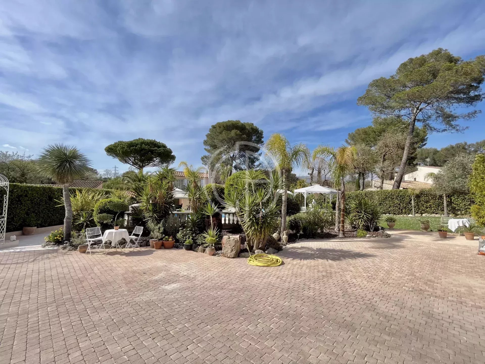 Limite MOUGINS, dans un domaine intime, proche des axes mais au calme absolu, belle propriété en parfait état. La villa principale offre un beau salon cheminée, salle à manger, cuisine de 28m2 avec pergola bio climatique, 3 chambres en suite, dont la chambre de maitre avec terrasse de 35m2 surplombant la piscine. En complément, deux appartements indépendants, dont une maison de 70m2 avec deux chambres, cuisine équipée salle de douche et l'autre avec 1 chambre, une kitchenette et salle de douche. Une magnifique piscine avec jacuzzi, un jardin complanté de 1675m² avec forage, salle de sport, un chalet avec point d'eau, et un chalet de rangement complètent cette propriété. Cette villa est parfaite pour une grande famille, locatif ou chambres d'hôtes. « Les informations sur les risques auxquels ce bien est exposé sont disponibles sur le site Géorisques : www.georisques.gouv.fr ».