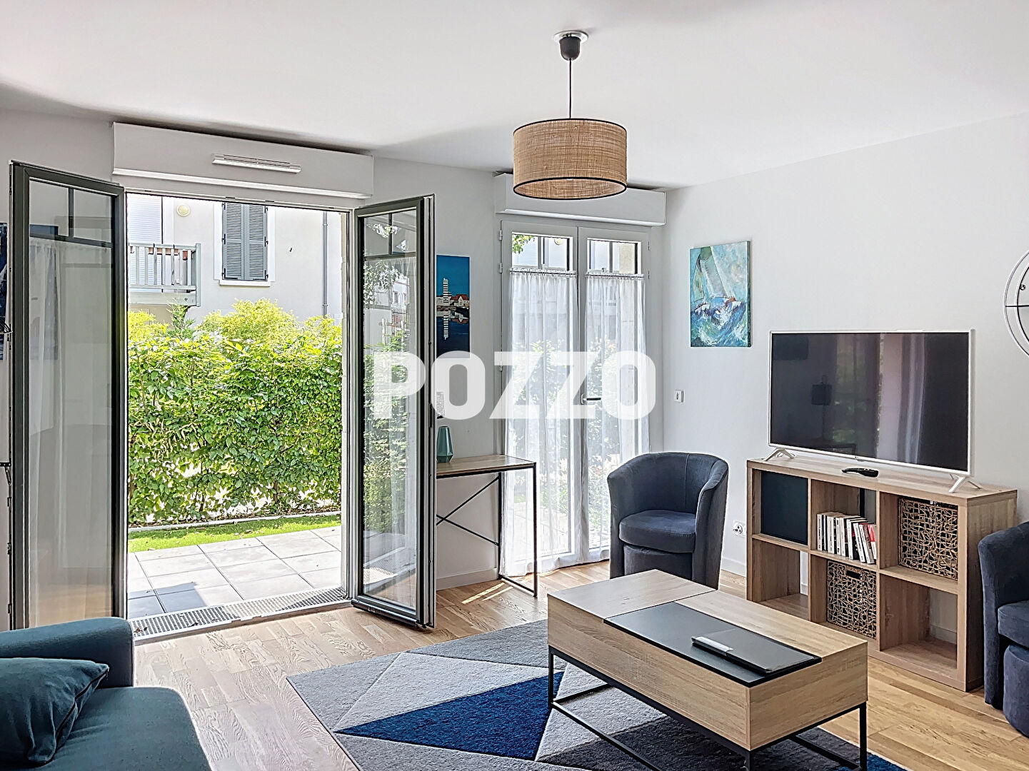 TROUVILLE SUR MER Tout proche commerces et gare, dans résidence neuve et sécurisée, magnifique 2 pièces de 54,74m2 en rez-de-jardin, il se compose d'une entrée avec placards, un séjour avec cuisine aménagée et équipée, une chambre, une salle de douches avec wc. Appartement lumineux avec de belles prestations et une terrasse très agréable. Un parking extérieur complète ce bien. Copropriété de 145 lots - dont 65 lots habitation. (Pas de procédure en cours). Charges annuelles : 1560 euros.