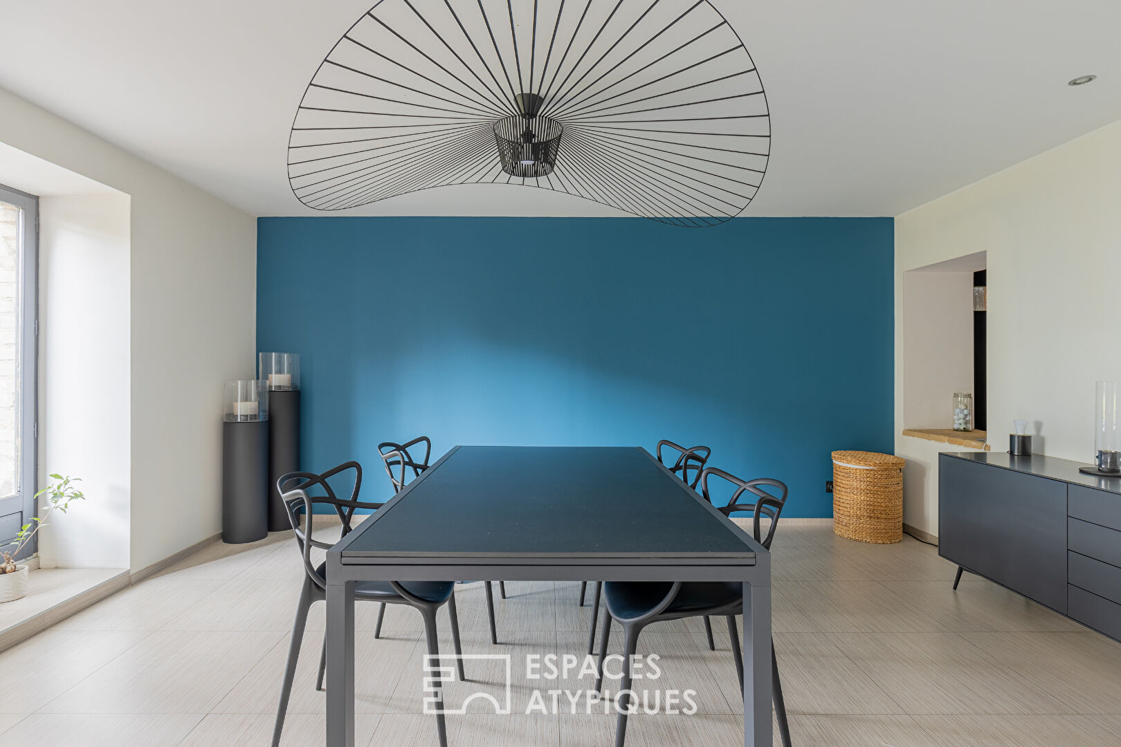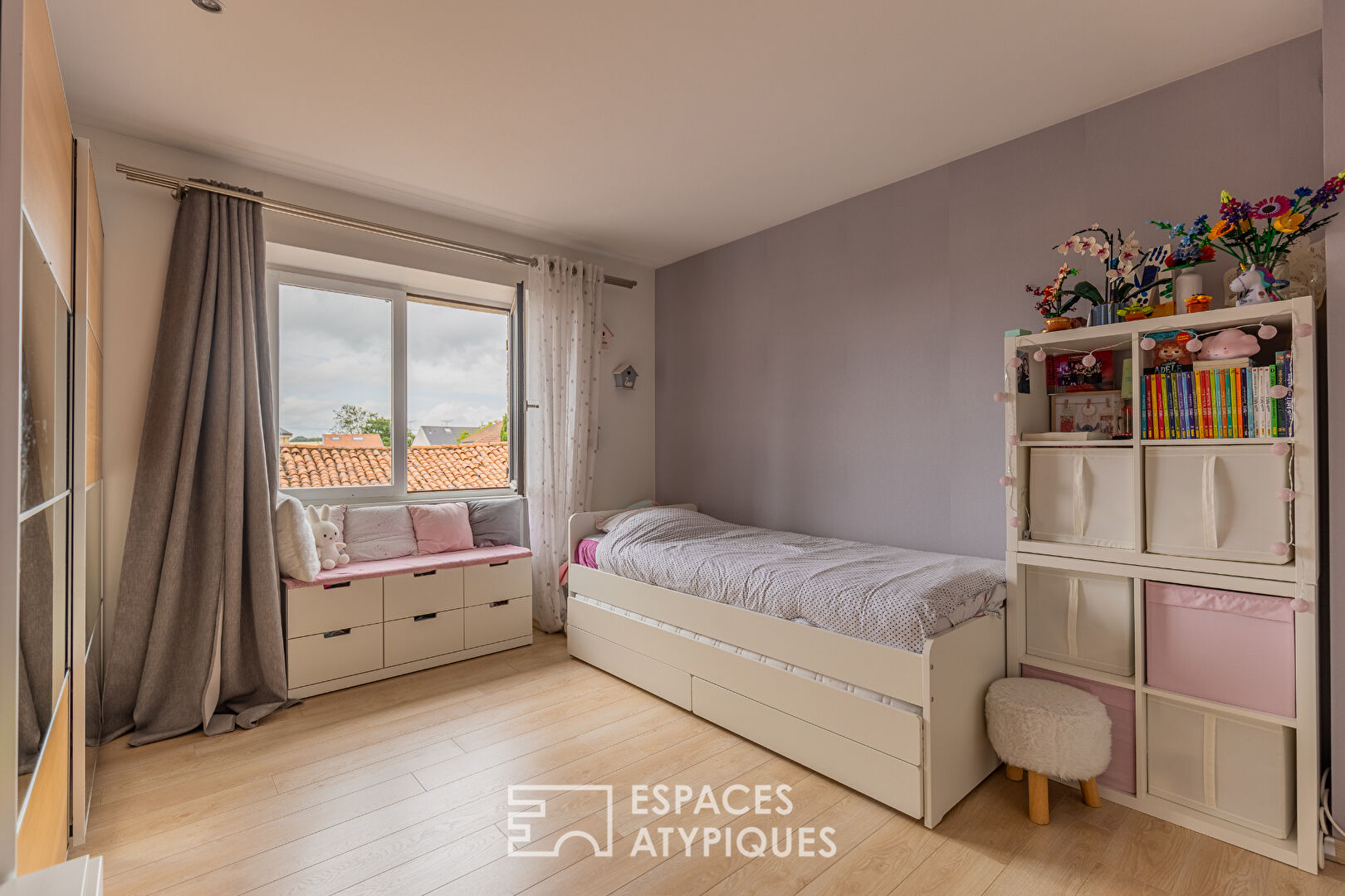 Au coeur du paisible village de Goin, cette maison familiale dévoile une surface de 184 m² édifiée sur une belle parcelle de près de 10 ares. Entièrement repensée grâce à une rénovation contemporaine de qualité, elle se distingue par ses excellentes performances énergétiques et son fort potentiel d'évolution porté par de vastes annexes. L'entrée s'ouvre sur un dégagement qui mène, par quelques marches, au rez-de-jardin accueillant les pièces de vie. Cet espace propose une cuisine équipée aux lignes modernes s'intégrant à une salle à manger lumineuse. Deux doubles portes-fenêtres confèrent à cette pièce un accès direct à la terrasse. Ce niveau dispose également d'un agréable salon, d'une salle d'eau et de sanitaires. L'étage supérieur est consacré à l'espace nuit, composé de trois chambres, dont l'une intègre un espace dressing astucieusement agencé. Une vaste salle de bain vient parfaire ce niveau d'habitation avec une douche double, une baignoire aux courbes actuelles et un mobilier épuré. Le confort de cet habitat contemporain est assuré par une pompe à chaleur récente, garantissant un excellent classement énergétique rare sur le marché. Les espaces extérieurs invitent à la quiétude avec un agréable jardin entièrement clôturé et piscinable. L'environnement végétal est souligné par la présence remarquable d'un grand pin et d'un cèdre, apportant ombre et cachet à l'ensemble. Une terrasse généreuse, en partie couverte, permet de profiter des espaces de vie extérieurs. La propriété s'enrichit de dépendances offrant de multiples possibilités : un bâtiment annexe sur deux niveaux prolongé par un premier garage situé à l'avant de la maison, ainsi qu'une grange attenante. Cette dernière abrite un second garage, une buanderie, la cave et un espace aménageable bénéficiant d'un accès direct au jardin. Parfaitement située, cette maison profite des écoles primaires dans le village, des commodités de Verny à cinq minutes, ainsi que d'un accès rapide à la gare TGV, à l'aéroport régional et au centre-ville de Metz. L'aménagement intérieur résolument moderne et le potentiel brut des dépendances confèrent à ce lieu une identité singulière et atypique. Cette propriété constitue un cadre de vie confortable qui se dévoilera pleinement lors d'une visite. Commerces et services à 5 minutes en voiture à Verny Ecoles maternelle et élémentaire dans le village Collège à Verny, lycée à Peltre à 17 minutes en voiture Gare TGV Lorraine à 8 minutes en voiture, aéroport régional à 9 minutes Centre-ville de Metz à 25 minutes en voiture Accès autoroute A31 et rocade Est à une dizaine de minute en voiture CLASSE ENERGIE : B / CLASSE CLIMAT : A Montant moyen estimé des dépenses annuelles d'énergie pour un usage standard, établi à partir des prix moyens des énergies indexés sur les années 2021, 2022, 2023 (abonnements compris) : entre 1390 et 1900 euros Contact : Valérie 06.69.99.70.12 Valerie CHARLIER (EI) Agent Commercial - Numéro RSAC : 828 820 043 - Metz.