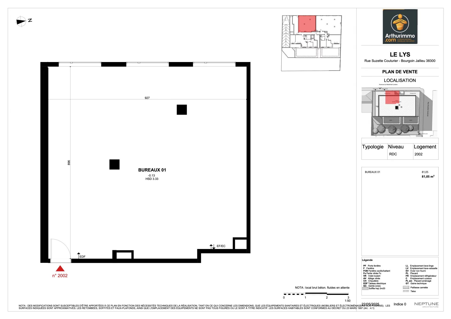 Hyper-Centre de Bourgoin-Jallieu | Rez-de-chaussée du bâtiment "Le Lys" Une opportunité unique au cœur de la ville ! Situés en rez-de-chaussée du nouveau programme immobilier Le Lys, ces locaux offrent une visibilité optimale dans un secteur dynamique et très recherché, à proximité immédiate des commerces et parkings. Les atouts : Adresse centrale en plein cœur de Bourgoin-Jallieu Accès direct depuis la rue Parkings publics à quelques mètres Locaux livrés bruts, à aménager selon votre activité Activités autorisées : commerce, artisanat, bureaux Restauration interdite Surfaces disponibles : Local 1 : 81 m² Local 2 : 133 m² Possibilité de réunir les deux pour une surface totale de 214 m² Prix de vente : 1 600 € HT/m² Une offre rare en hyper-centre, parfaite pour implanter votre activité dans un cadre neuf et valorisant. Notre équipe est à votre disposition pour vous accompagner dans votre projet entrepreneurial. Contactez-nous dès maintenant pour recevoir le dossier complet ou organiser une visite.